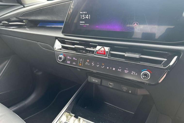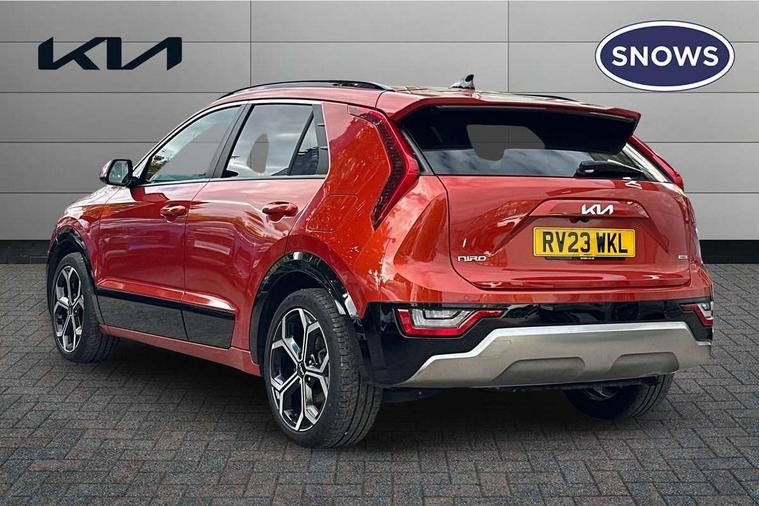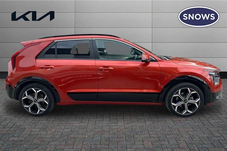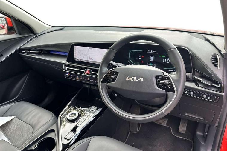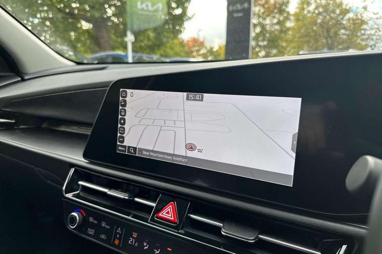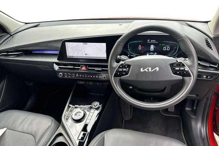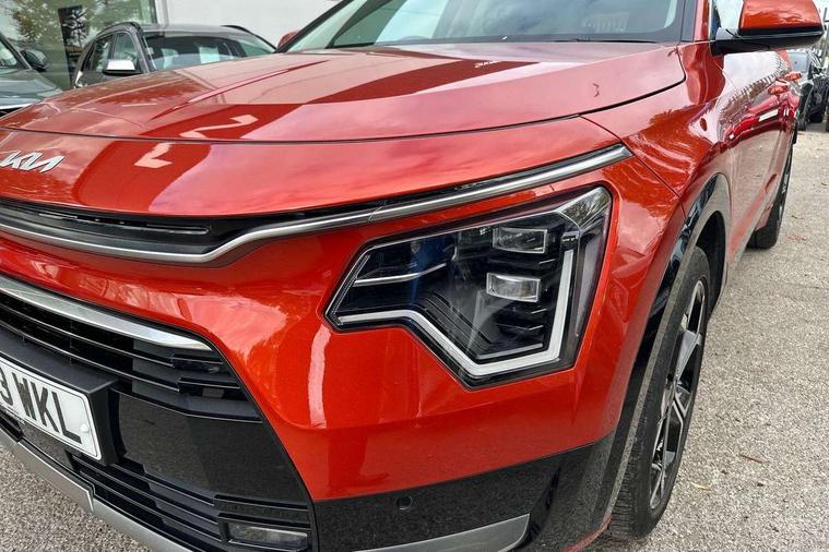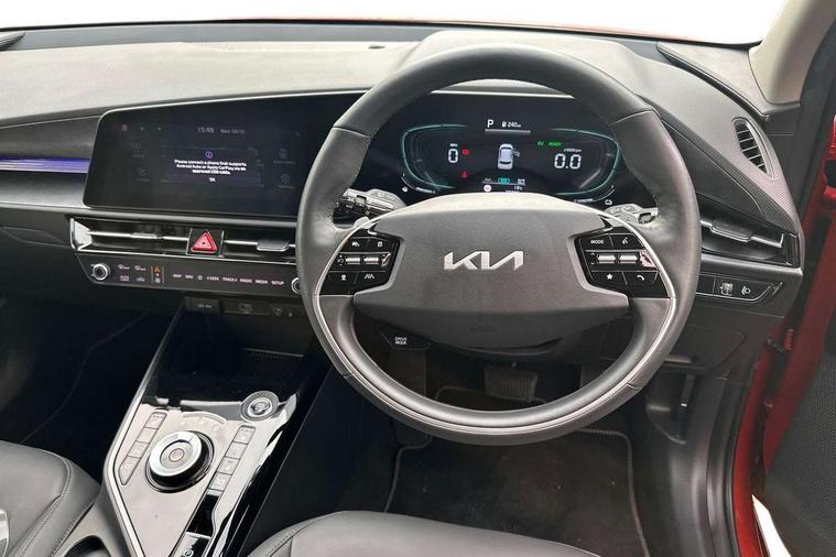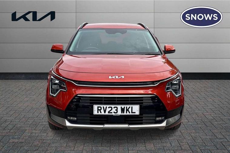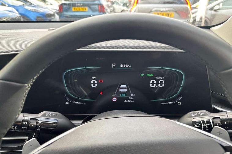 10.25" touchscreen satellite navigation, 4.2" supervision colour cluster display, Adaptive smart cruise control function (SCC) with stop and go, Apple car play/Android Auto with voice control, Blind spot collision avoidance assist, Drive mode select (Eco, sport), E-call, Emergency stop signalling system, Forward Collision-Avoidance Assist (FCA) 1.5 - City/Pedestrian/Cyclist/Junction turning, Front parking sensors, Highway Driving Assist (HDA), Kia Connect (UVO), Lane Following Assist (LFA), Lane keep assist, Motor driven power steering, Rear cross traffic alert, Rear parking sensors, Reversing camera with dynamic guide lines, Safe exit warning (SEW), Speed limit assist, Tailgate, Trip computer with distance/fuel consumption/average speed, Wireless Smartphone charger, 220v AC Inverter, 'Shark fin' mobile antenna, 2 type C USB ports on front seats, 2 USB ports in centre console including 1 type C, 6 speakers, Bluetooth with music streaming, DAB Digital radio, Steering wheel mounted controls, Acoustic windshield, All round electric windows with drivers and front passenger auto up/down and safety function, Auto dimming rear view mirror, Automatic defog system, Automatic headlight control system, Black grille with chrome surround, Body colour bumpers, Body colour exterior door handles, Dual LED headlights (low and high projection), Electric heated door mirrors, Electrically folding door mirrors, Front and rear chrome skid plates, Front fog lights, Heated rear window with timer, High gloss black cladding, High gloss black door mirrors, LED daytime running lights, LED rear combination lights, LED third brake light, Privacy glass - Rear windows and tailgate, Rain sensing front wipers, Rear fog lights, Rear side wing doors, Rear spoiler, Rear wiper, Roof rails, Solar glass windscreen, Welcome and follow-me home light functionality, Windscreen Washer Level Warning, 12v socket in front, 12V socket in luggage compartment, 3 seat bench in 2nd row, 60/40 split/folding 2nd row of seats, All-round height adjustable headrests, Artificial leather centre console storage box, Artificial leather steering wheel, Bulb overhead console, 2nd row and luggage lamp, Centre console cupholder, Chrome coating interior door handles, Cloth / Artificial leather upholstery, Driver's power adjustable seat, Driver/passenger sunvisors with illuminated vanity mirrors, Drivers seat power lumbar support, Dual zone automatic air conditioning, Front and rear door storage, Heated front seats, Heated steering wheel, Illuminated glovebox, Interior door lock/unlock function, ISOFIX Child seat top tethers and anchor fixings, Luggage area load cover, Luggage board, Paddle shifts, Passenger seat height adjuster, Rear armrest, Seatback pocket - driver, Seatback pocket - front passenger, Shift by wire SBW, Single front passenger seat, Tilt/telescopic adjustable steering wheel, Ventiliation ducts to rear compartment, Towing pack - Niro, 3 point seatbelts on all seats, ABS, Automatic unlocking of doors in case of impact, Centre side front airbags, Curtain and side airbags, Drivers knee airbag, Dual shell horn, Electric parking brake with auto hold function, Electronic stability control, Front passenger airbag deactivation, Height adjustable front seatbelts, Hill start assist control (HAC), Manual rear child locks, Rear seat alert system, Traction control, Tyre pressure monitoring system, Alarm system and engine immobiliser, Deadlocks, Engine Start/Stop Button with Smart Entry System, Locking wheel nuts, Visible vehicle identification number, Warranty - 7 Years/ 100, 000 miles, Centre fascia chopped carbon, 18" Alloy wheels, Tyre mobility kit,