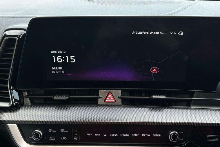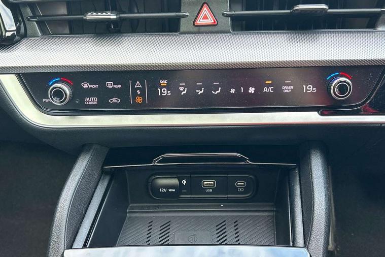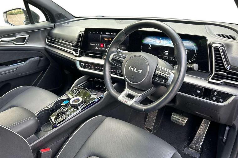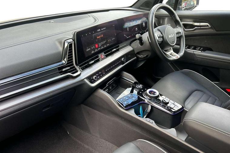 12.3" Display with navigation, 12.3" supervision colour cluster display, 360 degree around view monitor, Apple car play/Android Auto with voice control, Blind spot collision avoidance assist, Blind spot view monitor, Drive mode selector, E-call, Forward collision avoidance assist (FCA) - city/pedestrian/cyclist/junction covering, Front and rear parking sensors, Highway Driving Assist (HDA), Intelligent speed limit assist, Kia Connect (UVO), Lane Following Assist (LFA), Lane keep assist, Low washer fluid warning, Parking collision avoidance assist (PCA), Remote smart parking assist, Reversing camera system integrated into centre fascia screen, Smart cruise control with stop and go functionality, Smart power tailgate, Speed sensitive power steering, Trip computer, Windscreen washer level indicator, Wireless Smartphone charger, Intelligent Stop and Go, Bluetooth audio streaming, DAB Radio with MP3, Harman Kardon premium sound system, Rear USB port, Steering wheel mounted audio controls, USB C type charging ports on centre console, USB C type charging ports on side of front seats, USB port for connection of a media device, All round electric windows with drivers and front passenger auto up/down function, Automatic headlight control system, Automatic window defogger, Backlite glass heated with timer, Body colour and black bumper with silver accents, Body colour exterior door handles, Body colour radiator upper garnish and door garnish, Dual LED adaptive headlamps, Electric panoramic glass sunroof (Electric one touch with safety function), Electrically adjustable/heated/folding door mirrors with LED indicators, Front and rear chrome skid plates, Gloss black door mirrors, Gloss black radiator grille, Gloss black side sill and wheel arch body mouldings, Glossy black roof rack, High beam assist, Interior electrochromic mirror, LED daytime running lights, LED front fog lamps, LED High mounted stop light, LED rear combination lamp, Rain sensing wipers with aero blades, Rear fog lamp, Rear privacy glass, Rear side wing doors, Rear spoiler, Rear wiper, Satin finished beltline, Silver coloured inserts to bumpers, Tinted rear glass, Trailer stability assist, 10 way driver/8 way passenger electrically power adjustable seats, 12V power socket in front centre fascia and luggage compartment, 3 seat bench in 2nd row, 3 x passenger assist grips, 40/20/40 split folding rear seat, All-round height adjustable headrests, Ambient lighting, Black headlining, Centre console storage box, Cupholders in rear armrest, D-Shaped sports leather steering wheel and perforated inserts with GT-Line logo, Door courtesy lamps, Drink holder at centre armrest, Driver and front passenger side sunvisors with illuminated vanity mirrors, Driver seat memory function, Drivers seat power lumbar support, Front and rear door storage, Front seat and rear pockets, Front/rear centre armrests, Gear shift indicator, Glovebox illumination, Heated front and outer rear seats, Heated steering wheel, Interior door lock/unlock function, ISOFIX Child seat top tethers and anchor fixings outer rear seats, LED interior personal lamp, LED lighting in overhead console, Luggage area LED light, Luggage area load cover, Luggage net with hooks, Metal paint interior door handles, Paddle shift controls, Rear cabin light, Rear coat hooks, Single front passenger seat, Sports pedals, Suede leather upholstery, Three zone climate control, Tilt/telescopic adjustable steering wheel, Ventilated front seats, Ventilation ducts to rear compartment, Active front headrests, All round 3-point seatbelts, Anti-lock braking system (ABS), Dual front side airbags, Dual horn, Electronic parking brake, Electronic stability control with downhill brake control, Front passenger airbag cut-off switch, Front seatbelt pretensioners + load limiters, Height adjustable front seatbelts, Hill start assist control (HAC), Impact sensing auto door unlocking, Multi collision brake assist, Rear door child safety locks, Rear seat alert system, Traction control, Twin curtain airbags, Twin front airbags, Tyre pressure monitoring system, Advanced anti-theft system including immobiliser and alarm, Door deadlocks, Engine Start/Stop Button with Smart Entry System, Locking wheel nuts, Speed sensitive auto door locking, Visible vehicle identification number, Aluminium pattern finish centre fascia and door garnish, 18" GT-Line alloy wheels, Michelin tyres, Tyre mobility kit,