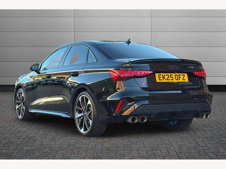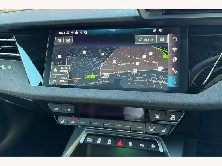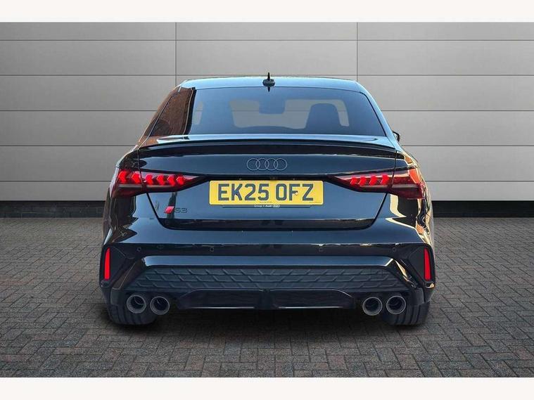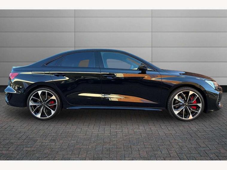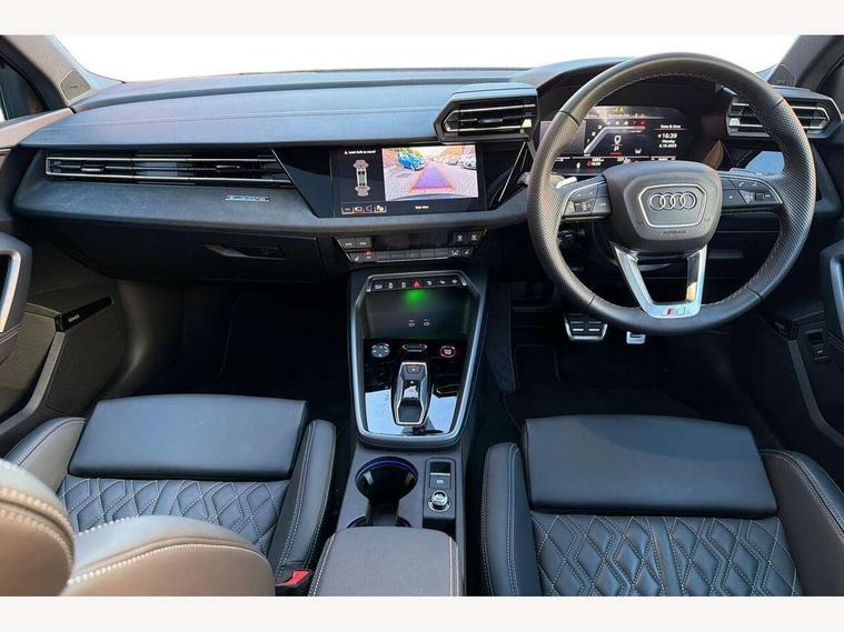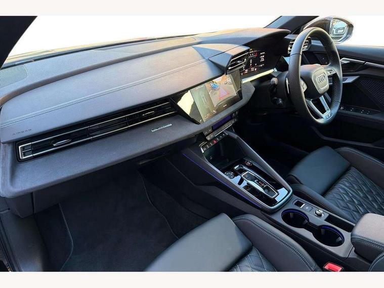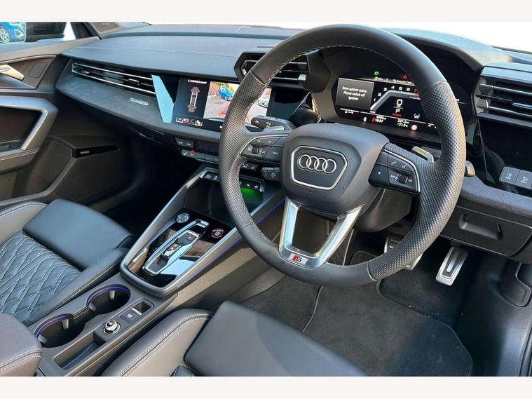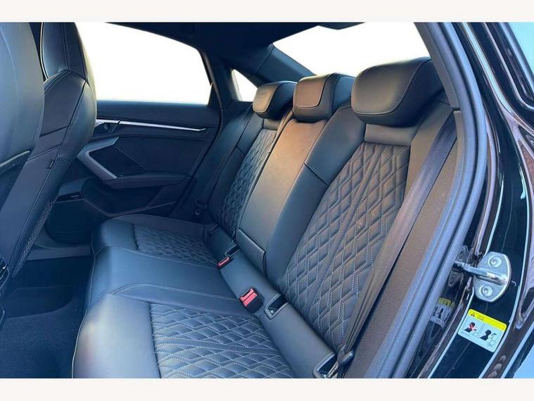 Adjustable speed limiter, Audi drive select, Audi smartphone interface with app store includes wireless Apple carplay, Android auto and Amazon alexa integration, Audi virtual cockpit plus - 12.3" full HD resolution dynamic digital instrument cluster, Automatic start/stop system with recuperation, Bluetooth interface, Camera based traffic sign recognition, Collision avoidance assistant, Distraction and Fatigue warning, e-Call (emergency call), Lane departure warning system, MMI Navigation Plus with high resolution 10.1" colour touch screen display, Park Assist with parking system Plus, Progressive steering, Service indicator, Trip computer, Voice control system with natural language interaction, quattro permanent all-wheel drive with torque splitter, S sport suspension with spring damper adjustment and lowering by 15mm, Audi Phonebox light with wireless charging, DAB Digital radio, USB ports with charging function in the rear, Anthracite grey Audi rings (front and rear), Audi Beam uses LEDs to project the rhombus S logo onto the ground as you exit your S3, Auto dimming frameless rear view mirror, Black accents front and rear bumpers including air inlets, Black accents in front grille and frame, Black accents window trims strips, Electrically adjustable/heated/folding/auto dimming door mirrors with integrated LED indications + kerb view function for passenger side, Exterior model badging, Front electric windows, Headlight washers, Heat insulating glass windscreen, Illuminated door sills with aluminium inserts at the front with S logo, LED 3rd brake light, LED daytime running lights, LED headlights with LED rear lights and dynamic rear indicators, Light and rain sensors, Privacy glass - dark tinted rear window, rear door and side windows, Rear boot, Rear electric windows, Rear side wing doors, S grille, S3 front bumper with S specific air intake grilles, 12V socket and storage compartment in front centre console, 3 seat bench in 2nd row, 3 spoke flat bottomed leather multifunction sport steering wheel with gear shift paddles, 3-zone deluxe automatic air conditioning, 4 way electrically adjustable lumbar support for driver and front passenger, 40/20/40 split folding rear seat bench, Black cloth headlining, Fine Nappa leather upholstery with front sports seats S embossed logo, Front and rear centre armrest in artificial leather, Front and rear centre armrest in artificial leather with contrasting stitching on armrests and instrument panel, Front and rear headrests, Front/rear floor mats, Heated front seats, Height and reach adjustable steering wheel, Manual boot compartment lid, Manually adjustable front seats, Rear cup holders, S badging on the steering wheel, Seat side bolsters, Single front passenger seat, Stainless steel pedals and front footrest in black, Aluminium interior elements pack - A3, Extended ambient lighting package Pro - S3 Black edition, Storage package - A3 Saloon, Technology package - A3, 3x3 point rear seat belts, Driver and front passenger airbag with passenger airbag deactivation, Electronic Stabilisation Control (ESC) including ABS, ASR and EDL, First aid kit with warning triangle and 2 safety vests, Front side airbags with head airbags and interaction airbag, Hill hold assist, Pre-sense front with pedestrian and cyclist detection, Seatbelt monitoring, Tyre pressure loss indicator, Anti theft alarm, Anti-theft wheel bolts, Electronically operated child locks, Immobiliser, Remote central locking with safelock, Inlays in black dynamica microfibre, Tyre repair kit,