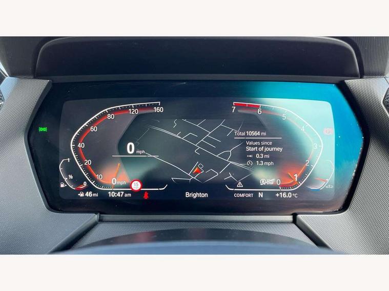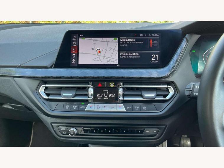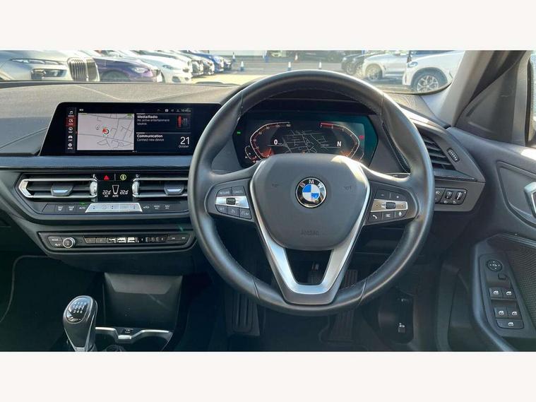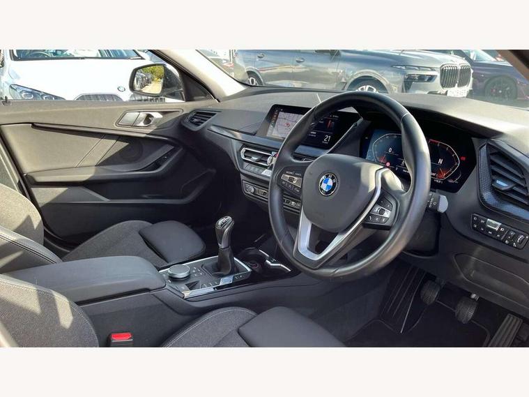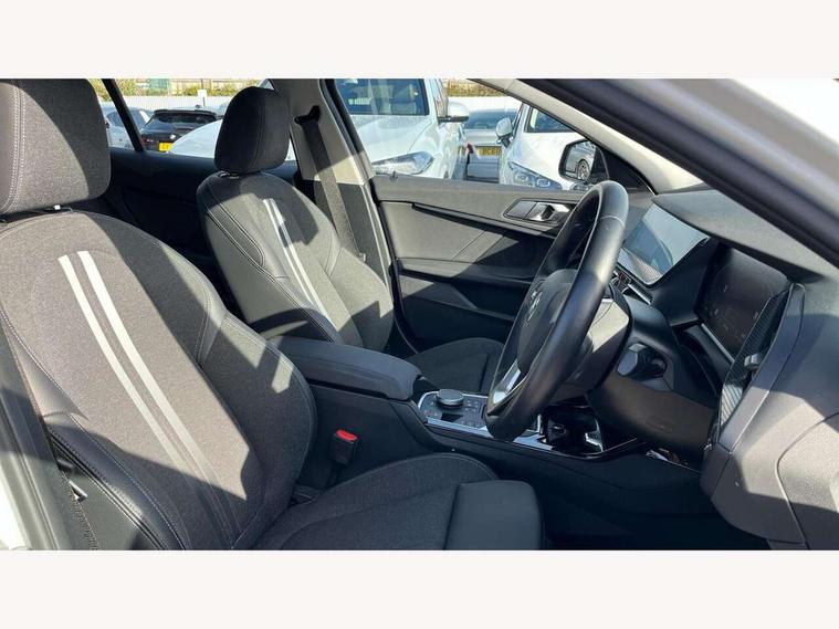 Active guard plus, Attentiveness assist, BMW Online services, BMW Teleservices, Check Control warning system for monitoring of lights and door/luggage compartment open warning, Connected eDrive Services, Cruise control with brake assist, Eco pro mode, Electric power steering with Servotronic steering optimised at all speed ranges, Integrated owners handbook, Lane departure warning system, Oil sensor for level and grade, On board computer, Optimum shift indicator, Personal Profile, Pull away assistant, Speed limiter, 6 speed manual transmission, Aluminium lightweight construction, Anti roll bar front and rear, Balancer shaft, Double VANOS, Drive Performance Control, Electronic differential lock, High precision injection, Petrol Particulate Filter, VALVETRONIC engine management, Bluetooth audio streaming, DAB Digital radio, Auto dimming rear view mirror, Automatic windscreen wipers and automatic headlight, Body colour door handles, Body colour mirror caps, Chrome exhaust tailpipe in single, round (Exhaust tailpipe, stainless steel - single, round), Chrome kidney grille with extra wide black, high gloss black vertical slats, Direction indicator side lights in exterior mirrors, Fading support, Follow me home headlights, Front and rear bumper system with replaceable deformation elements, Front and rear electric windows with open and close fingertip control, anti trap facility and comfort closing, Front bumper in Body colour with exclusive Sport air inlets finished in High gloss Black, Front door sill finishers in black plastic with BMW designation, Green tinted heat protection glazing, Heated, electrically adjustable exterior mirror aspheric on driver side, convex on passenger side, High gloss shadowline window frame, Recess cover mirror frames and B/C pillar embelisher trim, High level third brake light, LED daytime running lights, LED eyebrow turn indicators, LED front fog lights, Lightweight engineering, Manual headlight beam throw control, Matt black air guide grilles, Model designation on right side of tailgate, Nearside reverse light in rear light cluster, Preparation for high beam assistant, Rain sensor including auto headlights activation, Rear bumper in Body colour with exclusive Sport design elements finished in High gloss Black, Rear fog lights, Rear window wiper, Shark fin antenna, Visible VIN plate, Welcome lighting, 12V power socket in centre console, 3 rear seat head restraints, 3 spoke sports leather steering wheel in pearl Chrome, Child seat ISOFIX attachment for two outer rear seats and front passenger seat with anchorage points, Conditioned based service, Folding rear clothes hook, Four grab handles integrated in roof lining, Front and rear door pockets, Front and rear door pockets with bottle holders, Front and rear side armrest integrated into door trim, Front armrest foldable with integrated storage compartment, Front sports seats with electric side bolster adjustment, Glove compartment, Height adjustable front head restraints, Manual adjust steering wheel, Multi-function controls for steering wheel, Storage compartment in centre console, Sun visors with vanity mirrors and insert tab, Two zone automatic air conditioning, Velour floor mats, Connected pack professional - 1 Series, Extended storage pack - 1 Series, Interior lights pack - 1 Series, 2 tone horn, 3 point seatbelts on all seats, front pyrotechnic belt tensioners, stopper and belt force limiters, rear coded belt buckles, Airbags - front driver/passenger, front & rear curtain, front side, Anti lock braking system (ABS) with brake assist, BMW emergency call, Brake drying, Braking readiness, City braking function, Crash sensor activating central locking release, hazard warning lights, fuel cut off, interior lighting + activation of safety battery terminal clamp, Driver and front passenger seat belt security check, Dynamic stability control + (DSC+), Dynamic Traction Control - DTC, Electrically operated hand brake, Front and rear disc brakes, Front passenger manual airbag deactivation, Seatbelt warning, Side impact protection, Tyre pressure monitoring system, Warning triangle and first aid kit, Automatic drive away locking facility, Central locking switch for all doors, fuel filler cap and luggage compartment, Deadlocking function system to all doors, Locking wheel bolts, Remote central locking with two Integrate key, one button for opening and closing all lock, open and close window, button for open luggage compartment, Start/stop button with comfort go keyless engine start and auto start stop deactivation button, Thatcham Cat.1 alarm and immobiliser, Contrast stitching on instrument panel, Illuminated Berlin interior trim, Reduced rolling resistance tyres,