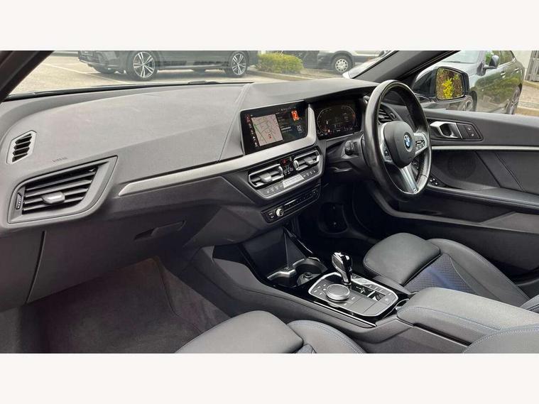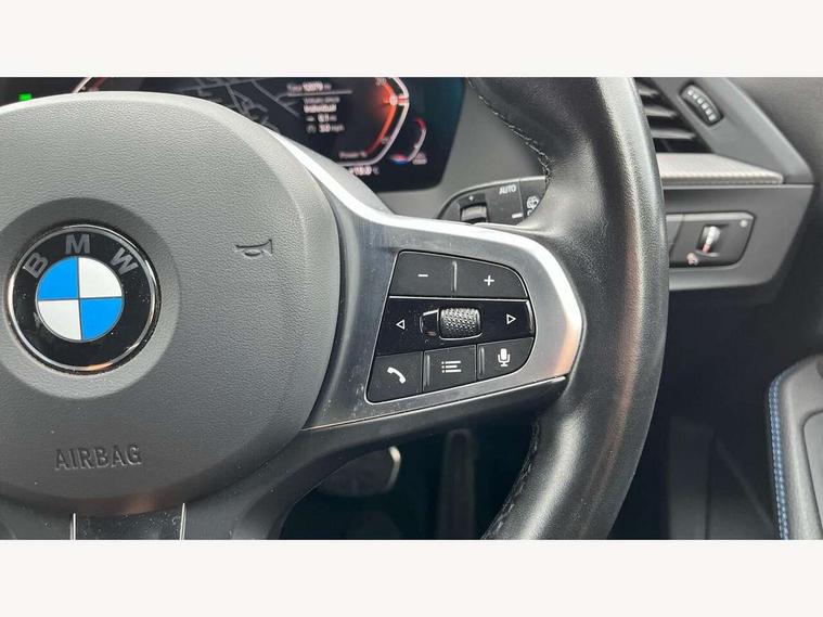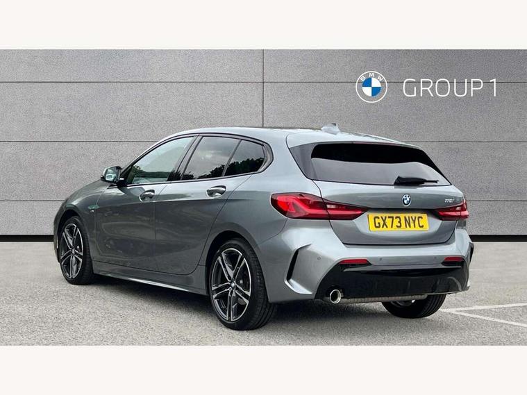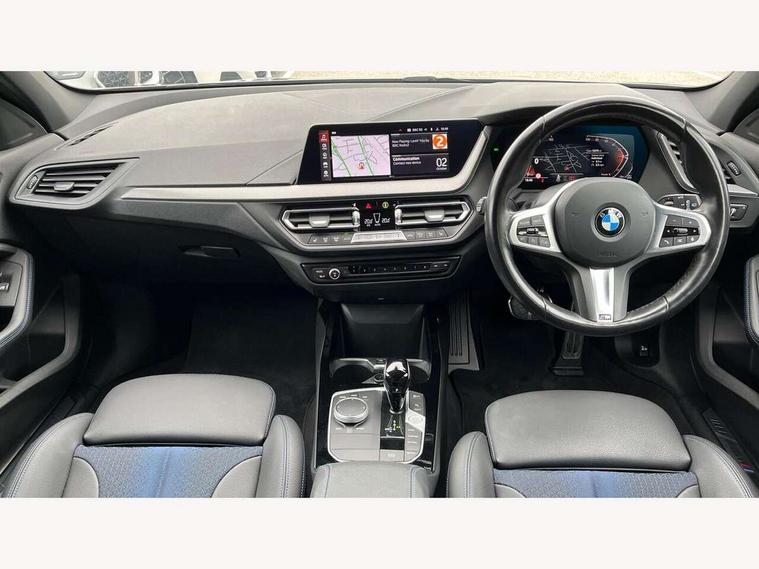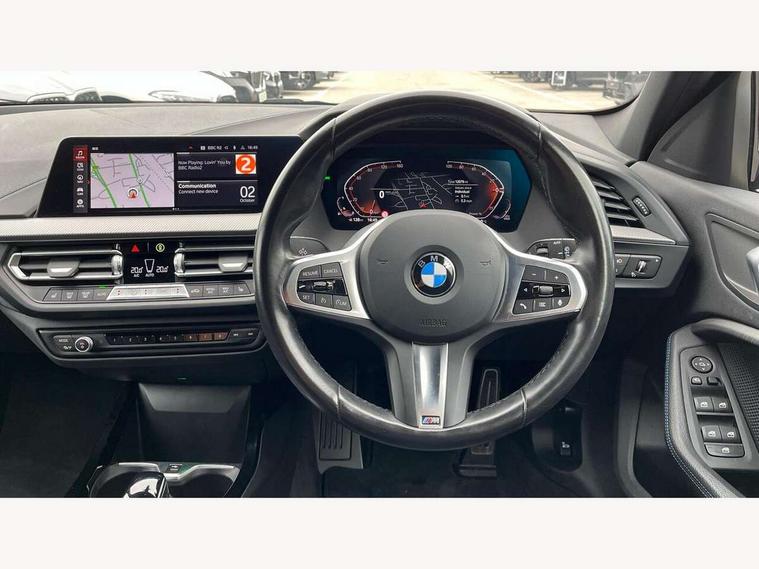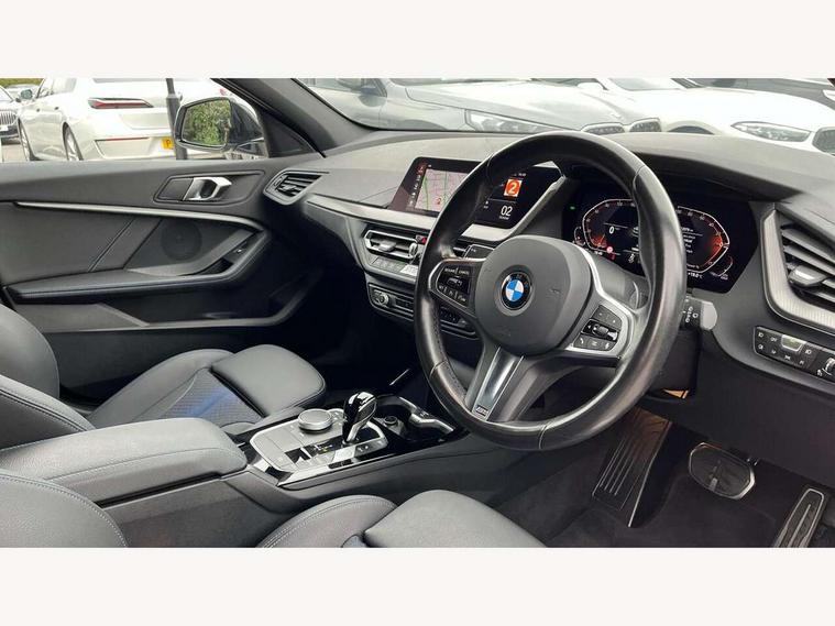 Active guard plus, Attentiveness assist, BMW ConnectedDrive online services, BMW Teleservices, Check Control warning system for monitoring of lights and door/luggage compartment open warning, Cruise control with speed limiter, Eco pro mode, Front axle single joint with specific axle kinematics to minimise drive influences on steering + provide increased rigidity agile driving behaviour, Integrated owners handbook, Lane departure warning system, Oil sensor for level and grade, On board computer, Optimum shift indicator, Personal Profile, Pull away assistant, Rigidly mounted rear subframe - Multi link construction with separate spring / damper configuration and excellent driving characteristics, Speed limit Info including no-overtaking indicator, Aluminium lightweight construction, Anti roll bar front and rear, Balancer shaft, Double VANOS twin scroll turbocharging system, Drive Performance Control, Electronic differential lock, High precision injection, M sport suspension, Petrol Particulate Filter, Twin tube gas filled shock absorbers with degressive characteristic curve, VALVETRONIC engine management, DAB Digital radio, Auto dimming rear view mirror, Automatic headlight beam throw control, Automatic windscreen wipers and automatic headlight, Body colour door handles, Body colour mirror caps, Body colour roof trims, Chrome 'M' logo side designation, Chrome exhaust twin tailpipes round 90mm in left, Chrome kidney grille frame with Satin Aluminium struts, Direction indicator side lights in exterior mirrors, Electrically adjustable exterior mirror with mirror adjustment switch on drivers armrest and aspheric on driver side, convex on passenger side, Fading support, Folding side mirrors with auto dimming/folding wing mirrors with auto dimming, Follow me home headlights, Front and rear bumper system with replaceable deformation elements, Front and rear electric windows with open and close fingertip control, anti trap facility and comfort closing, Front door sill finishers in black plastic with M designation in metallic look, Green tinted heat protection glazing, High gloss shadowline window frame, Recess cover mirror frames and B/C pillar embelisher trim, High level third brake light, Integrated front windscreen with washer jets, LED daytime running lights, LED eyebrow turn indicators, LED front fog lights, Lightweight engineering, Matt black air guide grilles, Matt black wheel arch trim, Model designation on electric bootlid, Nearside reverse light in rear light cluster, Preparation for high beam assistant, Rear fog lights, Rear side wing doors, Rear window wiper, Shark fin antenna, Trailer stabilisation logic, Visible VIN plate, Welcome lighting, 12V power socket in front centre console with blanking plug, 3 rear seat head restraints, 3 seat bench in 2nd row, 3 spoke sports leather steering wheel with black leather and stitching, pearl chrome decorative finish, specific M Badge, Anthracite headlining, Black boot net with lashing eyes, Cargo function on 2nd seat row, Child seat ISOFIX attachment for two outer rear seats and front passenger seat with anchorage points, Conditioned based service, Driver and front passenger backrest net on rear, Driver and front passenger seat heating, Driver side folding compartment in instrument panel, Folding rear clothes hook, Four grab handles integrated in roof lining, Front and rear door pockets with bottle holders, Front and rear side armrest integrated into door trim, Front armrest, Front sports seats, Glove compartment, Height adjustable front head restraints, Luggage compartment for bag hooks on left and right, foldable luggage compartment liner and four lashing eyelets, Manual adjust steering wheel, Multi-function controls for steering wheel, Single front passenger seat, Storage compartment in centre console, Storage compartment in luggage compartment, Stowage of the parcel shelf in luggage compartment trim, Sun visors with vanity mirrors and insert tab, Two front centre console cupholders, Two zone automatic air conditioning, Type C two USB ports in rear centre console, Velour floor mats, Additional interior lighting pack - 1 Series, BMW live cockpit professional pack- 1 Series, Connected pack professional - 1 Series, Interior lights pack - 1 Series, M Sport exterior styling aerodynamics pack - 1 Series, 2 tone horn, 3 point seatbelts on all seats, front pyrotechnic belt tensioners, stopper and belt force limiters, rear coded belt buckles, Airbags - Front driver/passenger, front and rear curtain head protection, front side, manual deactivation of front passenger airbag, Anti lock braking system (ABS) with brake assist, BMW emergency call, Brake drying, Braking readiness, Child proof locking system in rear door, City braking function, Comfort modes, Cornering brake control, Crash sensor activating of airbags, Unlocking doors, hazard warning lights, fuel cut off, interior lighting+activation of safety battery terminal clamp, Driver and front passenger seat belt security check, Dynamic stability control + (DSC+), Dynamic Traction Control - DTC, Electrically operated hand brake including automatic hold function, Front and rear disc brakes, Seatbelt warning, Side impact protection, Tyre pressure monitoring system, Warning triangle and first aid kit, Central locking switch for all doors, fuel filler cap and luggage compartment, Deadlocking function system to all doors, Drive away locking system on all doors and luggage compartment with de-activated in iDrive settings, Locking wheel bolts, Remote control with integrated key with High-gloss Black inlay and M designation and 1 button for open/ close lock, window, open luggage compartment, Start/stop button illuminated in centre console with keyless engine start and auto start stop deactivation button, Thatcham Cat.1 alarm and immobiliser, Wheel slip limitation close to the actuator (ARB), Contrast stitching on instrument panel, 18" Burnished M double spoke bi-colour alloy wheels finished in orbit grey - styl