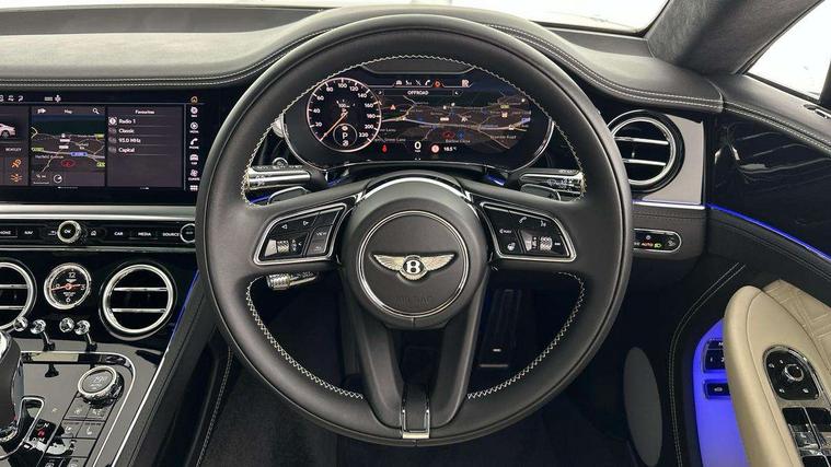 Apple car play, Blind spot warning, Bluetooth and Wi-Fi audio streaming, Brake pad wear indicator warning light, City assist, Collision prevention assist, E-call, Front/rear park distance control, Hands free boot opening, Infotainment system with 12.3 high resolution touch screen retina disp + proximity sensors + advance music interface, single DVD/CD, 2 SD card slots, Navigation system, Park assist system, PAS, Power latching to all doors for easy entry, Reversing camera, Reversing traffic warning, Top view camera, Traffic sign recognition, Trip computer, 3 Chamber air suspension with continuous damping control, Battery charger, Dynamic ride height control + ground clearance function, 60GB hard drive, Acoustic and heat insulating front windscreen, Acoustic glass, Adaptive brake lights, Auto dimming door mirrors, Auto dimming rear view mirror, Automatic headlights, Black and Chrome bonnet and boot Bentley wing badges, Bright boot finisher, Daytime running lights, Deployable rear boot spoiler, Electrically adjustable door mirrors with heating, power fold, memory and dip on reverse functions, Full LED Matrix headlamps with high-beam assist, Full LED tail lamps, Heated rear windscreen, LED third brake light, Rain sensing windscreen wipers, Rear boot, Treadplates inner with "Handbuilt in Crewe, England" inserts, Twin oval exhaust finishers, 12v power sockets 2 in cabin and 1 in boot, 2 cupholders in front centre console, 2 individual seats in 2nd row, Bentley hide upholstery, Black seat belt buckles, Boot carpet in Beluga, Boot lid down lighters, Deep Pile Carpets to match upholstery, Electric tilt and reach adjustment steering column with memory and easy entry functions, Four occupant seating positions, Leather trimmed gearshift lever, Lockable cooled glovebox, Metal bulls eye vents with organ stop, Multi-zone automatic climate control - two zone, Rear headrests, Seats with straight fluted style hide cover, Single front armrest with fore/aft adjust and stowage, Single front passenger seat, Ski hatch, Steering wheel gearshift paddles, Stowage to front doors, centre console and under centre armrest, Sunvisors with illuminated vanity mirrors, Two rear seats with centre stowage and cup holders including 12v socket and 2 USB charging points, Driver and passenger airbags, Electronic parking brake with drive away assist, Electronic stability programme with traction control, Anti lock braking System , Electronic brake force distribution, HBA + drag torque control, Electronic tyre pressure monitoring, Exit warning, Front vented 420x40mm disc brakes with Bentley branded black brake callipers, Multicollision braking system, Pedestrian warning, Pre crash system, Pre sense braking system, Rear vented 380x30mm disc brakes with Bentley branded black brake callipers, Side airbags, Torque vectoring brake, Alarm, Bentley GPS advanced tracking system, Immobiliser, Keyless entry and start, 21" Summer tyres, Tyre inflation kit,