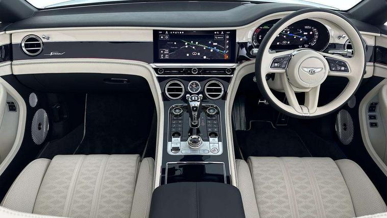 4G LTE telephone module, All wheel steering, Apple car play, Blind spot warning, Bluetooth and Wi-Fi audio streaming, Brake pad wear indicator warning light, Collision prevention assist, Cruise control, E-call, Engine start/stop button, Front/rear park distance control, Hands free boot opening, Inductive phone charger, Infotainment system with 12.3 high resolution touch screen retina disp + proximity sensors + advance music interface, single DVD/CD, 2 SD card slots, Navigation system, Online real time traffic information, Park assist system, PAS, POI (search), Power latching to all doors for easy entry, Rear axle steering, Reversing camera, Reversing traffic warning, Top view camera, Traffic sign recognition, Trip computer, 3 Chamber air suspension with continuous damping control, Battery charger, Bentley Dynamic ride, Dynamic ride height control + ground clearance function, Electronic limited slip differential, 60GB hard drive, Acoustic and heat insulating front windscreen, Acoustic glass, Adaptive brake lights, Auto dimming door mirrors, Auto dimming rear view mirror, Automatic headlights, Bentley lettering on the boot, Black and Chrome bonnet and boot Bentley wing badges, Body colour door mirrors, Bright boot finisher, Bright wing vent with 12 in the black ribbed matrix, Dark tint granite painted radiator matrix, Deployable rear boot spoiler, Electrically adjustable door mirrors with heating, power fold, memory and dip on reverse functions, Full LED Matrix headlamps with high-beam assist, Full LED tail lamps, Heated rear windscreen, Hidden antennae, Illuminated treadplates, Jewel fuel and oil filler caps, LED daytime running lights, LED third brake light, Rain sensing windscreen wipers, Rear boot, Speed fascia badge, Speed inner treadplates and Bentley illuminated outer treadplates, Speed unique sports sill, 12 way heated electric memory front seats, 12v power sockets 2 in cabin and 1 in boot, 2 cupholders in front centre console, 2 individual rear seats, Air Ioniser, Beluga interior roof, Bentley analogue clock with plain bezel, Boot carpet in Beluga, Boot lid down lighters, Deep Pile Carpets to match upholstery, Diamond in Diamond quilting to seats, door casings and rear quarter panels, Dinamica headlining, Electric tilt and reach adjustment steering column with memory and easy entry functions, Footwell illumination and ambient lighting, Four occupant seating positions, Front head restraints, Key box matched to colour split, Lockable cooled glovebox, Metal bulls eye vents with organ stop, Multi-zone automatic climate control - two zone, Rear headrests, Seats with straight fluted style hide cover, Single front armrest with fore/aft adjust and stowage, Single front passenger seat, Speed embroidered headrests, Sports pedals, Steering wheel gearshift paddles, Stowage to front doors, centre console and under centre armrest, Sunvisors with illuminated vanity mirrors, Two rear seats with centre stowage and cup holders including 12v socket and 2 USB charging points, Unique Speed mix of nappa leather and dinamica to seats and lower cabin, Colour specification - GT, Precision diamond quilting specification pack - GT/GTC, Driver and passenger airbags, Electronic parking brake with drive away assist, Electronic stability programme with traction control, Anti lock braking System , Electronic brake force distribution, HBA + drag torque control, Electronic tyre pressure monitoring, Exit warning, Front and rear ventilated brake disc, Multicollision braking system, Pedestrian warning, Pre crash system, Pre sense braking system, Side airbags, Torque vectoring brake, Alarm, Bentley GPS advanced tracking system, Immobiliser, Keyless entry and start, 5 year service plan, 22" summer tyre with Pirelli noise cancellation system, Tyre inflation kit,