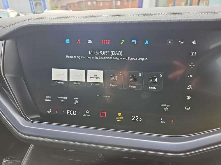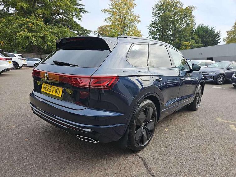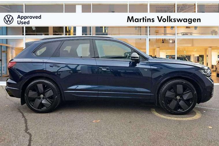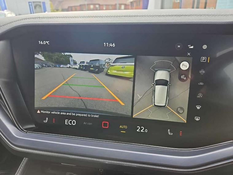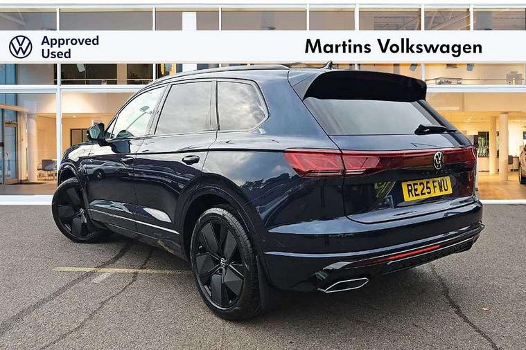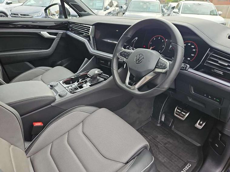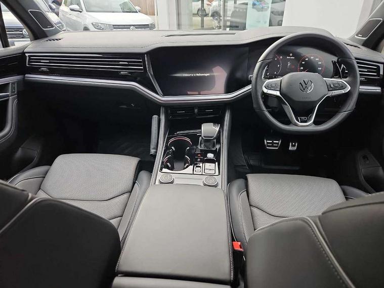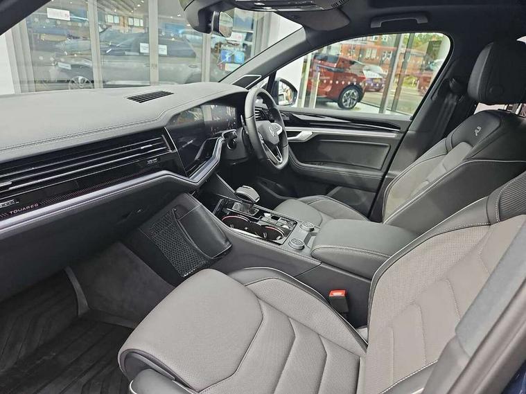 15" Screen Top infotainment system Premium (MIB3), Adaptive cruise control, Advanced driver attention and drowsiness monitor, Driver profile selection, Dynamic road sign display, E-Sim card for online connectivity, eCall emergency system, Innovision cockpit, Intelligent park assist, Mobile phone interface with inductive charging, Multi-colour Active Info display, Park Assist - Sensor controlled steering aid to assist parallel or bay parking, PAS, Warning signal and warning light for front and rear seatbelts not fastened, Wireless app connect, Adaptive chassis control, DAB Digital radio, Diversity antenna for AM/ FM reception, We Connect and We Connect Plus functionality, Automatic coming/leaving home lighting function, Automatic headlights, Black door mirrors, Black style comfort bumpers, Dynamic headlight range control with dynamic cornering light, Electric front tilt/slide panoramic sunroof and fixed rear sunroof, Electrically power adjustable, heated, folding, auto dimming, front passenger exterior door mirror lowering function, External USB type C socket and charging sockets, Gloss black roof rails, HD LED Matrix beam plus digital headlight projection with variable light distribution, Headlight washers, Highway light, LED 3rd brake light, LED daytime running lights, LED rear combination lamp with variable lighting functions and special styling, Poor weather light, Rain sensor, Rear exhaust tailpipe, Rear fog light with back up light on both sides, Rear light bar and illuminated logo, Rear side wing doors, Rear wiper, Stainless steel door sill protection, 12V socket in centre console, 3 rear headrests, 3 seat bench in 2nd row, 4 zone climate control, Airbag label on sun visor and B-pillar, Brushed stainless steel pedals, Double sun visors with illuminated vanity mirrors, Front + rear carpet mats, Front centre armrest, Leather wrapped multifunction sports steering wheel, heated, with touch control and shift paddles, Mechanical rear seat release, Power adjustable lumbar support in front, Power seats in front, right side with memory features and seat cushion depth adjustment, Rear seat backrest and split folding with center armrest, Single front passenger seat, Memory pack plus - Touareg, 3 point seatbelts, outer rear with ECE lable, ABS, Child locks on rear doors, Curtain airbags, Driver and front passenger safety-optimised head restraints, Driver/Front Passenger airbags, Extended pedestrian protection measures, Front assist, Front seat side impact airbags, Generative braking with start and stop system, Height adjustable 3 point front seatbelts with pre tensioners, Passenger airbag deactivate switch, Three 3 point rear seatbelts, Two tone horn, Warning triangle and first aid kit, Alarm system with interior protection, Easy open and close sensor controlled luggage compartment opening and closing with remote unlocking, Keyless Access Keyless locking and starting system with SAFELOCK, Aluminium decorative inserts, Black decorative trims, Gloss black decorative inserts in centre console, Tool kit,