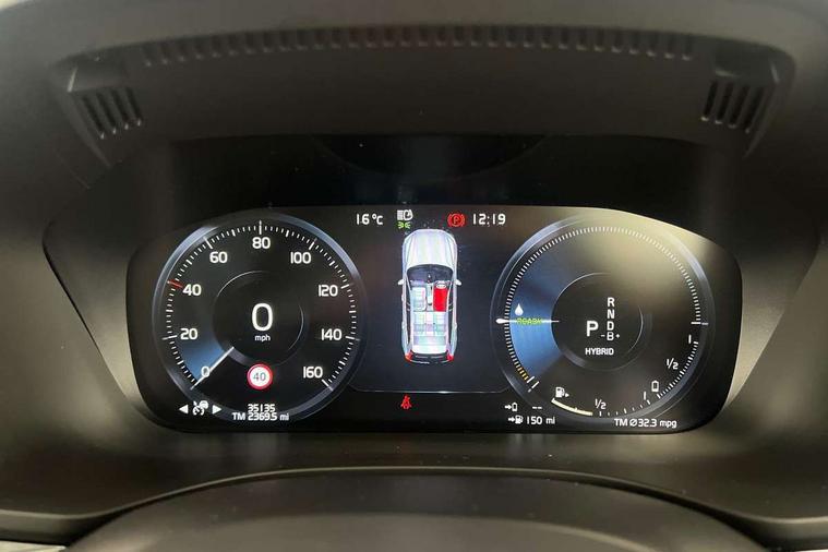 12.3" Active TFT crystal driver's instrument display, 9" Touch screen, Adjustable steering wheel force, Bluetooth handsfree system, Drive mode selector, Driver alert control with lane keeping aid, Oncoming Lane Mitigation, Sensus navigation with European mapping and traffic information, Service interval indicator, Speed limiter, Speed sensitive steering, Trip computer, Voice control system, Volvo on call, 8 speed automatic transmission with start/stop + manual change functions, Active four-C chassis + four corner adaptive damper with electronic rear air suspension, All wheel drive system, Electric rear axle drive, Recharging port located in nearside front wing, DAB Digital radio, Active bending headlights with adaptive shadow technology, Adaptive brake lights with high level LED brake lights, Auto dimming interior + exterior mirrors, Automatic headlight levelling system, Body colour bumpers, Chrome deco lower front bumper, Chrome lower side moulding trim with Recharge logo, Chrome window surround, Colour coordinated auto folding and heated power door mirrors, Dual integrated exhaust pipes, Electric front+rear windows, Headlamp cleaning system, Heated aqua blades, High gloss black grille with chrome inserts, Home safe and approach lighting, Illuminated side steps, Integrated silver roof rails, LED Headlights + Active high beam incorporating daytime running lights, Power glass tilt and slide panoramic sunroof with sun curtain, Rain sensor with automatic windscreen wiper activation, Rear wiper, Roof antenna, Roof spoiler, Tinted windscreen, Visible VIN plate, 12V socket in front tunnel console and luggage compartment, 2 zone electronic climate control with Clean zone air quality system and pollen filter, 3 spoke leather steering wheel with chrome trim, Auxiliary fuel fired heater with pre conditioning functions, B Pillar ventilation, Bright metal luggage threshold, Centre armrest storage illumination, Centre console cupholders and storage, Charge cable bag, Floor mats, Front and rear door pocket and front cupholder illumination, Front footwell illumination, Front reading lights, Front seat cushion extension and power adjustable front seats side support, Head restraints for all seats, Heated front seats, Heated steering wheel, Height/reach adjustable steering column, High gloss black steering wheel remote infotainment controls, Illuminated glovebox, Illuminated luggage compartment, Illuminated vanity mirrors + ticket holder, Load cover, Load protection net, Massage function for front seats, Multi directional lumbar support, Multicolour theatre lights, Nappa soft leather perforated front and ventilated upholstery, Orrefors Crystal gear lever knob, Rear armrest / integral cup holders / storage tray, Rear footwell illumination, Rear seat concealed storage, Recharge aluminium tread plates, Tailgate illumination and ambient door lighting, Underfloor stowage compartment, Versatile split folding rear seat - 60/40, Power seat pack - XC60, 5 three point seatbelts, City safety with steering support with Pedestrian + cyclist + large animal detection + front collision warning with full auto brake, Drivers knee airbag, Dual stage driver/passenger airbags, Electronic parking brake with auto hold, First aid kit, Hill descent control, Hill start assist, IC (Inflatable Curtains) - Full Length, Passenger airbag cut-off device, Road sign information display, Run off Road Mitigation, Run off Road Protection, Seatbelt reminder and pretensioners, SIPS (Side Impact Protection System), SIPS airbags, Slippery road and hazard light alert, Stability and Traction Control with Spin control, Engine Drag Control and Corner Traction Control, Tyre pressure monitoring system, Vehicle deceleration control with Anti-lock Brake System, Electronic Brake Distribution and Emergency Brake Assist, Warning triangle, WHIPS whiplash protection system - front, Anti-theft alarm including immobiliser/volume sensor + level sensor, Care key with user defined top speed, Key integrated remote control central locking + fuel flap with deadlocking system and auto open/close power windows, Keyless Drive (includes Keyless Entry and Keyless Start) with Handsfree Tailgate Opening/Closing, Locking wheel nuts, Private locking for tailgate, Tailored instrument panel with contrast stitching, Tyre sealant kit + 12v compressor,