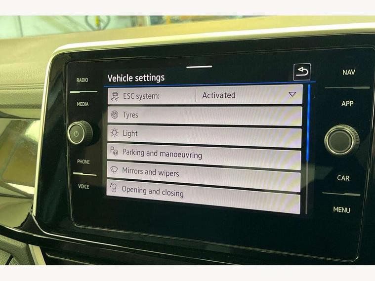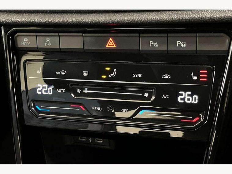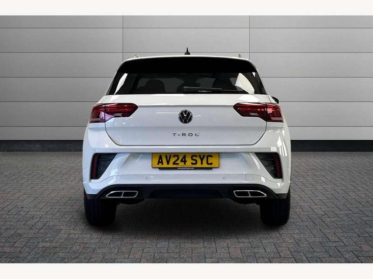 10.25" Digital cockpit pro, Advanced driver attention and drowsiness monitor, Bluetooth mobile phone interface, Emergency call service, Lane keeping system Lane Assist, Modified key software - reduce switch off time for key status change to Long no motion, Online services, Park assist including front and rear parking sensors, Service interval indicator, Tailgate/trunk lid release from outside, Think blue trainer driver tips and journey analysis, Warning sound and light for front seatbelts unfastened, Wireless app connect, Battery regeneration during braking, Start/stop function with battery regeneration, Diversity antenna for FM reception, Music playback - MP3, WMA and AAC files, Premium USB cable in choice of either Apple or Android smartphone compatibility, SD card slot, Simultaneous pairing of 2 compatible mobile devices, Title and cover art display, We Connect and We Connect Plus functionality, 3rd brake light, Auto dimming interior rear view mirror, Automatic hazard lights activation under emergency braking, Automatic headlight control with LED separate daytime running lights with coming/leaving home function, Electrically adjustable and heated door mirrors, Extended roof spoiler, Exterior mirrors aspherical on driver side, convex on front passenger side, External USB type C socket and charging sockets, Front windscreen wiper with intermittent wipe and 4 position delay, Heated rear window, LED rear combination lamps, LED rear number plate lights, Power windows with comfort operation and circuit breaker, R-Line design body coloured bumpers, Rain sensor, Rear exhaust tailpipe, Rear fog light on one side and reversing lights on both sides, Rear side wing doors, Rear wash/wipe with intermittent wipe setting, Remote electrically foldable door mirrors, puddle lights and reverse activated passenger's door mirror, 12V power socket in centre console, 3 rear head restraints, 3 seat bench in 2nd row, 4 load lashing points in luggage compartment, Air care climatronic air conditoning system with active combination filter and 2-zone temperature control, Black roof lining, Chrome plated radiator grille inserts, air vent surrounds and light switch surrounds, Door and side trim panel with leatherette insert, Front + rear carpet mats, Front centre armrest, Front cupholders x 2, Front footwell illumination, Front reading light, Front scuff plates with R Line logo, Front seat back storage pockets, Glove compartment door with light, Instrument lighting, white adjustable panel illumination, Interior ambient lighting and surround lighting, Interior light delay, Isofix child seat preparation, Leather gearshift handle, Load-through provision with cup holder when folded down ('Unsplit rear seat bench, split folding backrest, with centre armrest), Luggage compartment lighting, Single front passenger seat, Stainless steel pedals, Storage compartment in left and right luggage area, Storage compartment in rear doors, Storage compartments in driver and front passenger doors, Sunvisors with illuminated vanity mirrors, Variable boot floor, height adjustable and removable, Driver assistance pack without proactive passenger protection - T-Roc, 3 point height adj front seatbelts + pretensioners, 3 point seatbelts in outer rear with ECE label, ABS, Child locks on rear doors, City emergency braking and pedestrian monitoring, Driver and front passenger airbag with front passenger airbag deactivation, Driver and front passenger safety-optimised head restraints, Drivers seatbelt reminder, Electronic parking brake, Electronic Stability Control (ESC) inc EDL (Electronic Differential Lock) and ASR (Traction Control), Front and rear passengers curtain airbag system including front side airbags, Hill start assist, Predictive pedestrian protection, Rear disc brakes, Two tone horn, Tyre pressure loss indicator, Volkswagen roadside assistance, Anti-theft alarm system with interior monitoring, backup horn, and towing protection, Remote central locking with SAFELOCK, radio remote control with 2 remote control folding keys, Trims for alloy wheels,