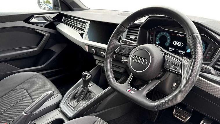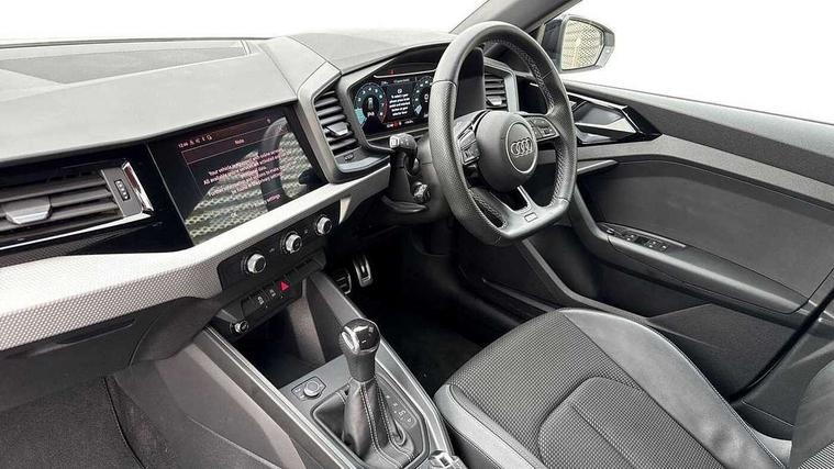 10.25" Digital instrument cluster display classis style instrument dials + speed, odometer, time, outside temperature, telephone menu + fuel level warning, Audi connect safety emergency and service including E-call, Audi smartphone interface with connect compatible smartphone via USB directly MMI display + Nav, music, third party apps controlled via MMI controller, Automatic start/stop system, Bluetooth interface, Cruise control, Driver's information system, Electromechanical power steering, Emergency services call system, Lane departure warning system, Service interval indicator, Speed limiter, Voice control system, Washer fluid level indicator, Sports suspension, 1 x SDXC card reader, 2 x USB type C connection points, DAB Digital radio, MMI radio plus with 8.8" colour MMI display screen and MMI touch, Auto dimming rear view mirror, Black door mirrors, Black side skirts, Body coloured bumpers, Door sill trims with aluminium inlays and logo, Electric front and rear windows, Electrically adjustable, heated, folding door mirrors with integrated LED side indicator, Front side air inlets in grained matt black and C frame in titanium black, Heat insulating glass windscreen and side windows, Heated rear windscreen, High level LED brake light, LED headlights with LED rear lights + dynamic rear indicators + headlight adjustment and high beam, turning light + LED daytime running lights, Radiator protective grille frame in matt aluminium silver, Rain and light sensors, Rear diffuser strip in matt titanium black, Rear fog lights, Rear side wing doors, Rear wing door, Rear wiper, Side front spoiler lips in grained matt black, 12V socket in centre console with two cup holders, 3 rear seats with headrests, 3 seat bench in 2nd row, 3 spoke flat bottomed multi-function plus leather steering wheel with S badging, grips in preforated leather, contrast stitching and paddle shift, 40:60 Split folding rear seat or folded fully, Black cloth headlining, Driver and passenger seat with manual height adjust with forward and backwards adjustment, Front and rear black floor mats with contrast stitching in fine silver, Front head restraints, Front passenger seat, Height and reach adjustable steering wheel, ISOFIX child seat mounting for front passenger and outer rear seats including top tether attachment point of outer rear seats, Leather gear knob with aluminium trim, Luggage compartment light with front and rear reading lights, Manually adjustable lumbar support in front seats, Stainless steel pedals, Black styling pack - A1 Sportback Black Edition, LED interior lighting pack - A1, Luggage compartment pack - A1, 3x3 point rear seatbelts, Audi pre-sense front with pedestrain and cyclist recognition, Brake assist function, Driver and front passenger airbag with front side and head airbags, Electronic Stability Control including ABS, EBD, ASR and EDL, Front passenger airbag deactivation switch, Hill hold assist, Manual rear child locks, Seatbelt height adjustment for front seats, Seatbelt monitoring, Tyre pressure warning light, Warning triangle and first aid kit, Anti theft alarm, Anti theft wheel bolts and loose wheel warning, Immobiliser, Remote central locking with 2 foldaway keys, Aluminium trim for control switches, air vents and digital instrument cluster, Silver grey inlays polygon structure in diamond paint finish, Structured grey accent areas including air vents, door handle recesses and centre console in quartz paint finish, 18" 7 spoke rotor design alloy wheels in gloss anthracite black, diamond cut finish,