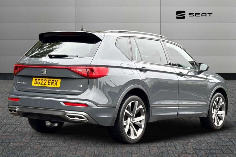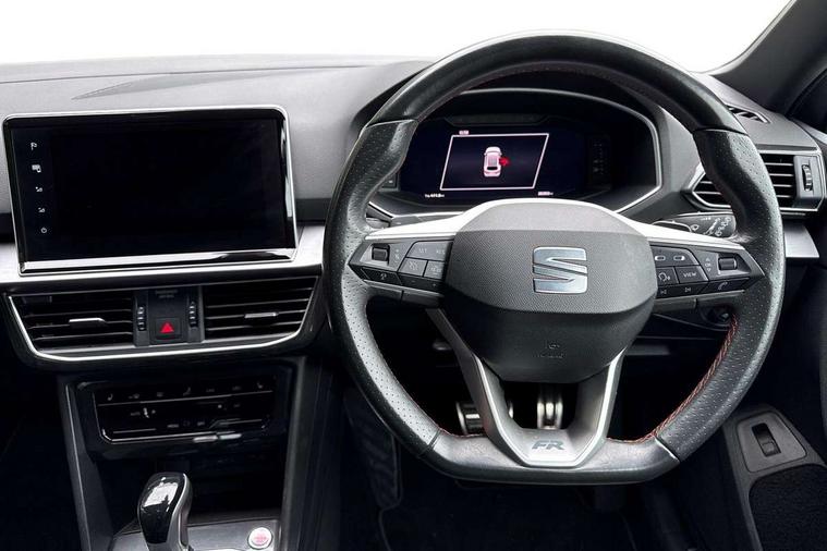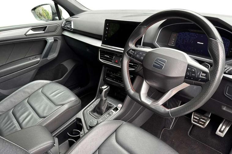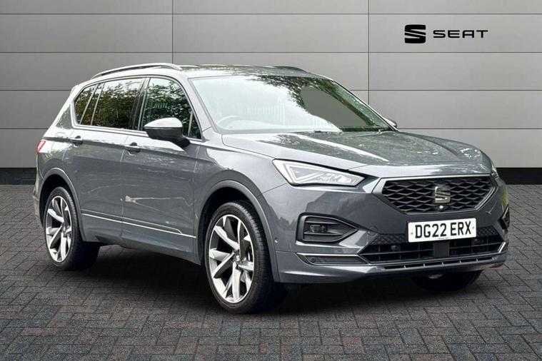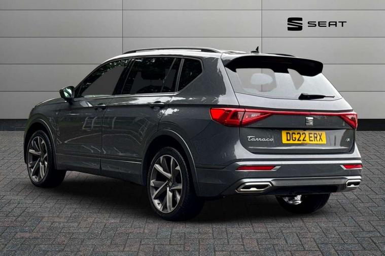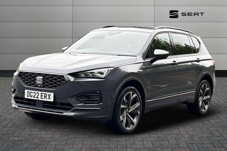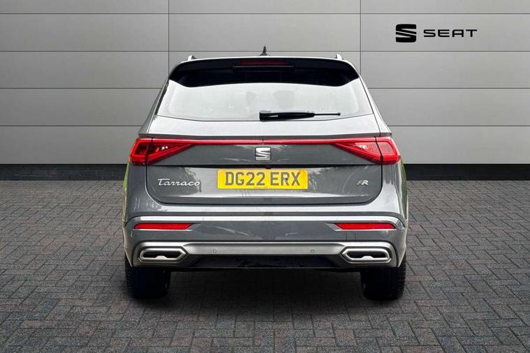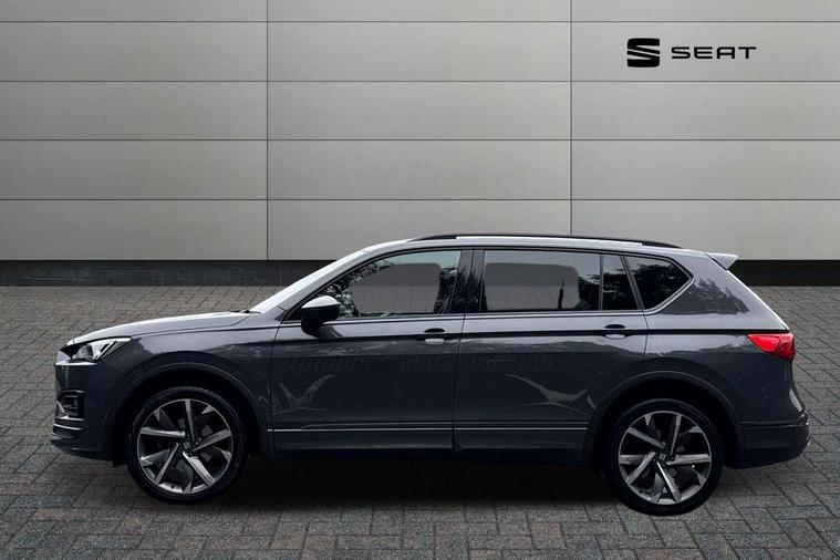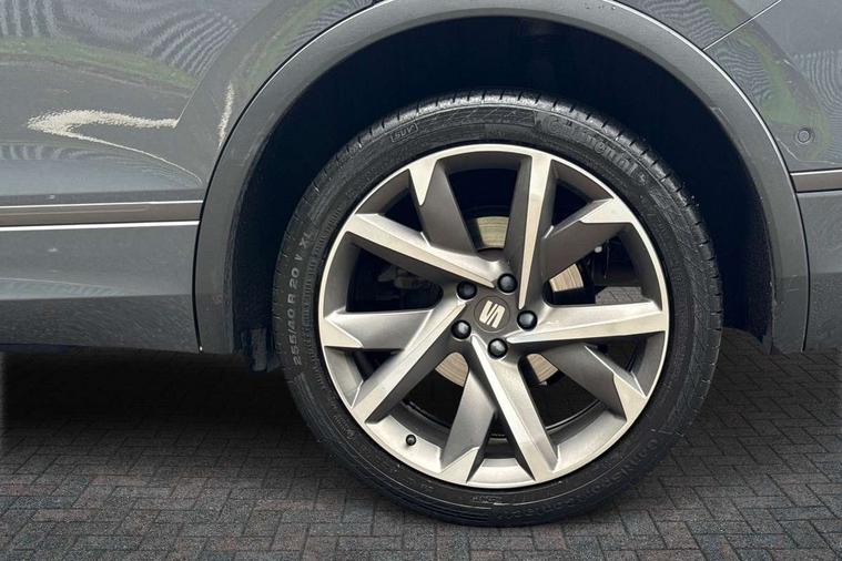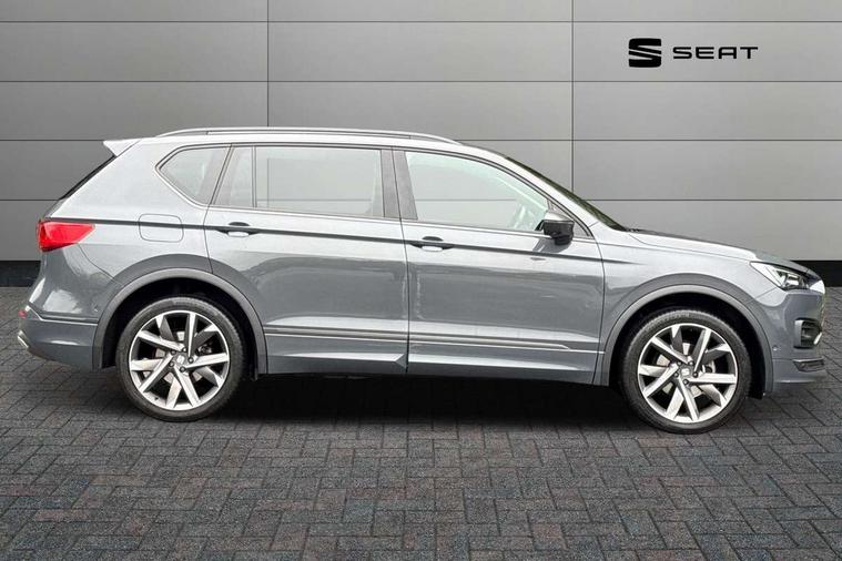 'Lights On' Reminder warning buzzer, 10.25" digital cockpit, Adaptive cruise control with speed limiter, Bluetooth audio streaming with handsfree system, Digital clock, Digital cockpit, e-Call (emergency call), Front assist city emergency braking and pedestrian protection, Full Link Wireless Smartphone Integration with Mirror Link, Apple Car Play, Lane assist, Low fuel warning light, Outside temperature gauge, PAS, Rear view camera, RPM counter, Seat connect with safety, service, remote and online, SEAT Drive profile-4 different modes, progressive steering, 4Drive versions with off-road/snow, steering response, throttle response, gear shifts mode, Self parking functionality (includes front and rear parking sensors), Top view camera, Trip computer, Wash water level indicator, Comfort suspension, Sports rear shock absorption, XDS electronic differential lock, Navigation system with 9.2" colour touchscreen with proximity sensor, 3D Map display, DAB, AM/FM Radio, 3 USB (type C), Aux-in, 8 speakers, SD card, Steering wheel mounted audio/telephone controls, USB (type C) cable for Apple and Android compatibility, Auto dimming rear view mirror, Auto headlights with automatic coming and leaving home function, Automatic headlight adjustment, Black bumpers, Black door mirrors, Black roof rails, Black window trims, Body coloured side skirts, Coast to coast lighting, Dark tinted rear windows, Dynamic rear indicators, Electric adjustable/heated/folding door mirrors with memory, Electric front/rear windows, Exterior black mouldings, Front grille frame in black, Front halogen fog lights with cornering function, Fuel door linked to central locking, Full LED headlights with LED rear lights, Illuminated aluminium front door sill with trim logo, LED daytime running lights, LED licence plate lighting, Rain sensing wipers, Rear fog lights, Rear side wing doors, Rear spoiler, Rear wash/wipe, Sports bumpers, Twin exhaust pipes, Welcome lighting, 2 individual 3rd row seats, 3 seat bench in 2nd row, 3 zone climate control, Ambient spot lighting and front footwell illumination, Black interior roof, Centre armrest in front with air outlet in rear, Driver and passenger sunvisor with covered and illuminated mirror, Driver's electric lumbar adjustment, Easy fold rear seat system - second and third row, Electric driver's seat with memory, Folding table on front seat backrests, Forward and backward adjustable seats 2nd row, Four cargo rings in the boot, Front bucket seats, Front cupholders, Front passenger seat lumbar adjustment, Front seat back storage pockets, Gear shift indicator, Height adjustable front headrests, Height adjustable passenger seat, Illuminated boot, Illuminated glovebox, Instrument lighting with brightness control, ISOFIX points in outer 2nd row seats and front passenger seat with top tether anchorage points, Leather gear knob, Leather upholstery with sports seats, Leather wrapped multifunction steering wheel, Luggage compartment floor with split function, Multicolour ambient lighting in front and rear door panels + LED lights in interior door handles, Rear armrest and easy back seat release mechanism from boot, Rear headrests, Single front passenger seat, Sliding boot cover, Sports steering wheel, Storage compartment in roof console for sunglasses, Storage draw under front passenger seat, Three 12V sockets, Tool kit, Winter pack - Tarraco, 3x3 point rear seatbelts, ABS, Active front head restraints, Driver/front passenger airbag, Drivers knee airbag, Electronic parking brake with auto hold, Electronic stability control, Front passenger airbag deactivation, Front side airbags, Hill hold control, Manual rear child locks, Seatbelt reminders for all seats, Tiredness recognition system, Traction control, Two curtain airbags, Tyre pressure monitoring system, Alarm, Keyless enter and go with electric tailgate with virtual pedal, Locking wheel bolts, Power locking and remote control with two foldable keys and opening boot selector, Remote control central locking, Chrome interior detailing - door and dashboard decorative inserts, 20" 'Cosmo' Grey machined alloys wheels,