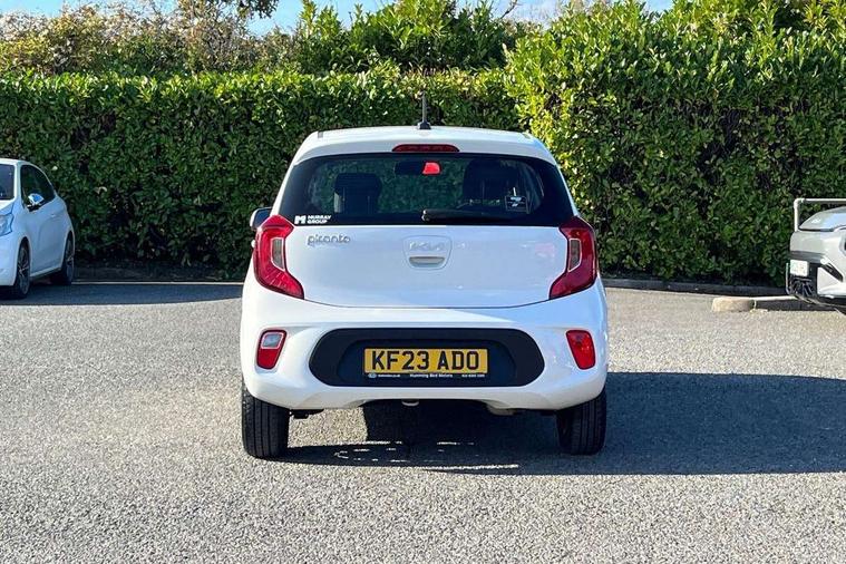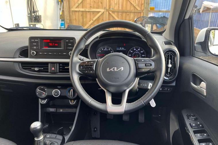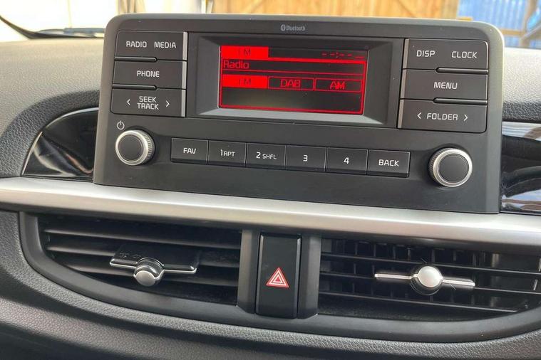 3.8" monochrome audio display with RDS and DAB, 4.2" supervision monochrome cluster display, Emergency call service, Emergency stop signalling system, External temperature gauge, Forward Collision-Avoidance Assist (FCA) - City, Motor driven power steering, Tachometer, Tailgate, Trip computer, 4 speaker audio system, Bluetooth with music streaming, Steering wheel mounted controls, USB ports for connection of a media device, Automatic headlight control system, Black radiator grille with chrome surround, Body colour bumpers, Body colour mirrors and door handles, Day/night rear view mirror, Daytime running lights, Electric adjustable heated door mirrors, Front and rear electric windows with drivers's auto up/down function, Headlamp levelling, Heated rear window, High mount brake light, MFR - Multi Focus Reflector halogen headlights with black bezel, Rain sensor, Rear fog lights, Rear side wing doors, Rear wash/wipe, Speed variable front wipers, Tinted glass, Visible VIN plate, Welcome and follow-me home light functionality, 1 x rear coat hook, 12V power point front, 2 seat bench in 2nd row, 3 x passenger assist grips, 60/40 split/folding 2nd row of seats, All round height adjustable headrests, Cupholders in centre console, Driver and front passenger sunvisor with vanity mirror, Driver seat height adjust, Front cabin lights, Glovebox, High gloss lower centre fascia trim, door armrest and air vents, ISOFIX Child seat top tethers and anchor fixings, Leather trimmed steering wheel and gearshift, Luggage area light, Luggage area parcel shelf, Manual air conditioning, Passenger front seatback pockets, Premium cloth upholstery, Silver paint finished interior door handles, Single front passenger seat, Slide/reclining front seats, Tilt adjustable steering wheel, Advanced Driver Assistance Pack - Picanto, 2 x 3-point rear seatbelts, ABS/EBD, Automatic unlocking of doors in case of impact, ESC + BAS + VSM + HAC, Front passenger airbag cut-off switch, Front seatbelt height adjusters, Front seatbelt pretensioners, Hill hold control, Hill start assist control (HAC), Knee airbags, Rear child proof door locks, Seatbelt warning, Side impact protection, Torque vectoring brake based and straight line stability (SLS), Traction control, Twin curtain airbags, Twin front airbags, Twin front side airbags, Tyre pressure monitoring system, Anti theft alarm, Engine immobiliser, Folding key, Locking wheel nuts, Remote central door locking, 14" alloy wheels, Tyre mobility kit,