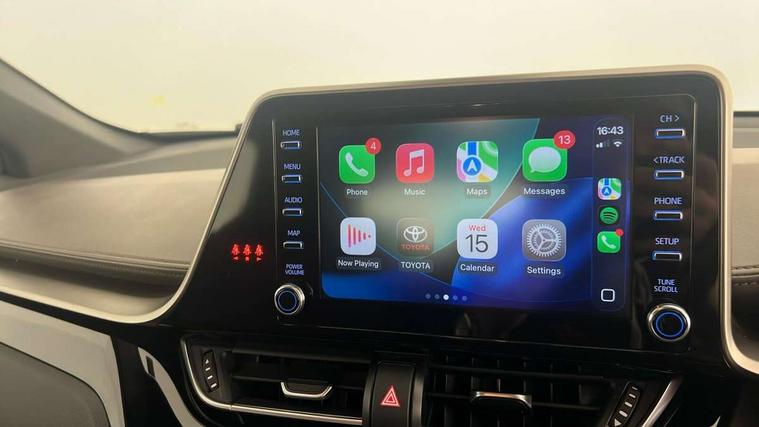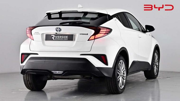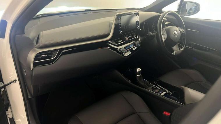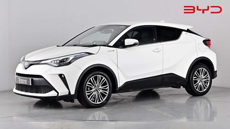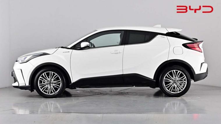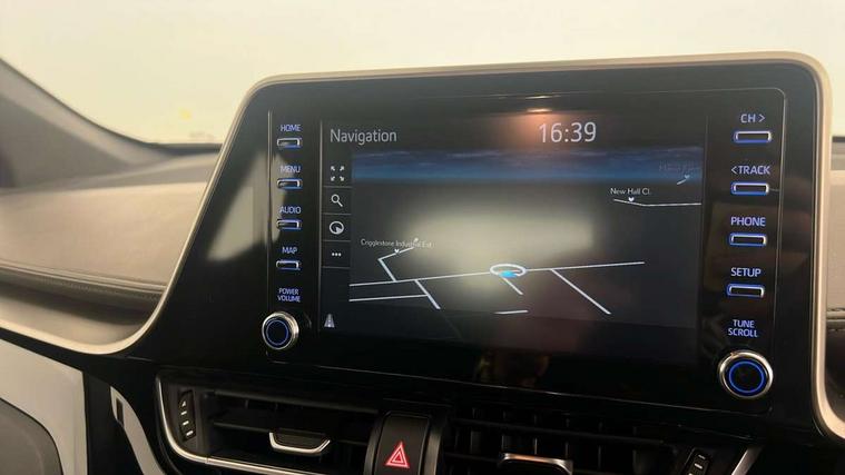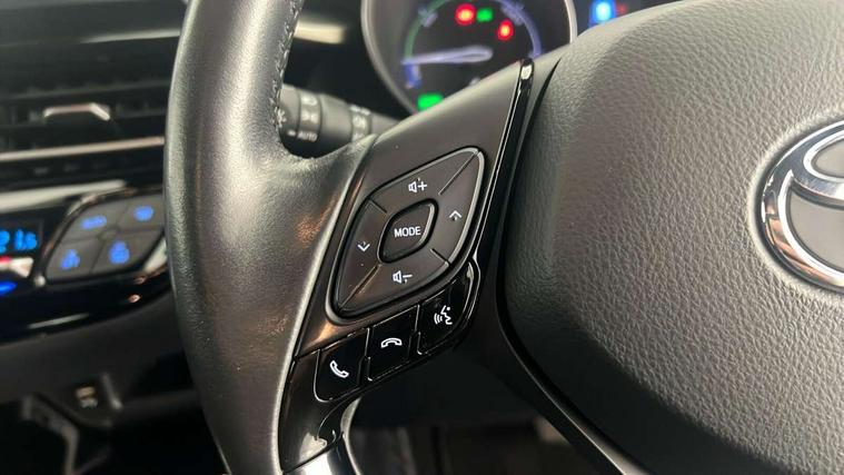4.2" coloured TFT screen for multi-information display, Adaptive cruise control, Bluetooth connectivity, Electric power steering, Hybrid system indicator, Lane departure alert with steering control, Remote boot door release in cabin, Remote boot door release in key, Reversing camera, Road sign assist - RSA, Simple Intelligent parking assist, Touch 2 Go navigation system, Trip computer, Voice recognition, Vehicle Stability Control (VSC), 6 speakers, AM/FM radio, DAB Radio (Digital Audio Broadcasting), Toyota touch 2 multimedia system with 8" display, USB connector, Wi-fi connectivity, Adaptive front light system, Adaptive LED Headlights, Anti-jam protection on power windows, Auto high beam, Auto up and down function on all power windows, Automatic headlight levelling, Automatic headlights, Automatic headlights cut-off, Black and body coloured rear bumper, Black upper front grille, Body colour door handles, Body colour door mirrors, Body colour front spoiler lip, Body coloured front bumper, Boot door release with push button, Electric heated door mirrors, Follow me home headlights, Front and rear power windows, Honeycomb lower front grille, LED daytime running lights, LED fog lights, LED front light guide, LED High mounted stop light, LED rear brake lights, LED rear combination lights, Noise reduction layer on front windows and windscreen, Power adjustable door mirrors, Privacy glass, Rear sequential indicators, Rear spoiler, Rear tailgate, Rear window defogger, Rear window wiper, Shark fin antenna, UV-filter on driver and passenger windows, UV-filter on rear windows, 12v power outlet - front, 3 rear headrests, 3 spoke leather steering wheel, 60/40 split folding rear seat, Adjustable rear headrests, Adjustable speed limiter switch on steering wheel, Assist grips front and centre pillar, Audio and telephone switches on steering wheel, Black front door assist grips, Blue ambient lighting on front cup holders, Blue ambient lighting on front doors, Boot light, Chrome interior door handles, Driver and front passenger personal light, Driver and front passenger Whiplash Injury Lessening seats, Driver and passenger seatback pockets, Dual zone automatic air conditioning, Floor mats, Front cupholders, Front head restraints, Front sports seats, Glovebox with internal light, Hard tonneau cover, Heated driver and front passenger seats, Heated steering wheel, Hooks for luggage holding net, Humidifying Nanoe air purifier, Illuminated entry system, Isofix attachments on outer rear seats, Leather gearshift, Light on driver sun visor, Light on passenger sun visor, Manual telescopic steering wheel, Manual tilt steering wheel, Microphone on front personal light, Mirror on driver sun visor, Mirror on passenger sun visor, Multimedia switches on steering wheel, Pollen filter, Power adjustable lumbar support on driver seat, Power tilting cushion on driver seat, Shopping bag hooks, Slow opening on lower glovebox, Voice recognition switch on steering wheel, Leather pack - C-HR, Tech with parking sensor pack - C-HR, 16 Disk front wheel brake, 3x3 point rear seatbelts, ABS+EBD+Brake assist, Electronic parking brake, Front and rear seatbelt reminder, Front passenger airbag on/off switch, Hill start assist control (HAC), Pre collision system with pedestrian detection, Pre-tensioners and force limiters, Rear door child safety locks, SRS Airbags - Driver + Front passenger, front side, front and rear curtain and driver's knee airbags, Toyota safety sense, Tyre pressure monitoring system, Acoustic vehicle alert system (AVAS), Glass-breaking alarm sensors, Immobiliser, Intrusion alarm, Intrusion sensor, Motion sensor alarm, Power door locks, Power passenger window lock, Remote central locking, Black lower dashboard, Dark brown upper dashboard, Piano black console, Silver deco line on upper dashboard, Tyre repair kit,