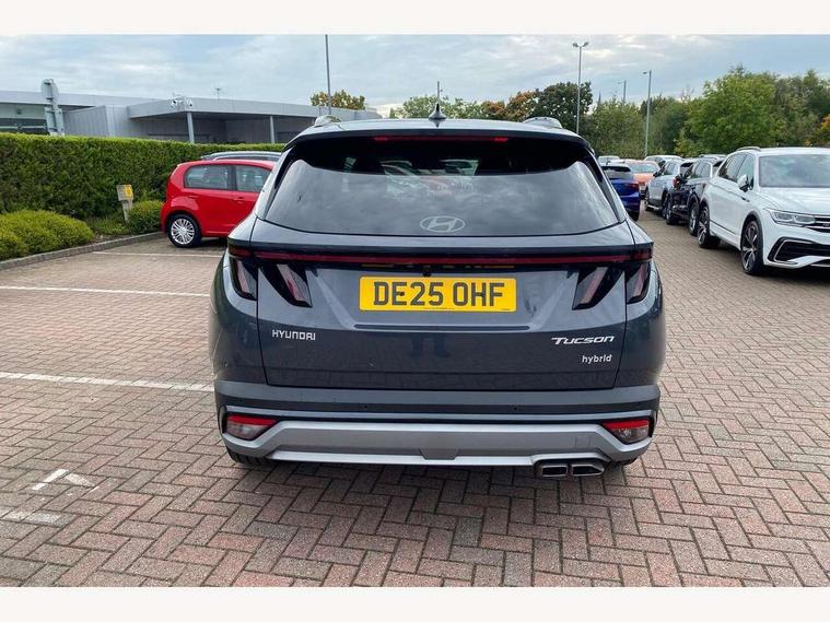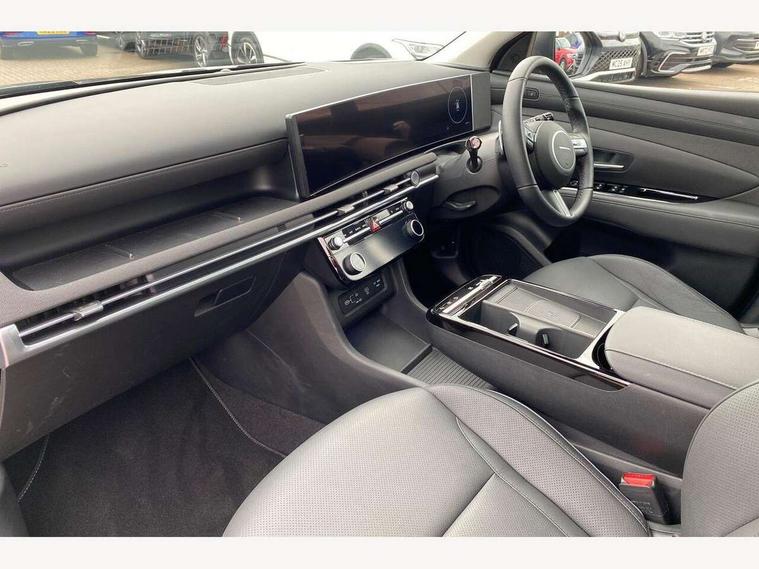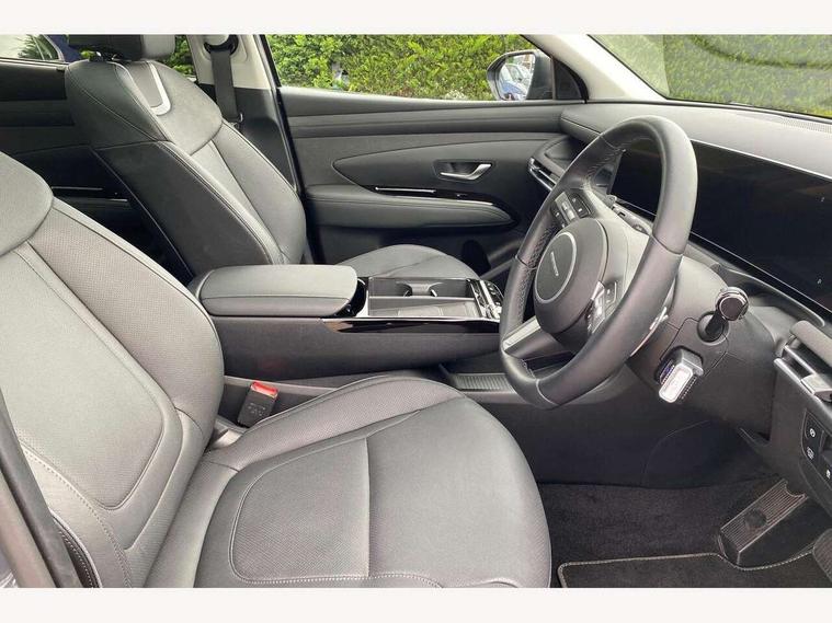 12.3" LCD display with driver's supervision instrument cluster, 12.3" widescreen navigation with bluelink and mapcare, Blind spot view monitor, Bluetooth system, Cruise control - smart adaptive speed control with stop and go function, Digital clock, Drive mode selector, Driver attention warning, E-call, Emergency stop signalling system, Forward Collision Avoidance Assist (FCA) - Car, Pedestrian and Cycle, Forward Collision Avoidance Assist Junction Turning (FCAJX), Front and rear parking sensors, Front, rear and side parking distance warning, Highway Driving Assist (HDA), Hyundai road side assistance, Intelligent speed limit assist, Lane follow assist, Lane keep assist, Over the air updates(OTA), Parking collision avoidance assist (PCA), PAS, Rear camera and guidance parking system, Rev counter, Smart power tailgate, Surround view monitor, Tailgate open warning light, Trip computer, Trip odometer, Voice recognition, Water temperature gauge, Windscreen washer fluid sensor and warning indicator, Wireless Apple CarPlay/Android Auto, Wireless phone charging pad, 2 front and 2 rear USB-C ports, DAB Digital radio, Krell premium audio system with 8 speakers and subwoofer, Steering wheel mounted audio/phone controls, Adjustable intermittent front windscreen wipers with aero wiper blade, Auto dimming rear view mirror, Automatic defog system, Automatic headlights with dusk sensor, Automatic windscreen wipers with rain sensor, Black wheel arches, Body colour bumpers, Body colour door mirrors with integrated indicators, Body colour exterior door handles, Electric tilt/slide panoramic sunroof, Electrically adjustable, heated and power folding door mirrors, Follow me home headlights, Front and rear electric windows with anti-trap mechanism and one touch control, Front fog lights, LED 3rd brake light, LED daytime running lights, LED rear lights, Matrix LED headlights, Positioning Lights - LED, Privacy glass - Rear windows and tailgate, Rear side wing doors, Rear wash/wipe with intermittent wipe setting, Roof rails, Tinted glass with windscreen shade band, Trailer stability assist, 12V power outlets in front console and luggage compartment, 3 seat bench in 2nd row, 40/20/40 split folding rear seat, 64 colours interior ambient lighting, Adjustable head restraints (Up and down), Cupholders in rear armrest, Door courtesy lights, Driver and passenger sunvisors with illuminated LED vanity mirrors, Driver's seat electric adjustments, Driver's seat memory, Front and rear door pockets, Front armrest with storage box, Front centre console and door bottle holders, Front passenger's seat electric adjustments, Heated front seats, Heated rear seats, Heated steering wheel, Height/reach adjustable steering column, Illuminated/air conditioned glove compartment, ISOFIX child seat anchorage points attached on outer rear seats, Leather upholstery, Leather wrapped steering wheel and gear knob, Luggage compartment lighting, Luggage cover, Luggage hooks, Luggage net, Map and reading lights, Rear seat remote folding function, Rear side window sunblind, Reclining rear seats, Retractable load cover, Single front passenger seat, Sunglasses holder, Three zone climate control, Touch sensitive climate controls with temperature dials, TUCSON branded metal door scuff plate, Underfloor boot compartment, Ventilated front seats, Trailer wiring package - Tucson, 3x3 point rear seatbelts, Active bonnet, Airbag - Front, front side, curtain and centre front airbags, Anti-lock brake system (ABS), Brake assist function, Childproof rear door locks, Curtain airbag roll over sensor, Downhill brake control, Electric parking brake, Electronic stability control, Front and rear seatbelt reminder, Front passenger airbag deactivation switch, Front seatbelt pretensioners, Hill start assist control (HAC), Multi-Collision braking, Outer rear seatbelt height adjustment, Seatbelt height adjustment for front seats, Traction control, Tyre pressure monitoring system with individual tyre pressure display - TPMS, Vehicle stability management, Deadlocks, Immobiliser, Locking wheel nuts, Remote control central locking, Smart key with keyless entry and engine start/stop button, Speed sensitive auto door locking, Thatcham category 1 alarm, 19" Alloy wheels, Tyre repair kit,