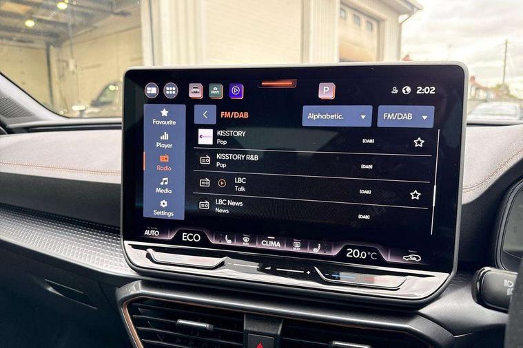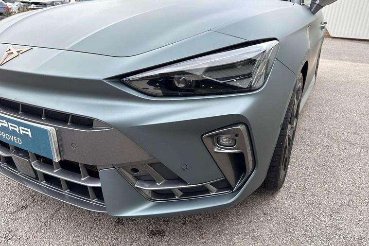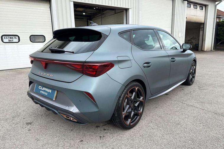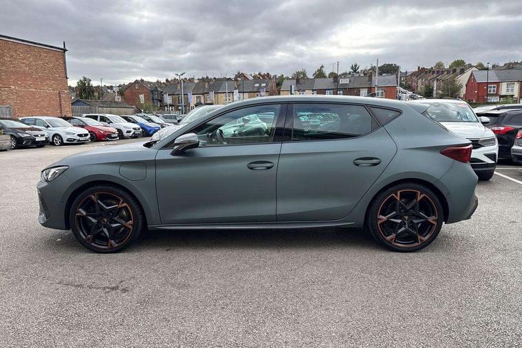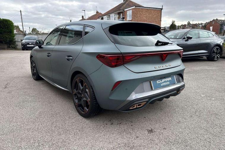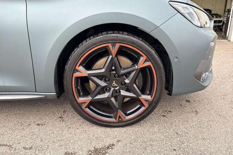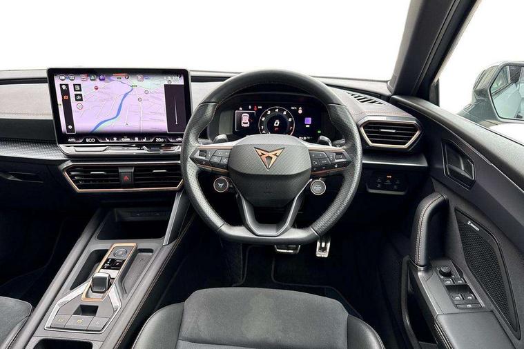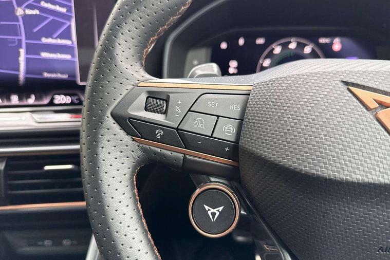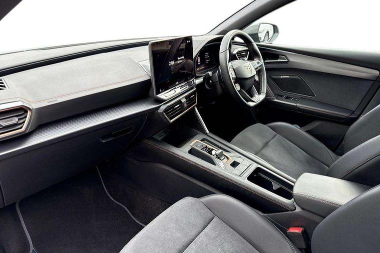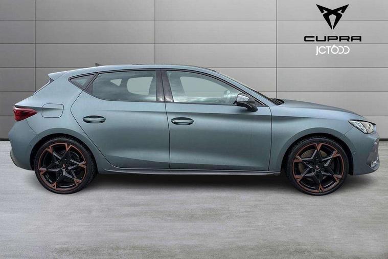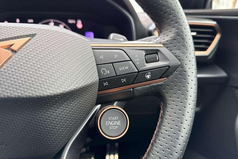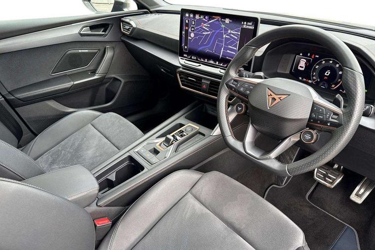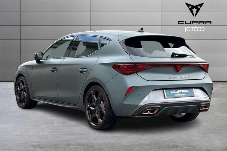 CUPRA drive profile selection with 4 modes (Comfort/Cupra/Sport/Individual), throttle response and gearshift mode, Digital cockpit, E-call, Four x USB Type C ports (2 in front and 2 in rear), Front assist with forward collision warning braking reaction to vehicles, pedestrians and cyclists, Full link smartphone integration with Mirror Link, wireless Apple CarPlay and wired Google Android Auto, Lane assist, Lockable tailgate, Park assist (inc front/rear parking sensors), Rear view camera, RPM, trip computer, outside temp gauge, instrument light brightness, low fuel warning light, lights on reminder, gearshift indicator, Service interval indicator, Start/stop system with regenerative braking, Wireless phone charger, 10 amp mode 2 charging cable, 16 amp mode 3 charging cable, 3.6 kw On-board charger, Standard suspension, XDS electronic differential lock and dynamic traction support, Auxiliary input socket, Auto dimming rear view mirror, Body colour door handles, Body coloured bumpers, Cupra sports bumpers, Dark tinted rear windows, Electric front/rear windows, Electrically adjustable, heated and folding door mirrors, LED front fog lamps with cornering function, LED rear fog lamp, Matrix LED Headlights with variable light distribution, Matrix Beam and Dynamic headlight range control, Panoramic sunroof, Rain sensing wipers, Rear coast to coast lighting, Rear diffuser with twin exhaust pipe on each side with simulated exhausts, Rear side wing doors, Rear wash/wipe, Separate daytime running light with automatic headlight control and coming home feature, Third brake light, 12v power supply in centre console, 3 seat bench in 2nd row, 5 headrests, 60/40 split rear bench seat with armrest, Ambient lighting (glovebox, footwell, ambient lighting multicoloured), Black headlining, Cupra sports pedals, CUPRA Supersports, heated steering wheel with satellite buttons, Dust/pollen filter, Folding boot cover, Front and rear reading lights X 4, Front centre armrest, Heated front seats, Height/reach adjust steering wheel, Illuminated interior front door sills, Interior wraparound lighting, ISOFIX points in outer rear seats with top tether anchorage points, Luggage tie-down hooks, Nappa leather upholstery, Powered driver seat with memory and manual height adjustment for passenger, Powered lumbar adjustment on driver side, manual on passenger side, Single front passenger seat, Sports bucket seats, Storage pockets on rear of front seats, Sunvisors with illuminated mirror, Three zone climate control, Design pack - Cupra Leon, Dynamic and comfort pack - Leon Cupra, Media system plus with navigation pack - Leon Cupra, Safety and driving pack (XL) - Cupra leon, 3 point seatbelts on all rear seats, ABS, Brake control system - ESC and brake booster, Child proof door locks, Driver and front passenger airbags with front passenger airbag de-activation, front side and curtain airbags, Electronic parking brake, Extended safety system - seat belt tensioner, window closure and hazard lights, Hill hold control, Rear disc brakes, Seat belt reminder for front and rear seats, Tiredness recognition system, Tyre pressure monitoring system, Anti theft alarm system with interior monitoring in cab, backup horn and towing protection, KESSY Advanced - Keyless start, keyless entry, Locking wheel bolts, Chrome and copper interior detailing, Copper stitching on dashboard trim, 19" Performance satin black and copper alloy wheels with 91Y tyres, Breakdown kit, Tool kit,