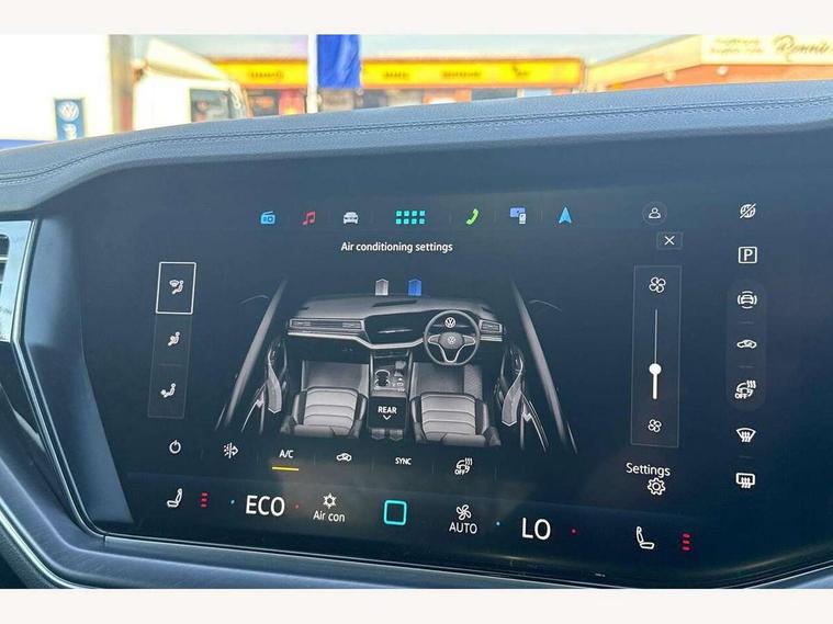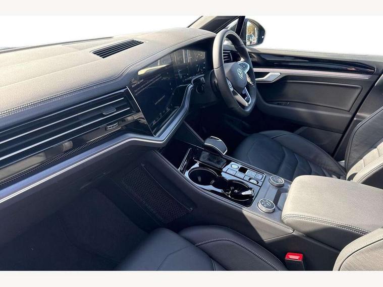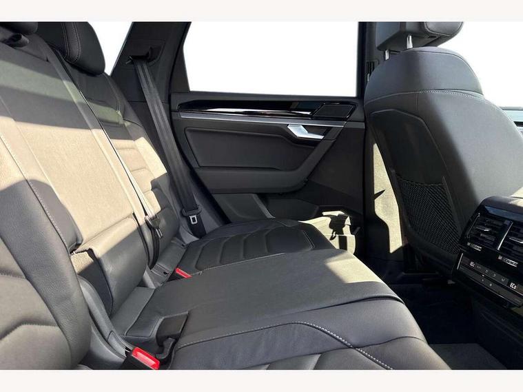 15" Screen Top infotainment system Premium (MIB3), Adaptive cruise control, Advanced driver attention and drowsiness monitor, Driver profile selection, Dynamic road sign display, E-Sim card for online connectivity, eCall emergency system, Innovision cockpit, Intelligent park assist, Mobile phone interface with inductive charging, Multi-colour Active Info display, Park Assist - Sensor controlled steering aid to assist parallel or bay parking, PAS, Warning signal and warning light for front and rear seatbelts not fastened, Wireless app connect, Adaptive chassis control, DAB Digital radio, Diversity antenna for AM/ FM reception, We Connect and We Connect Plus functionality, Automatic coming/leaving home lighting function, Automatic headlights, Black door mirrors, Black style comfort bumpers, Dynamic headlight range control with dynamic cornering light, Electric front tilt/slide panoramic sunroof and fixed rear sunroof, Electrically power adjustable, heated, folding, auto dimming, front passenger exterior door mirror lowering function, External USB type C socket and charging sockets, Gloss black roof rails, HD LED Matrix beam plus digital headlight projection with variable light distribution, Headlight washers, Highway light, LED 3rd brake light, LED daytime running lights, LED rear combination lamp with variable lighting functions and special styling, Poor weather light, Rain sensor, Rear exhaust tailpipe, Rear fog light with back up light on both sides, Rear light bar and illuminated logo, Rear side wing doors, Rear wiper, Stainless steel door sill protection, 12V socket in centre console, 3 rear headrests, 3 seat bench in 2nd row, 4 zone climate control, Airbag label on sun visor and B-pillar, Brushed stainless steel pedals, Double sun visors with illuminated vanity mirrors, Front + rear carpet mats, Front centre armrest, Leather wrapped multifunction sports steering wheel, heated, with touch control and shift paddles, Mechanical rear seat release, Power adjustable lumbar support in front, Power seats in front, right side with memory features and seat cushion depth adjustment, Rear seat backrest and split folding with center armrest, Single front passenger seat, Memory pack plus - Touareg, 3 point seatbelts, outer rear with ECE lable, ABS, Child locks on rear doors, Curtain airbags, Driver and front passenger safety-optimised head restraints, Driver/Front Passenger airbags, Extended pedestrian protection measures, Front assist, Front seat side impact airbags, Generative braking with start and stop system, Height adjustable 3 point front seatbelts with pre tensioners, Passenger airbag deactivate switch, Three 3 point rear seatbelts, Two tone horn, Warning triangle and first aid kit, Alarm system with interior protection, Easy open and close sensor controlled luggage compartment opening and closing with remote unlocking, Keyless Access Keyless locking and starting system with SAFELOCK, Aluminium decorative inserts, Black decorative trims, Gloss black decorative inserts in centre console, Tool kit,