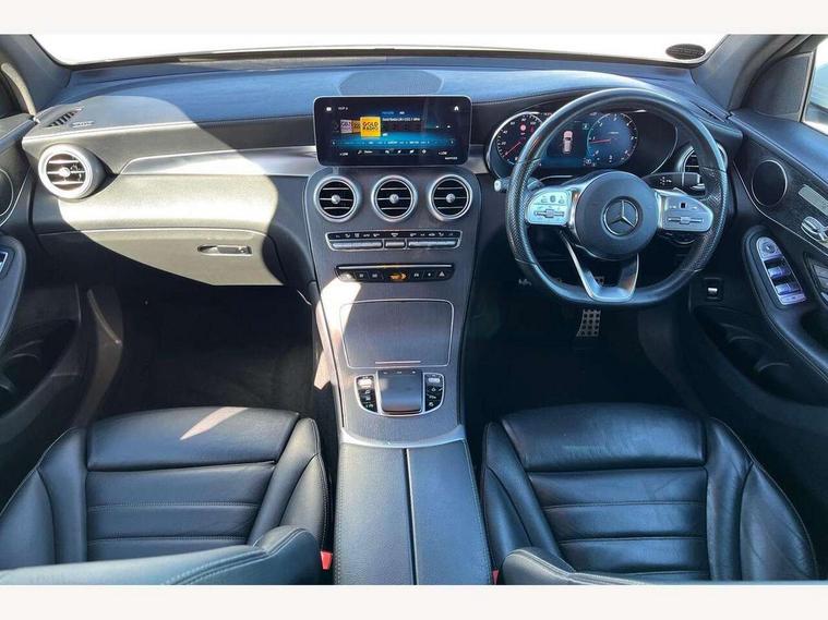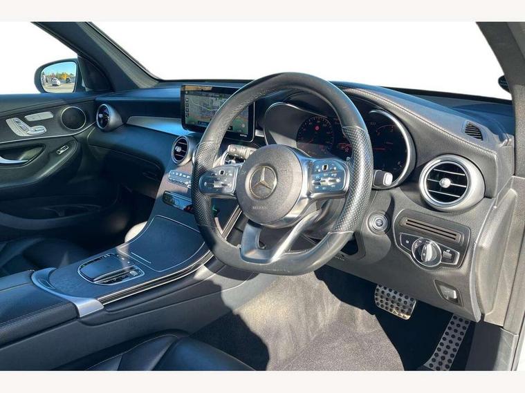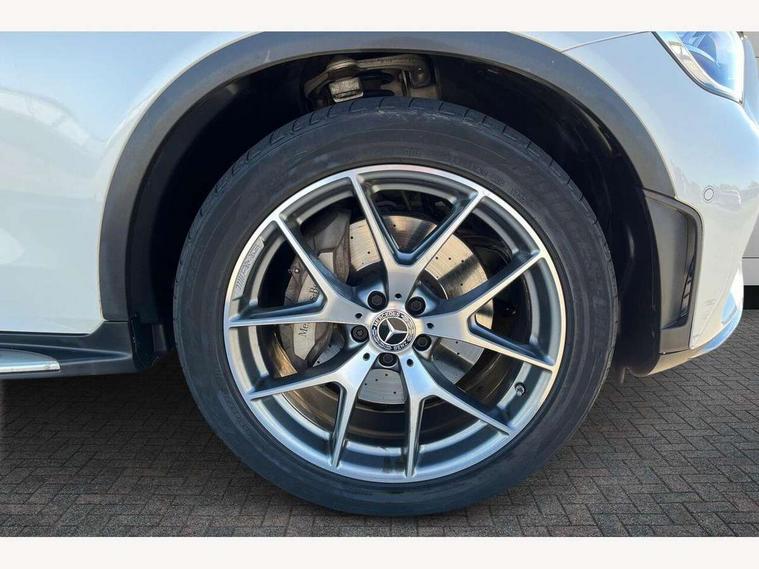 360 degree camera, Active parking assist with parktronic system, Attention assist, Bluetooth interface for hands free telephone, Collision prevention assist plus, DYNAMIC SELECT with a choice of driving modes (ECO, Comfort, Sport, Sport+ and Individual), Easy pack automatic powered tailgate, eCall emergency call system, ECO start/stop function, Hard disk navigation, Hey Mercedes Voice activation, Instrument cluster with12.3-inch digital instrument cluster display. High resolution instrument cluster screen with choice of three display styles, MBUX Interior assistant, Mercedes connect me with remote online services, Multi function trip computer, Outside temperature display, rear seatbelt status indicator, Remote boot release, Service indicator (ASSYST), Smartphone integration with Apple CarPlay and Android auto, Traffic sign assist, 4MATIC permanent four wheel drive, 66 litre fuel tank, 9G TRONIC plus automatic transmission with steering column gear selector, DIRECT SELECT steering wheel gearshift paddles, Diesel particulate filter, Sports suspension tuned for improved handling and driving dynamics, 5 speakers, Frontbass loudspeakers, MBUX multimedia system with DAB digital radio and touchpad, Media display 10.25-inch touchscreen display, Pre installation for Mercedes Benz Link, USB ports x 2 in centre console, Adaptive brake lights, Aluminium roof rails, AMG bodystyling - AMG front apron with sporty air intakes and chrome trim element, AMG diffuser-look rear apron with insert in black, Body colour door mirrors, Body coloured bumpers, Electric panoramic glass sunroof, Electric windows one touch open/close, Electrically adjustable and heated door mirrors, Front, side and rear exterior chrome trim, Headlamp assist automatic headlamp activation, High level LED brake light, LED high performance headlamps with integrated LED daytime running lights, LED tail lamp, Motor way mode function and locator lighting, Privacy glass with dark glass from B pillar backwards, Radiator diamond grille, Rain sensor windscreen wipers, Range adjustable headlights, Rear side wing doors, Rear wiper, Roof spoiler, Running boards, Tinted glass all round with single layer safety glass, Tinted rear windows, Two chrome plated tailpipe trim elements, Variable front intermittent wipers, 2 way rear head restraints, 3-spoke multifunction sport AMG steering wheel in black nappa leather with flattened bottom section, chrome insert and perforated leather in grip area, 40:20:40 split folding rear seats, Ambient lighting, AMG floor mats with edging and embroidered AMG lettering, AMG sports seats, Artico man-made leather upper dashboard with contrast topstitching, Automatic child seat recognition sensor, Black roof lining, Dividing net - rear, Double cup holder in centre console, Easy-pack removable load compartment cover, Front armrest with storage box, Front door sills with Mercedes Benz lettering, Front head restraints, Front passenger seat, Heated front seats, Illuminated and lockable glove compartment, Leather upholstery, Rear top tether child seat ISOFIX attachment, Sports pedals with stainless steel surfaces and rubber studs, Steering wheel with touch control buttons, THERMOTRONIC 3 zone automatic climate control, Interior lighting pack - GLC, Memory pack - GLC, Mirror pack - GLC, Storage pack - GLC, 3 rear 3 point seatbelts, Active bonnet, Adaptive brake system with HOLD function and brake drying in the wet, ASR, Black seat belts, Brake calipers with Mercedes-Benz lettering + perforated brake discs, Child proof door locks, Dual-stage airbags - driver and front passenger, driver knee bag and window bags for driver, front passenger and rear passengers, Electronic parking brake, Electronic stability programme (ESP) with curve dynamic assist and cross wind assist, Front and rear seatbelt reminder, Front passenger seat occupancy sensor, Hill hold function, Tyre pressure monitoring system, Warning triangle and first aid kit, Alarm system/interior protection/immobiliser, Automatic door locking, Keyless Go entry and starting function, Remote central locking, Anthracite open pore oak wood trim, 20" AMG 5 twin spoke alloy wheels painted in titanium grey with high sheen finish, Run flat tyres, Summer tyres,