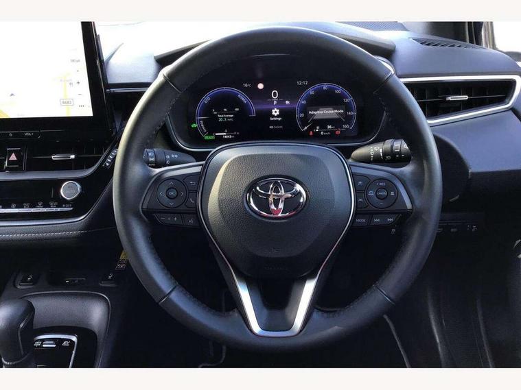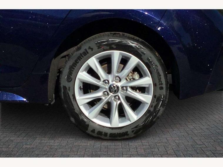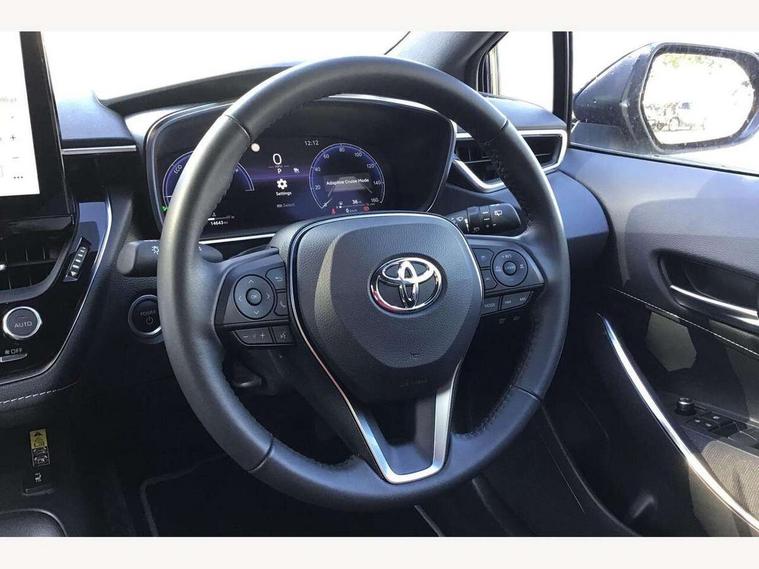10.5" Multimedia display screen, Bluetooth telephone connectivity, Connected car functionality upgrade, tracker, remote status and e-care, Drive mode select (Eco, Normal), E-call, Electrically assisted power steering, EV drive indicator, Front and rear parking sensors with auto brake, Full Digital 12.3" TFT Digital Combimeter, Key reminder warning, Lane Departure Alert (LDA) switch on steering wheel, Memory on adjustable speed limiter, MyT connected services, Proactive driving assist (PDA), Reversing camera, Smart entry and push button start, Smartphone integration with Apple CarPlay and wired android auto, Tailgate, Toyota remote services, Toyota smart connect navigation, Wireless charger, Gasoline particulate filter, Vehicle Stability Control (VSC), 6 speakers, AM/FM radio, DAB Digital radio, Front USB-C in dashboard, Smart voice assist/ Voice recognition, USB and Aux in connectors + 12V front outlet, Anti-jam protection on power windows, Auto up and down function on all power windows, Automatic headlights with high beam assist, Black centre and side air vents, Black meshed front grille, Black toyota logo in front, Body coloured bumpers, Body coloured door mirrors, Body coloured front spoiler, Body coloured outside door handles, Body coloured rear under guard, COROLLA alloy door scuff plates, Follow me home headlights, LED daytime running lights, LED front fog lights, LED High mounted stop light, LED multi beam headlights, LED multi reflector in headlights, LED rear combi lights with LED lightguide, Manual day/night rear view mirror, Manual headlight levelling system, New grille pattern, Noise reduction layer on windscreen, Piano black diffuser, Power adjustable heated door mirrors, Power front windows, Power rear windows, Rain sensor, Rear side wing doors, Rear window defogger, Rear window wiper, Satin chrome insert on front air vents, Satin chrome insert on front door assist grips, Shark fin antenna, Time adjustment on intermittent wiper, Turning signal integrated indicators in door mirrors, Unique lower skirt, Unique side rocker with black insert, UV-filter on driver and passenger windows, 2 Shopping bag hooks in luggage compartment, 3 rear headrests, 3 seat bench in 2nd row, 3 spoke leather steering wheel with satin insert + gear knob, 4 tie down hooks in luggage compartment, 60/40 split folding rear seat, Adaptive cruise control (ACC) switch on steering wheel, Adjustable speed limiter switch on steering wheel, Audio, multimedia and telephone switches on steering wheel, Black armrest on centre console box, Black gear shift console, Boot light, Centre room light, Driver and front passenger personal light, Driver and passenger assist grip, Driver and passenger sun visor with mirror and light, Dual zone automatic air conditioning with ECO mode switch, Fabric upholstery, Front and rear cup and bottle holders, Front door pockets, Front head restraints, Front passenger seat, Front sliding fabric armrest, Heated seats, Illuminated entry system in room lamp, ISOFIX seat fixing (2 fixings on rear outer seats), Leather gear shift with satin chrome on gear shift console, Manual height adjustable for driver and front passenger seat, Manually tilt with sliding driver and front passenger seat, Parcel shelf, Passenger seat back pocket, Pollen filter, Power adjustable lumbar support on driver seat, Power window switches with satin chrome inserts, Rear armrest with 2 cupholders, Rear passenger coat hooks (2), Remote air conditioning, Satin chrome inside door handles, Satin chrome surround on heater control panel, Satin chrome surround on speedometer, Sliding armrest on centre console box, Slow opening glovebox with lights, Textile floor mats, Tilt/telescopic steering column, Voice recognition switch on steering wheel, Whiplash Injury Lessening (WIL) feature (active headrest) for seats, Toyota safety sense 3 pack - Corolla, 3x3 point rear seatbelts, Adjustable driver and front passenger seat belt extender to top anchor point, Anti lock braking system + Electronic brake force distribution, Brake assist function, Child locks on rear doors, Downhill Assist Control (DAC), Electronic parking brake, Emergency brake light signal (EBS), Front passenger airbag on/off switch, Front seatbelt reminder, HAC - Hill start assist control, Rear seat belt reminder, Seatbelt pretensioners and force limiters, Supplemental restraint system (SRS) 7 airbags - dual driver, dual side curtain, side impact and driver knee airbags, Traction control, Tyre pressure warning system, Acoustic vehicle alert system (AVAS), Alarm with motion sensor and immobilizer, Power passenger window lock, Remote central locking + deadlocks, Satin chrome dash trim, Soft touch texture on upper dashboard, Stitching on lower dashboard, 16" 5 double spoke alloy wheels, Tyre repair kit, Unique wheel finish with red wheel cap,
