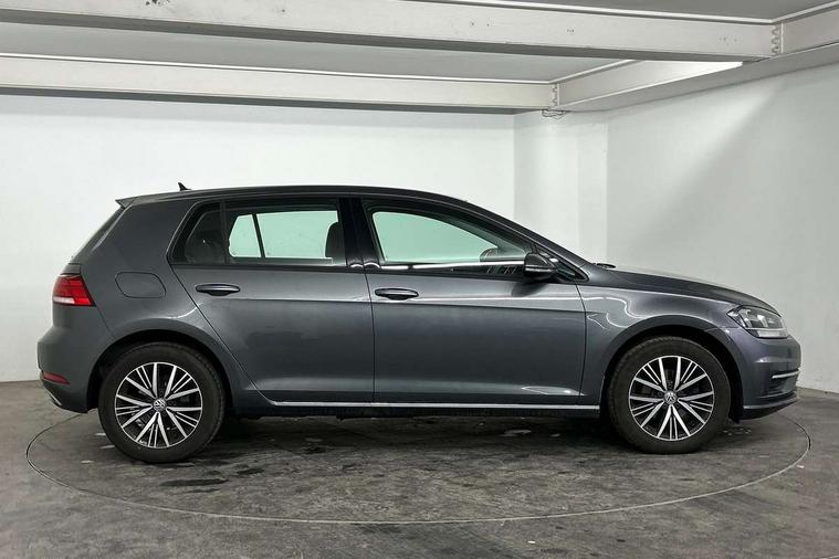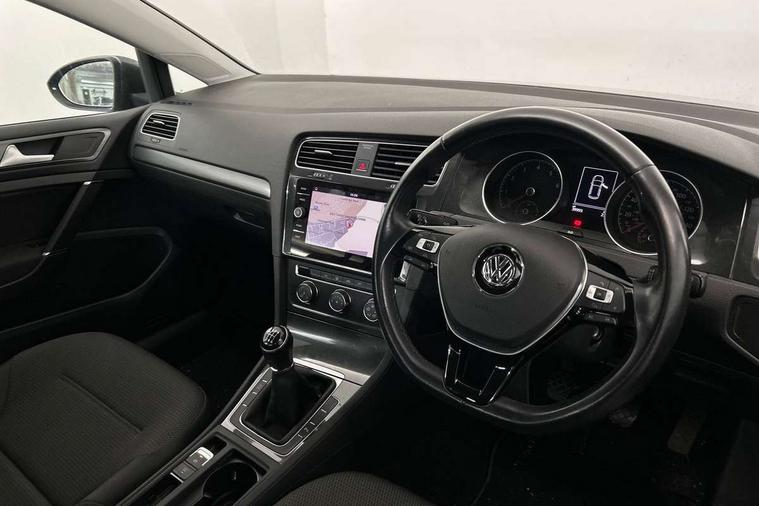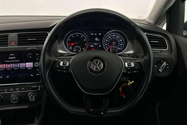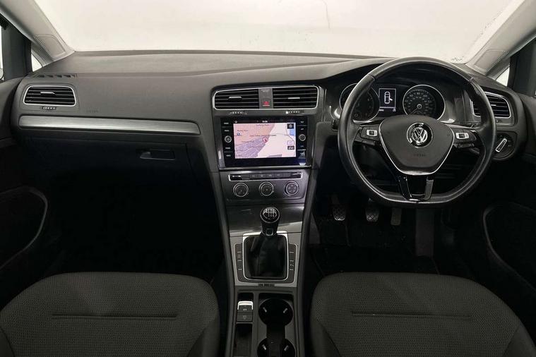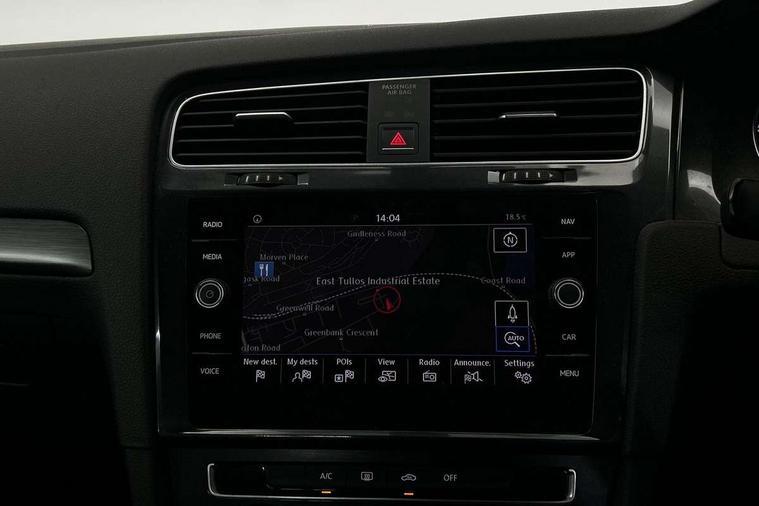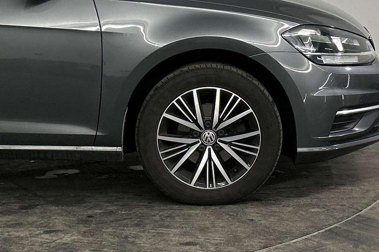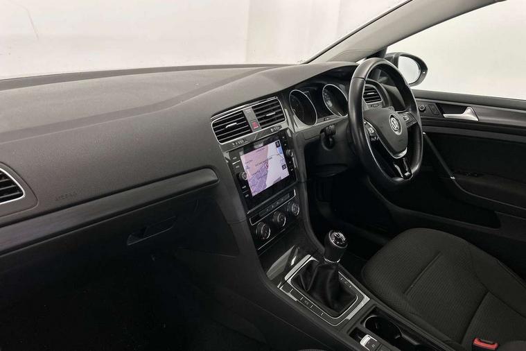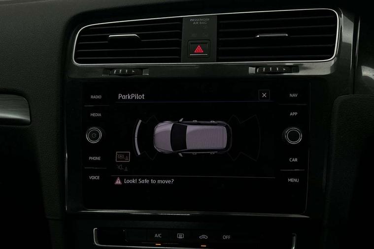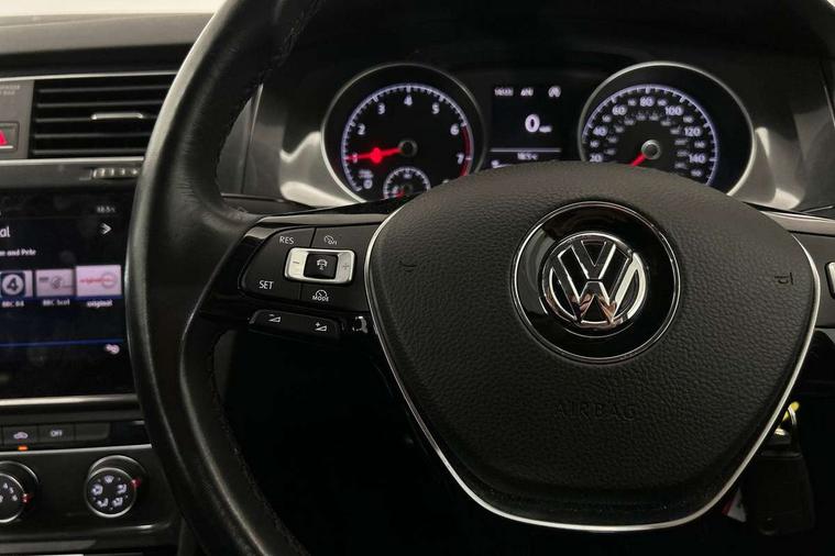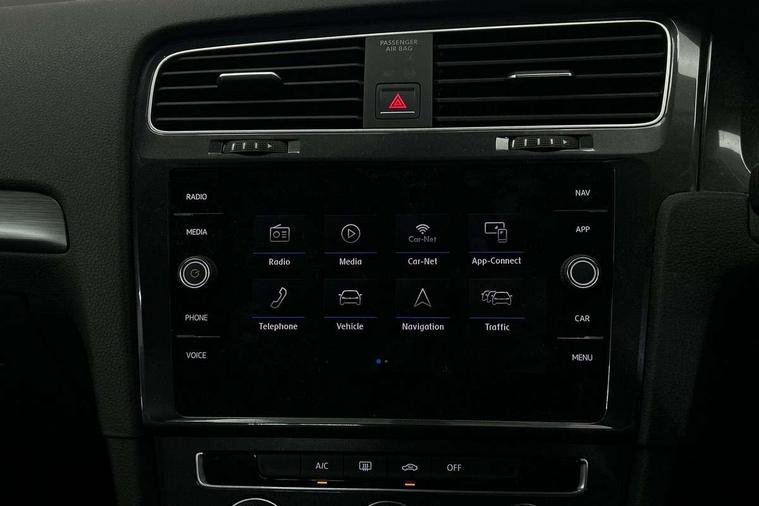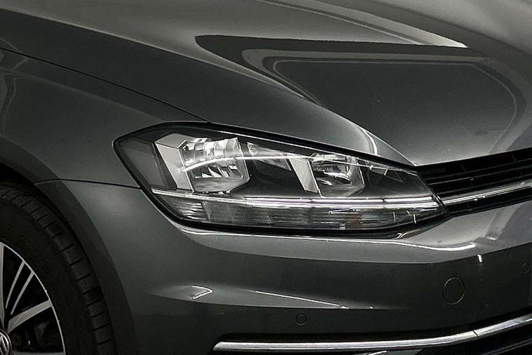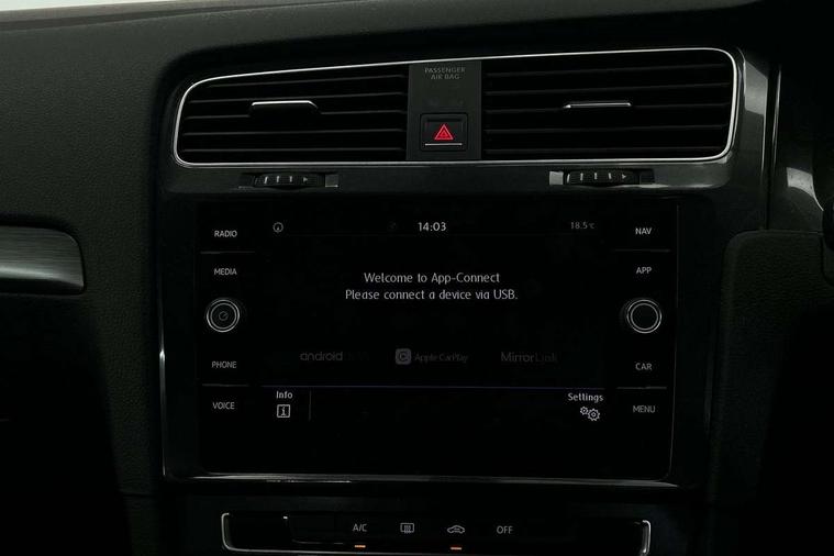'Lights On' Reminder warning buzzer, 8" touch screen, Adaptive Cruise Control with pedestrian detection and speed limiter, App-Connect, Bluetooth hands free telephone connection, Brake pad wear indicator warning light, Driver alert system, Driver profile selection, Exterior temperature gauge, Front assistant collision mitigation, Instrument cluster in white, Multifunction computer, PAS - speed related, Rev counter, Trip and service interval display, Ultrasonic front and rear optical and audible parking sensors, Warning buzzer and light for front seatbelts unfastened, XDS electronic differential lock, CD/MP3/WMA, USB and SD card reader, aux-in, Composition media system, DAB Digital radio, Auto dimming rear view mirror, Automatic coming/leaving home lighting function, Automatic headlights, Black front air intake and radiator grille with chrome insert, Black rear diffuser, Body colour bumpers, Body colour door handles, Body colour door mirrors, Electric front windows, Electric rear windows, Electrically adjustable and heated door mirrors, Heated rear windscreen, LED daytime running lights, LED rear lights, Rain sensor, Rear roof spoiler, Rear windscreen washer and wiper with interval delay, 12V socket in luggage compartment, 3 rear headrests, 3 spoke steering wheel, 60/40 split folding rear seat, Bag hook in luggage compartment, Boot lashing points, Cooled glovebox, Courtesy light delay, Cover for storage compartment in centre, Dust/pollen filter, Front and rear reading lights, Front centre armrest with storage box and rear air vents, Front passenger seat height adjust, Front seat back storage pockets, Grab handles, Height adjustable driver's seat, Height/reach adjust steering wheel, Illuminated vanity mirrors, Isofix preparation for 2 rear child seats, Load through provision with rear centre armrest and cupholders x2, Luggage compartment cover, Luggage compartment lighting, Multifunction leather steering wheel with leather gear knob/handbrake grip, Overhead storage box, Pearl grey headlining, Storage box in luggage compartment, Storage compartments in doors, Sun visors, Variable boot floor, height adjustable and removable, Mirror pack - Golf, 3 point height adj front seatbelts + pretensioners, 3 rear 3 point seatbelts, ABS, Automatic post collision braking, Child locks on rear doors, Driver/Front Passenger airbags, Driver/Passenger whiplash optimised head restraints, Drivers knee airbag, Electronic parking brake with auto hold, ESP with EDL + ASR, Front and rear curtain airbags, Front passenger airbag deactivation, Front side airbags, Pre crash system, Tyre pressure monitor, Alarm with interior protection, Electronic engine immobiliser, Remote central locking with 2 remote folding keys, Brushed dark metal decorative inserts in dash and front door panels, Chrome-plated light switch surround, Polar night black centre console, Steel space saver spare wheel,