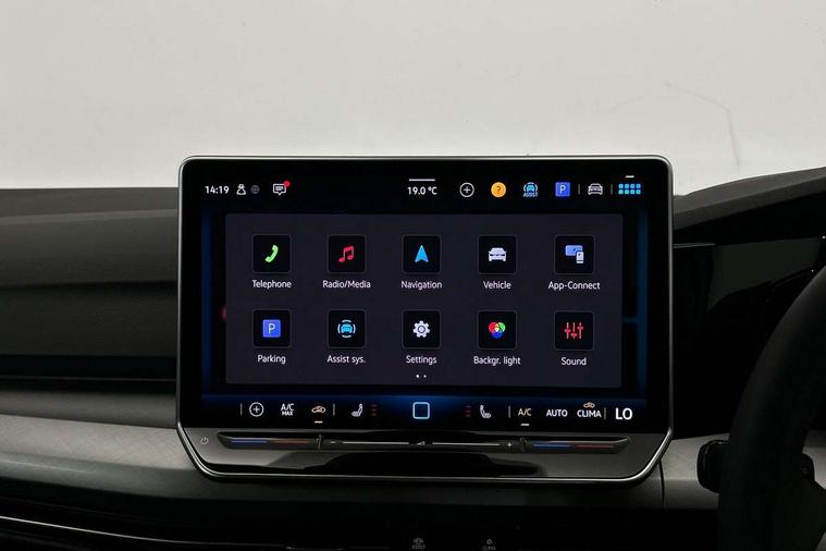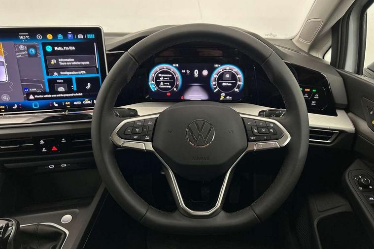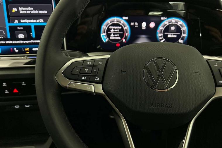 Activated carbon canister, Adaptive cruise control (ACC) with speed limiter and front assist (reacting to vehicles pedestrians and cyclists), Advanced driver attention and drowsiness monitor, Driver alert system, Dynamic road sign display, E-Sim card for online connectivity, eCall emergency call system, Multi-color Digital cockpit pro, selection of different info profile possible, Multifunction camera for distance control, Navigation system, Oncoming vehicle braking when turning including swerve support, Power assisted speed sensitive steering, Preparation for light assist system, Speedo, rev counter, electronic odometer, trip, service interval display, exterior temperature and fuel gauge, Voice assistant and voice enhancer with chat GPT, Warning signal and warning light for front and rear seatbelts not fastened, We connect plus preparation, We connect preparation, Wireless app connect, Petrol Particulate Filter, Start-stop system with battery regeneration (recuperation - energy recovery during braking), XDS electronic differential lock for improved traction and handling, 2 USB C ports in front, 2 USB charging sockets on the centre console in the rear charging capacity upto 45W, Comfort telephony + wireless charging, without wireless aerial connection, Digital radio reception (DAB), Diversity antenna for FM reception, Gaming platform via car app, Infotainment system with 12.9" display, 3rd brake light, Auto headlights, Automatic headlamp activation with Coming home and Leaving home feature, Body colour door handles, Body colour door mirrors, Chrome plated radiator grille inserts and light switch surrounds, Dynamic headlight range control, Exterior mirrors convex on the left and aspherical on the right, Front and rear electric windows, Heat insulating windshield made of laminated glass, LED daytime running lights, LED rear combination lights, Rear exhaust tailpipe, Rear fog light on one side and reversing lights on both sides, Rear side wing doors, Rear tinted glass 65% light absorbing from B pillar backwards, Rear windscreen washer and wiper with interval delay, Remote electrically foldable door mirrors, puddle lights and reverse activated passenger's door mirror, Standard bumpers, Welcome light with surround lighting, 12V socket in front centre console, 12V socket in luggage compartment, 3 rear head restraints, 3 seat bench in 2nd row, Front centre armrest, Front head restraints, Front passenger seat, ISOFIX anchors for child seats on outer rear bench seats and on front passanger seat compatible for i-Size, Leather gearshift handle, Luggage compartment lighting, Rear cupholder and loadthough, Soul black instrument panel, Split folding backrest with centre armrest and unsplit rear seat bench, Standard pedal cluster, Storm grey roof lining, Sun visors with illuminated vanity mirrors, 3 point height adj front seatbelts + pretensioners, 3 rear three point seatbelts, ABS, Autonomous emergency braking front assist with pedestrian and cyclist monitoring, Child locks on rear doors, Driver and front passenger airbag with front passenger airbag deactivation, Electronic parking brake with auto hold, ESC (Electronic Stability Control), Extended pedestrian protection measures, Rear disc brakes, Two tone horn, Tyre pressure monitoring system, Volkswagen roadside assistance, Anti theft wheel bolts, Preparation for alcohol interlock, Nature cross brushed decorative inserts for dashboard and front door panels,