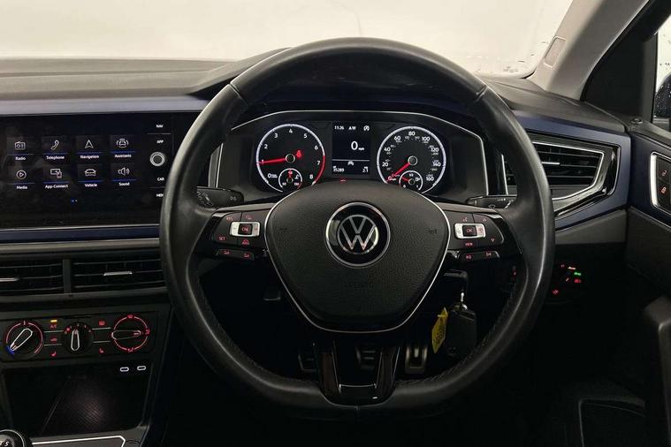 Cruise control + speed limiter, Digital clock, Discover navigation - 8.0" colour touch screen navigation/infotainment systems with Car- net guide and inform, Driver alert system, Emergency call service, Front assist, radar sensor controlled distance monitor, city emergency braking and predictive pedestrian protection, Multifunction computer plus, Power assisted speed sensitive steering, Speedo and rev counter, electronic odometer, trip, service interval display and fuel gauge, Start/stop system, Ultrasonic front and rear optical and audible parking sensors, Voice activation, Volkswagen connect, Warning buzzer and light for front seatbelts unfastened, Wireless app connect, Battery regeneration during braking, Galvanished body, DAB digital audio broadcast, Diversity antenna for FM reception, Premium USB cable in choice of either Apple or Android smartphone compatibility, Black grille with chrome surround, Black radiator grille with chrome louvres, Body colour bumpers, Body colour door handles, Body colour door mirrors with integrated indicators, Body colour rear spoiler, Body coloured side sills, Electric front windows, Electric operated/heated door mirrors, Front fog lights including static cornering, Front windscreen washers and wipers with 4 speed intermittent delay, Halogen clear headlights with range adjustable including automatic headlights on, Heat insulating tinted glass, Heated rear window with auto timer, High level 3rd brake light, Internally adjustable door mirrors, LED daytime running lights, LED rear number plate lights, Manual dimmable interior rear-view mirror, Rear electric windows, Rear tinted glass from B-pillar backwards approx 65% tinted, Rear windscreen washer and wiper with interval delay, reverse activated, United badge on B-pillar, United door sill protector, 2 bag hooks in luggage compartment, 2 front and 2 rear reading lights, 2 front cupholders and 12 V socket with cover, 3 rear head restraints, 4 grab handles, 60/40 split folding rear seat, Atlantic blue dash insert and centre console, Centre console storage with open storage compartment, Chrome interior door handles, Driver and front passenger seat height adjustment, Driver and front passenger sunvisors with illuminated vanity mirrors, Dust/pollen filter, Folding rear seat backrest, Front + rear carpet mats, Front head restraints, Front seat backrest storage pockets, Gear lever gaiter in black trim surround, Glovebox, Handbrake grip button in chrome effect, Height/reach adjustable steering column, Instrument lighting, adjustable panel illumination, Interior light with delay, Isofix Preparation 2 Rear child seats, Leather gear knob and handbrake grip, Leather multifunction steering wheel, Luggage compartment cover, removable, Luggage compartment lighting, Luggage compartment with variable load floor, Lumbar adjustment for front seats, Manual air conditioning, Storage compartment in front doors, Storage compartment in rear doors, Storage compartment under front seats, Sunglasses holder, United cloth upholstery, Composition Media Pack - Polo United, Light and sight pack - Polo, Winter pack - Polo, 3 point height adj front seatbelts + pretensioners, 3x3 point rear seatbelts, ABS, Automatic post collision braking, Driver/front passenger airbag, Drivers and front passengers safety optimised head restraints, ESP with EDL + ASR, Front and rear passenger curtain airbags, Front disc brakes and rear drum brakes, Front passenger airbag deactivation, Front seat side impact airbags, Hill hold control, Hydraulic Brake Assist (HBA), Single tone horn, Tyre pressure monitoring system, Alarm with interior protection and deactivation via infotainment system, Electronic engine immobiliser, Remote central locking with 2 remote folding keys, Air vents in High gloss black, Limestone grey decorative inserts, Seat covers in the Waveform design, 15" Dublin alloy wheels, Tyre mobility kit,