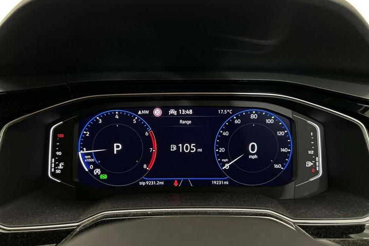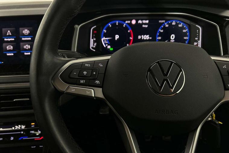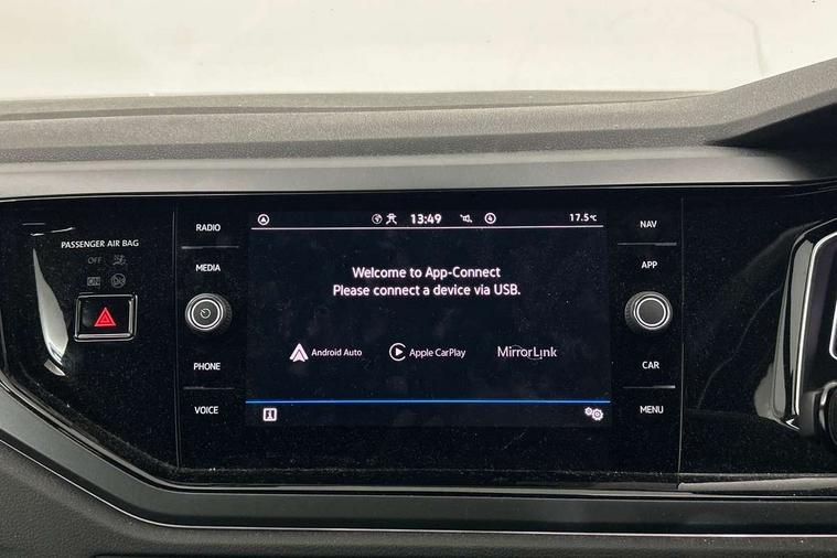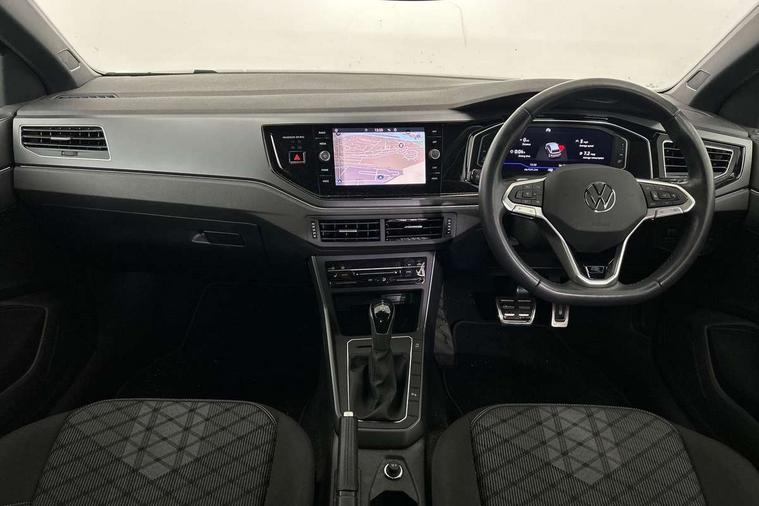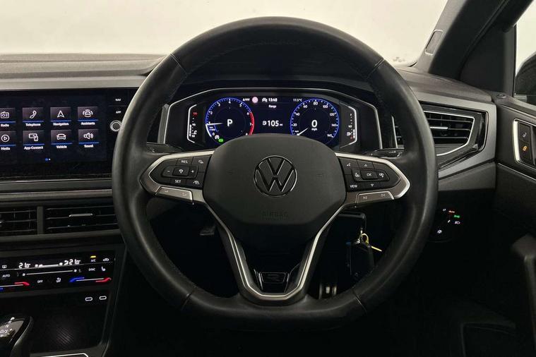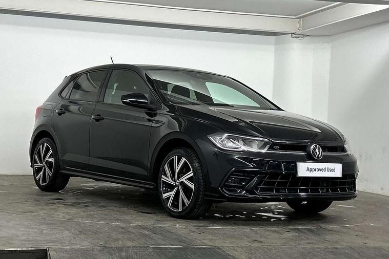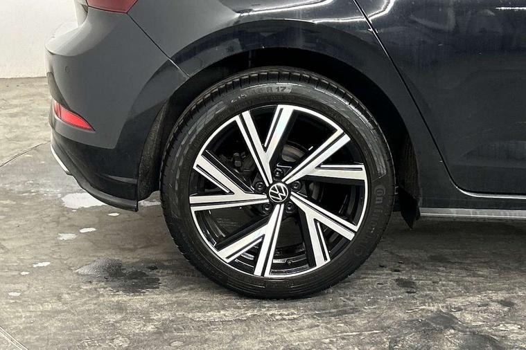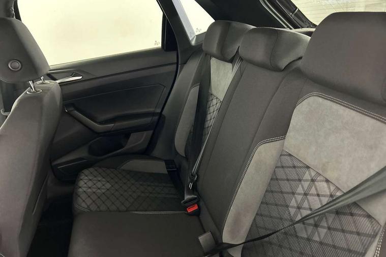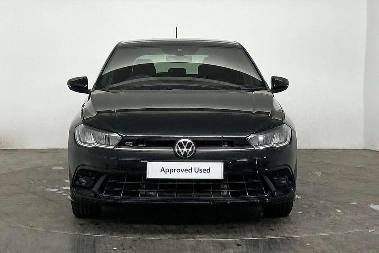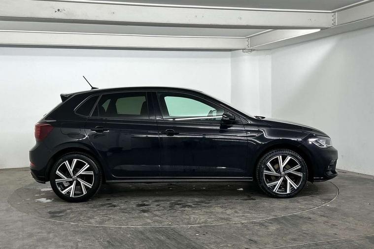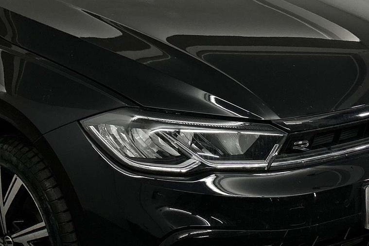 Adaptive cruise control with follow-to-stop and speed limiter, Bluetooth mobile phone interface, Digital Cockpit Pro with 10.25" Display, Driver alert system, Dynamic road sign display, Emergency call service, Power assisted speed sensitive steering, Preparation for We connect and We connect plus, Speedo and rev counter, electronic odometer, trip, service interval display and fuel gauge, Standard rear axle, Travel Assist - Lane keeping system and traffic jam assist, Travel assist including emergency assist, Trip computer, Warning signal and warning light for front and rear seatbelts not fastened, Washer fluid level indicator, Wireless app connect, Front wheel drive, Rear shock absorpion, Start-stop system with battery regeneration (recuperation - energy recovery during braking), DAB Digital radio, Diversity antenna for FM reception, Front and rear 6 speakers, Body colour bumpers, Body colour door handles, Body colour door mirrors, Electric front windows, Front scuff plates with R-Line logo, Heat insulating darkened glass in side and rear windows, Heat insulating glass windscreen, Power folding adjustable/heated exterior mirrors and front passenger exterior mirror lowering function, Rear electric windows, Rear fog light, Rear side wing doors, Rear tinted glass from B-pillar backwards approx 65% tinted, Rear windscreen washer and wiper with interval delay, Third brake light, 12V power socket in centre console, 2 USB-C ports in the front, 2 USB-C charging sockets on the center console in the rear, 3 rear head restraints, 60/40 split folding rear seat and rear seat bench not split, Air care climatronic air conditoning system with active combination filter and 2-zone temperature control, Black roof lining, Ceramique headliner, Chrome plated radiator grille inserts, air vent surrounds and light switch surrounds, Door and side trim panel, Driver and front passenger seat height adjustment, Driver/passenger sunvisors with illuminated vanity mirrors, Front + rear carpet mats, Front centre armrest, Front footwell illumination, Front seat backrest storage pockets, Front sports comfort seats, Handbrake lever handle in leather, Isofix child seat preparation easy-fit (for two outer rear seats, and front passenger seat) compatible with I-size, Karoso artvelours cloth upholstery, Leather trimmed gear knob, LED interior light with switch off delay and dimmer, 2 reading lights front and rear, Luggage compartment cover, Luggage compartment floor, Luggage compartment lighting, Lumbar adjustment for front seats, Single front passenger seat, Stainless steel pedals, Standard pedal cluster, Three spoke leather wrapped multifunction steering wheel with shifting paddles, Light and sight pack - Polo R-Line/Black Edition, 3 point height adj front seatbelts + pretensioners, 3x3 point rear seatbelts, ABS, Driver and front passenger airbag with front passenger airbag deactivation, Drivers and front passengers safety optimised head restraints, ESC (Electronic stability control) + EDL (Electronic Differntial lock) and ASR (Traction control), Extended and predictive pedestrian/ cyclist protection, Front curtain and side airbags with center airbag, Front/rear disc brakes, Hill hold control, Manual child lock in rear doors, Single tone horn, Tyre pressure loss indicator, Alarm with interior protection, Anti-theft alarm system with interior monitoring, backup horn, and towing protection, Anti-theft wheel bolts, Electronic engine immobiliser, Chrome applications on rotary light, mirror adjustment, window regulator switches, outlet with frame in black, Dark grey anodised matt decorative inserts in dash and front door panels, Low rolling resistance tyres,