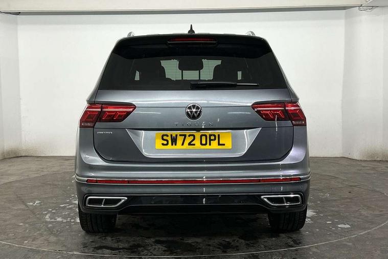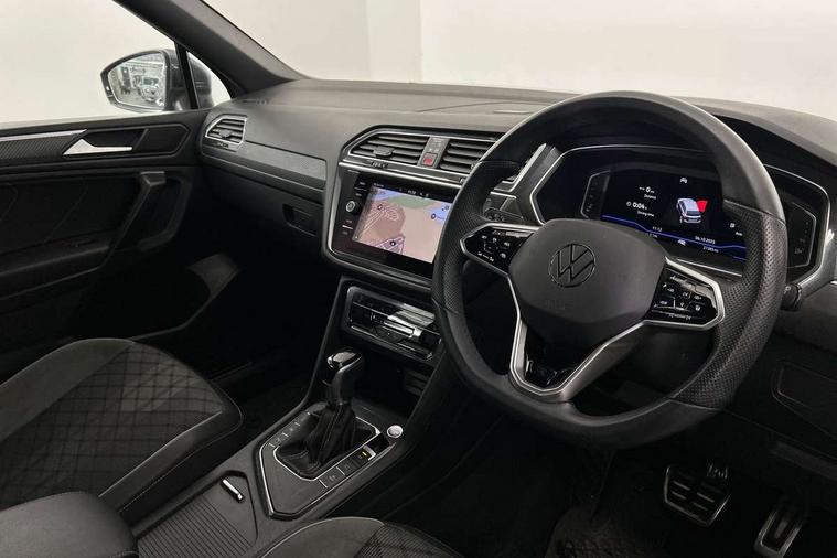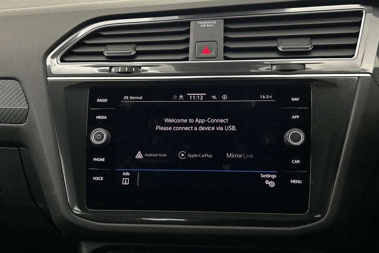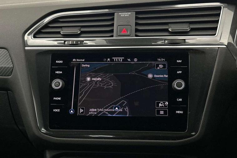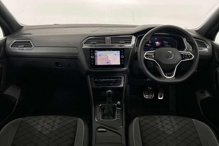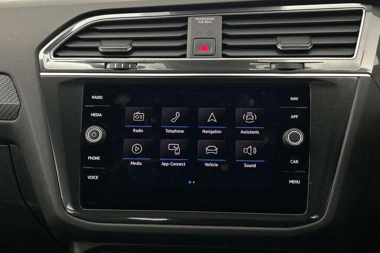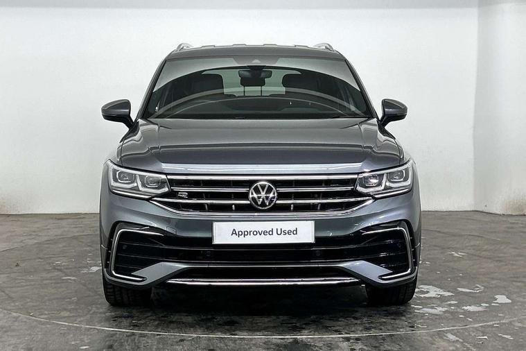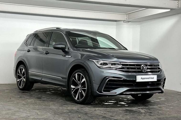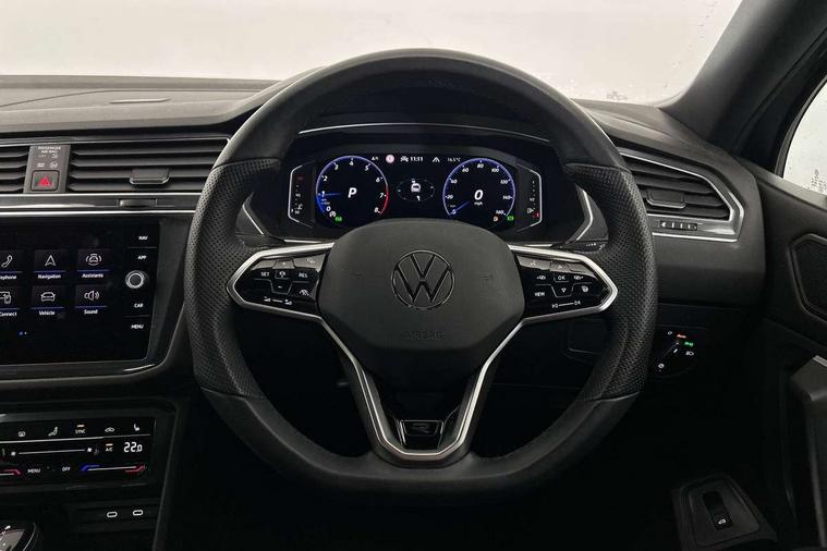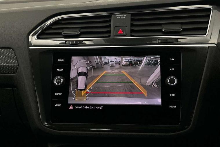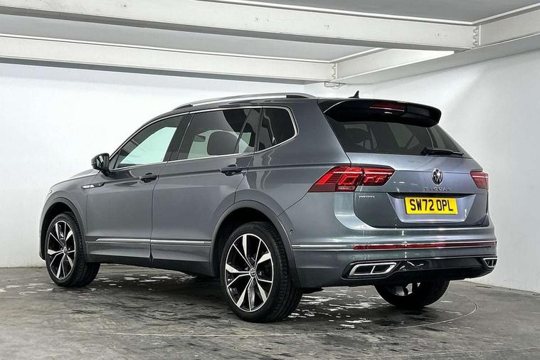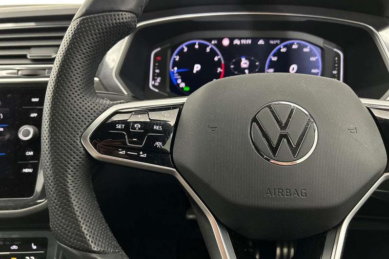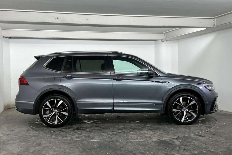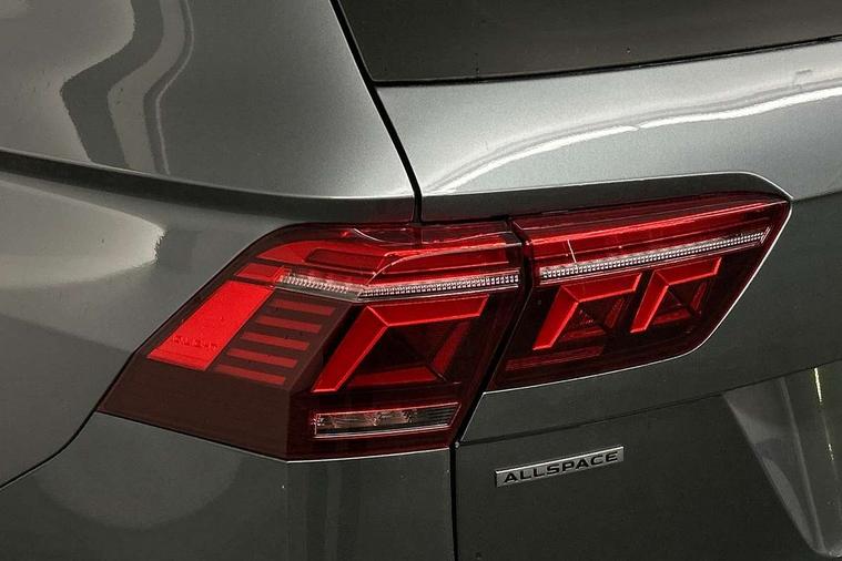 Adaptive cruise control, App-Connect, Digital cockpit pro, Driver alert system, Driver profile selection, Dynamic road sign display, eCall emergency call service, Electric boot lid, Lane change system side assist and rear traffic alert, Lane keeping system Lane Assist, Mobile phone interface comfort with inductive charging feature, Multifunction front facing camera, Progressive steering, Speedo and rev counter, electronic odometer, trip, service interval display and exterior temperature gauge, Front wheel drive, Start-stop system with battery regeneration (recuperation - energy recovery during braking), 2 USB-C ports in the front, 1 USB-C charging socket on the center console in the rear, 8 Speakers, DAB Digital radio, Diversity antenna for FM reception, Radio, Auto dimming interior rear view mirror, Automatic headlight control system, Chrome mouldings on side window, Coming/leaving home lighting function, Dark red rear combination lamps in LED technology, Exterior badge deletion, Exterior mirror housings painted in silver, Headlight range control, Heated windscreen washer jets, LED headlamps with LED separate signature running light and dynamic cornering light, Poor weather light and cornering light, Rain sensor, Rear fog light, Rear side wing doors, Rear spoiler in R style, Rear wiper, Silver roof rails, Third brake light, 12-volt outlet in centre console rear and luggage compartment, 12V socket in centre console, 3 head restraints in rear, 3 individual folding 2nd row seats, 3rd row 2 individual seats, Air Care Climatronic 3 zone automatic climate control with enhanced air filter and controls in the rear, Black roof lining, Door and side trim panel with leatherette insert, Drawers under front seats, Driver and front passenger seat height adjustment, Foldable front passenger seat backrest, Front + rear carpet mats, Front centre armrest, Front footwell illumination, Heated front seats, Heated leather wrapped multifunction sports steering wheel with touch control and shift paddles, Illuminated scuff plates, ISOFIX anchorage points for mounting 2 child seats on rear seats and i-Size child seats, Leather gearshift handle, LED interior light with switch off delay/dimmer and 2 front/rear LED reading lights, Stainless steel pedals, Sun visors with illuminated vanity mirrors, Ambience pack - Tiguan Allspace R Line, Driver assistance plus package - Tiguan Allspace, 3 point seat belt for centre rear seat, 3 rear three point seatbelts, ABS+EBD+Brake assist, Driver and front passenger safety-optimised head restraints, Driver's and front passenger's airbag with front passenger's airbag deactivation switch, Electronic parking brake, Electronic Stability Control (ESC) inc EDL (Electronic Differential Lock) and ASR (Traction Control), Height adjustable front 3 point seatbelts + pretensioners, Manual rear child locks, Pedestrian monitoring, PreCrash preventive occupant protection Front and rear, Rear disc brakes, Side airbag in front and rear with curtain airbag, Two tone horn, Warning buzzer for seatbelts if unfastened, Anti theft alarm system with interior monitoring, backup horn and towing protection, Anti-theft wheel bolts, Electronic steering lock, Remote central locking with 2 remote folding keys,