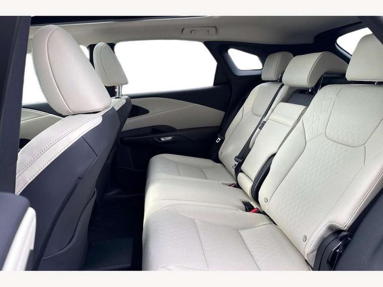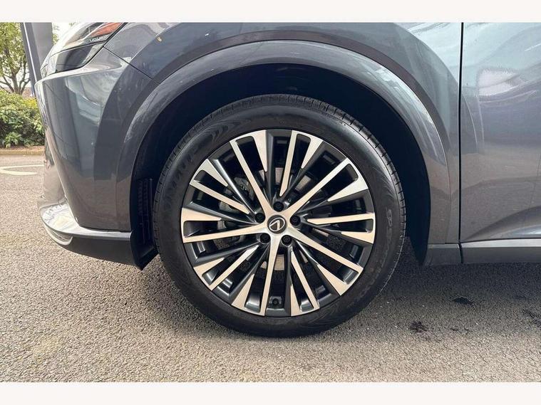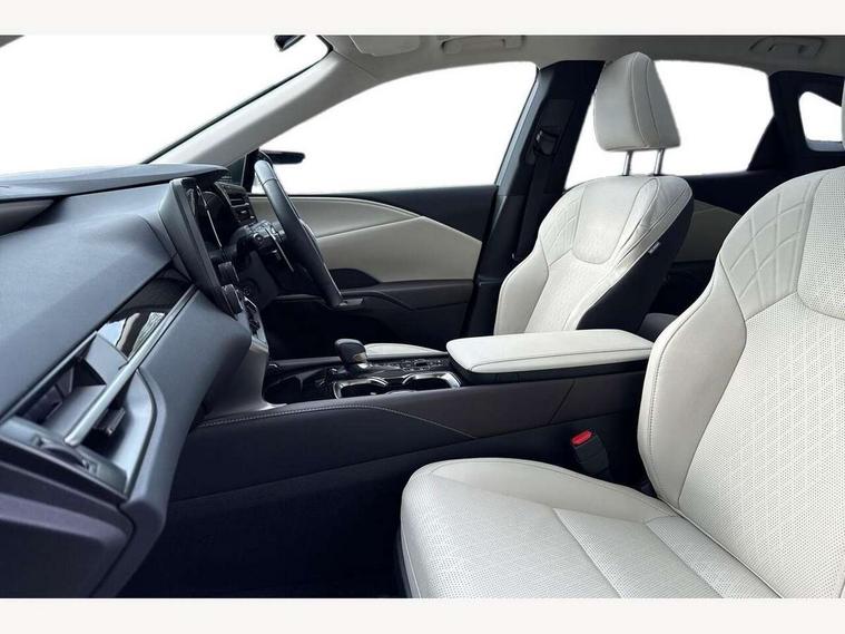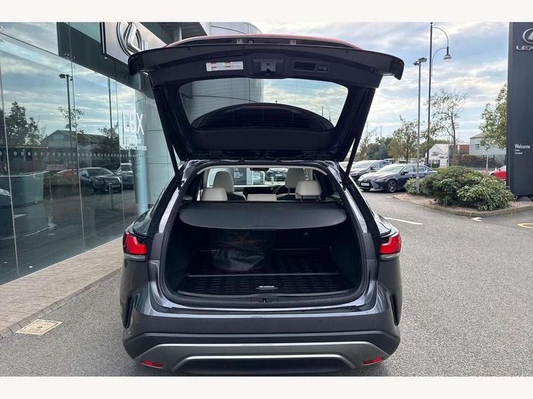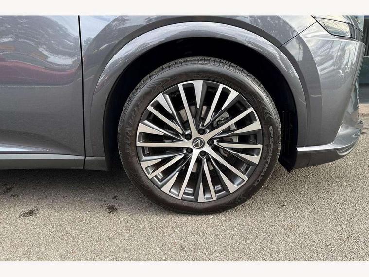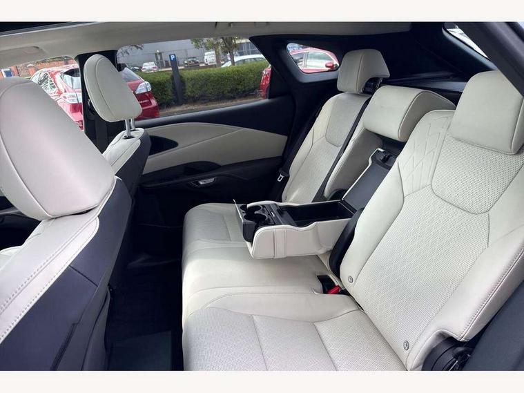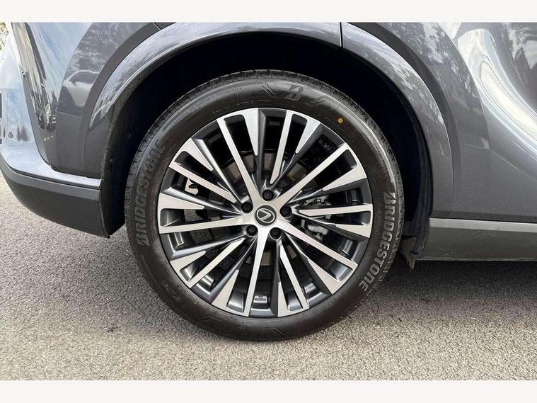 360 degree panoramic view monitor, Bluetooth mobile phone connectivity, BSM - Blind spot monitoring, Drive mode selector, Driver monitoring system, E-call, Head up Display, Intelligent clearance sonar, Lexus link connected services including over the air updates, MM21 Lexus link pro - 14" HD touchscreen with embedded and cloud based navigation, voice assistant, connected services, over the air and always online, Push button starter, Rear cross traffic alert, Speed sensitive electric power assisted steering, Ultrasonic parking sensors, Wireless Apple CarPlay and wired Android Auto, Wireless Smartphone charger, 3 pin to Type 2 10A charging cable, 6.6 kW onboard charger, E-Four Automatic transmission, Type 2 AC charging, Type 2 mode 3 32A charging cable, Vehicle Stability Control (VSC), 12 speakers audio, 5 USB ports (3 front USB C and 2 rear USB C), DAB Digital radio, 3 projector bi-beam LED headlight with auto high beam, Auto dimming rear view mirror, Auto headlights, Front and rear one touch power windows with voice command, Front and rear silver window frame mouldings, Glove and towel set, Headlight washers, Heated, auto-folding door mirrors, auto dimming with rerverse tilt, turn indicators and panoramic view sensors, L-shaped rear light bar, LED brake lights and rear lights with emergency brake signal, LED cornering headlights, LED daytime running lights, LED front and rear fog lights, LED Indicators, Power back door with kick sensor, Privacy UV glass, rear doors and tailgate, Rain sensor windscreen wipers, Rear side wing doors, Rear wash/wipe, Roof rails, Variable front intermittent wipers, 12V accessory port centre console and luggage compartment, 2 cup holders in centre console, 2 way electric lumbar support for driver and front passenger, 2 x Sunvisors with vanity mirror and lamp, 3 rear headrests, 3 seat bench in 2nd row, 40:20:40 split folding rear seats, 64 colour LED ambient interior illumination with 14 pre-set themed colour tones, 8 way electrically adjustable front seats, Charge cable bag, Driver seat memory function, Easy access driver seat, Easy access steering wheel, Front aluminium scuff plates, Front headrests, Front tray in front of centre console, Glovebox, Heated and ventilated front seats, Heated steering wheel, Leather steering wheel, Lever type shft control, Manually adjustable rear seats, Power adjustable steering wheel, Rear resin scuff plates, Single front passenger seat, Smooth leather upholstery, Textile carpet mats, Three zone climate control air conditioning system, Two way opening centre armrest with storage, 2 x Isofix child rear seat restraints, 3 point ELR front and rear seatbelts with pretensioners, ABS, Curtain shield airbags (front and rear), Driver and front passenger 2 stage airbag, Driver/front passenger side airbags, Drivers knee airbag, E-Latch with safe exit assist, EBD + Brake Assist, Electronic parking brake, Electronically controlled braking, Extended lexus safety system+ 3 - lane change assist, front cross traffic assist, Front and rear left/right force limiters and tension reducers, Front and rear left/right seatbelt reminders, Front centre airbag, Hill assist control, Lexus safety system+ 3 - dynamic radar cruise control, pre collision system day and night, lane tracing assist, road sign, Manual child lock in rear doors, Passenger airbag cut-off device, Traction control, Tyre pressure warning, 2 x remote key fobs, Customisable auto door lock, Locking wheel nuts, Motion sensor key, Smart keyless entry, Thatcham category 1 alarm + immobiliser, VIN etching, Black Inlay, 21" Alloy wheels,