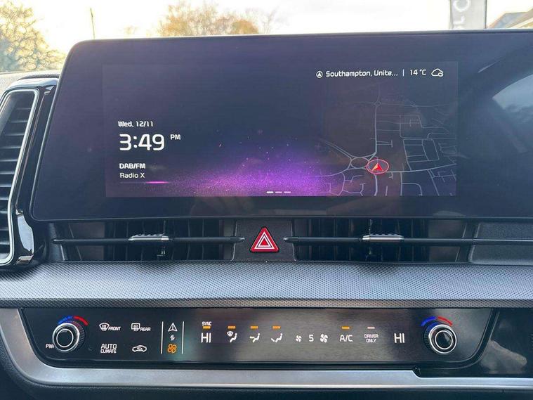12.3" Driver display screen, 12.3" Touchscreen navigation system, 2 rear USB-C ports, Apple car play/Android Auto, Drive mode selector, Driver attention warning, E-call, Emergency stop signalling system, Forward collision avoidance assist (FCA) - city/pedestrian/cyclist/junction covering, Front and rear parking sensors, Highway Driving Assist (HDA), Intelligent speed limit assist, Kia Connect (UVO), Lane Following Assist (LFA), Lane keep assist, Low washer fluid warning, Motor driven power steering, Rear view monitor, Reversing camera system integrated into centre fascia screen, Smart cruise control with stop and go functionality, Speed limiter, Tailgate, Trip computer, Windscreen washer level indicator, Terrain mode select (Mud, Snow, Sand), 1x USB-C port in front, 6 speaker audio system, Bluetooth audio streaming, DAB Radio with MP3, Steering wheel mounted audio controls, USB C type charging ports on centre console, USB port for connection of a media device, All round electric windows with drivers and front passenger auto up/down function, Auto dimming rear view mirror, Automatic headlight control system, Automatic window defogger, Black bumpers with silver accents, Black radiator grille with silver surround, Black side sill and wheel arch body mouldings, Body colour door mirrors, Body colour exterior door handles, Electrically adjustable/heated/folding door mirrors with LED indicators, Heated rear window, High beam assist, Interior electrochromic mirror, LED daytime running lights, LED front fog lamps, LED headlamps (low and high beam - MFR type), LED High mounted stop light, LED rear combination lamp, Rain sensing wipers with aero blades, Rear fog lamp, Rear privacy glass, Rear side wing doors, Rear spoiler, Rear wiper, Satin finished beltline, Silver front and rear skid plate, Silver roof rack, Silver window surround, Tinted rear glass, Trailer stability assist, 12V power socket in front centre fascia and luggage compartment, 2nd row personal lamps, 3 seat bench in 2nd row, 3 x passenger assist grips, 40/20/40 split folding rear seat, All-round height adjustable headrests, Automatic air conditioning, Centre console storage box, Cloth/artificial leather upholstery, Cupholders in rear armrest, Door courtesy lamps, Drink holder at centre armrest, Driver and front passenger side sunvisors with illuminated vanity mirrors, Drivers seat power lumbar support, Electric height adjustable front seats, Front and rear door storage, Front Cabin, Rear & Luggage Compartment Lights, Front seat and rear pockets, Gear shift indicator, Glovebox illumination, Heated front and outer rear seats, Heated steering wheel, ISOFIX Child seat top tethers and anchor fixings outer rear seats, Leather steering wheel, Luggage area load cover, Luggage area parcel shelf, Luggage board, Luggage compartment under floor storage, Luggage net with hooks, Manual adjust steering wheel, Metal paint interior door handles, Overhead console lamp, Paddle shift controls, Rear air conditioning, Rear cabin light, Rear coat hooks, Single front passenger seat, Ventilation ducts to rear compartment, Active front headrests, All round 3-point seatbelts, Anti-lock braking system (ABS), Dual front side airbags, Dual horn, Dynamic brake control, Electronic parking brake with auto hold function, Electronic stability control with downhill brake control, Front passenger airbag cut-off switch, Front seatbelt pretensioners + load limiters, Height adjustable front seatbelts, Hill start assist control (HAC), Impact sensing auto door unlocking, Multi collision brake assist, Rear airbags, Rear door child safety locks, Rear seat alert system, Seatbelt reminder warning, Traction control, Twin curtain airbags, Twin front airbags, Tyre pressure monitoring system, Vehicle stability management, Customisable automatic door locking, Customisable automatic door unlocking, Door deadlocks, Engine Start/Stop Button with Smart Entry System, Locking wheel nuts, Smart key with motion sensor, Speed sensitive auto door locking, Thatcham category 2 security alarm and immobiliser, Visible vehicle identification number, Aluminium pattern finish centre fascia and door garnish, 19" Alloy wheels, Tyre mobility kit,