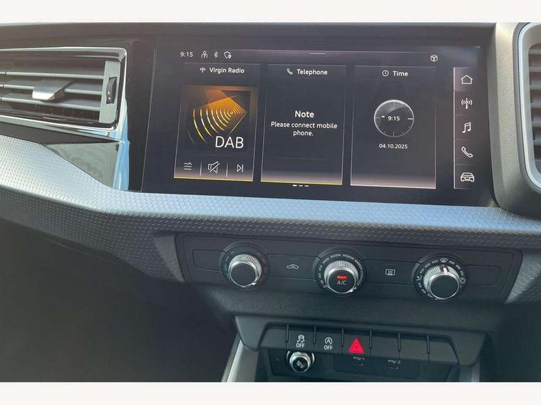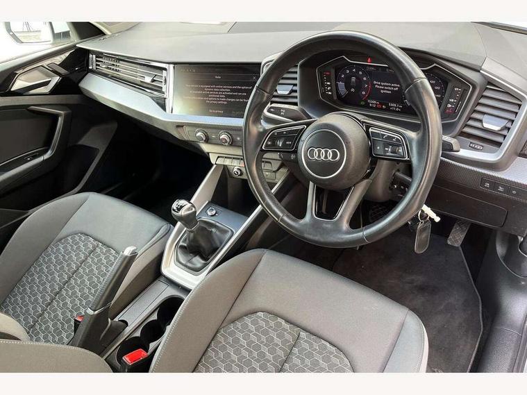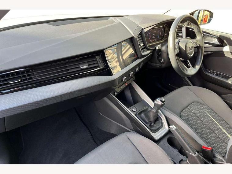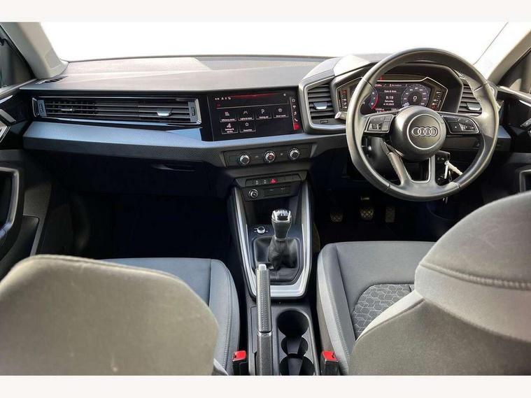 10.25" Digital instrument cluster display classis style instrument dials + speed, odometer, time, outside temperature, telephone menu + fuel level warning, Audi smartphone interface with connect compatible smartphone via USB directly MMI display + Nav, music, third party apps controlled via MMI controller, Automatic start/stop system, Bluetooth interface, Cruise control, Driver's information system, Electromechanical power steering, Emergency e-call, Lane departure warning system, Rear parking sensor, Service interval indicator, Speed limiter, Voice control system, Washer fluid level indicator, Dynamic suspension, 2 x USB type C connection points, 6 passive loudspeakers, DAB Digital radio, MMI radio plus with 10.1" colour MMI display screen and MMI touch, Auto dimming rear view mirror, Body coloured bumpers, Body coloured door mirrors, Electric front and rear windows, Electrically adjustable, heated, folding door mirrors with integrated LED side indicator, Front side air inlets in grained matt black and C frame in anthracite black, Heat insulating glass windscreen and side windows, Heated rear windscreen, High level LED brake light, LED headlights with LED rear lights + dynamic rear indicators + headlight adjustment and high beam, turning light + LED daytime running lights, Radiator grille and rear diffuser in matt anthracite black, Radiator protective grille frame in matt aluminium silver, Rain and light sensors, Rear fog lights, Rear side wing doors, Rear wiper, Side front spoiler lips in grained matt black, 12V socket in centre console with two cup holders, 3 rear seats with headrests, 3 seat bench in 2nd row, 3 spoke leather multifunction plus steering wheel, 40:60 Split folding rear seat or folded fully, Black front and rear floor mats, Door sill trims with aluminium inlay, Driver and passenger seat with manual height adjust with forward and backwards adjustment, Front head restraints, Front passenger seat, Grey cloth headlining, Height and reach adjustable steering wheel, ISOFIX child seat mounting for front passenger and outer rear seats including top tether attachment point of outer rear seats, Leather gear knob with aluminium trim, Leather handbrake grip, Luggage compartment light with front and rear reading lights, Manual air conditioning, Manually adjustable lumbar support in front seats, Novum cloth upholstery with front sport seats, Luggage compartment pack - A1, 3x3 point rear seatbelts, Audi pre-sense front with pedestrain and cyclist recognition, Brake assist function, Driver and front passenger airbag with front side and head airbags, Electronic Stability Control including ABS, EBD, ASR and EDL, Front passenger airbag deactivation switch, Hill hold assist, Manual rear child locks, Seatbelt height adjustment for front seats, Seatbelt monitoring, Tyre pressure warning light, Warning triangle and first aid kit, Anti theft alarm, Anti theft wheel bolts and loose wheel warning, Immobiliser, Remote central locking with 2 foldaway keys, Aluminium trim for control switches, air vents and digital instrument cluster, Black dashboard, Silver grey accent areas including air vents, door handle recesses and centre console in diamond paint finish, Slate grey inlays polygon structure in fine paint finish,