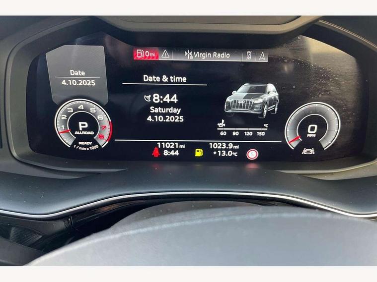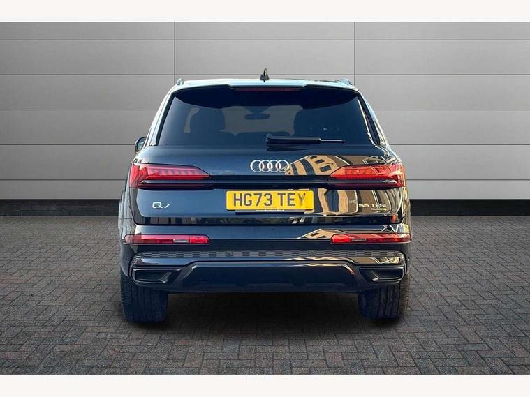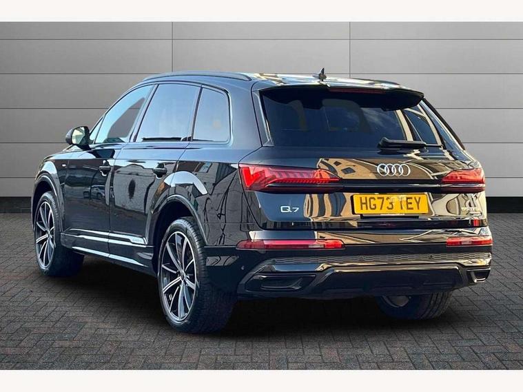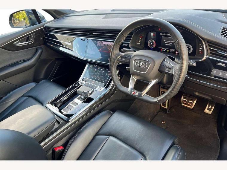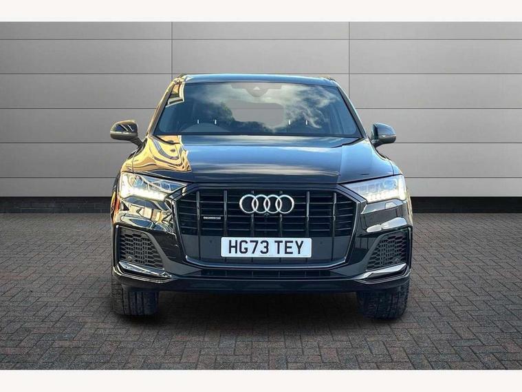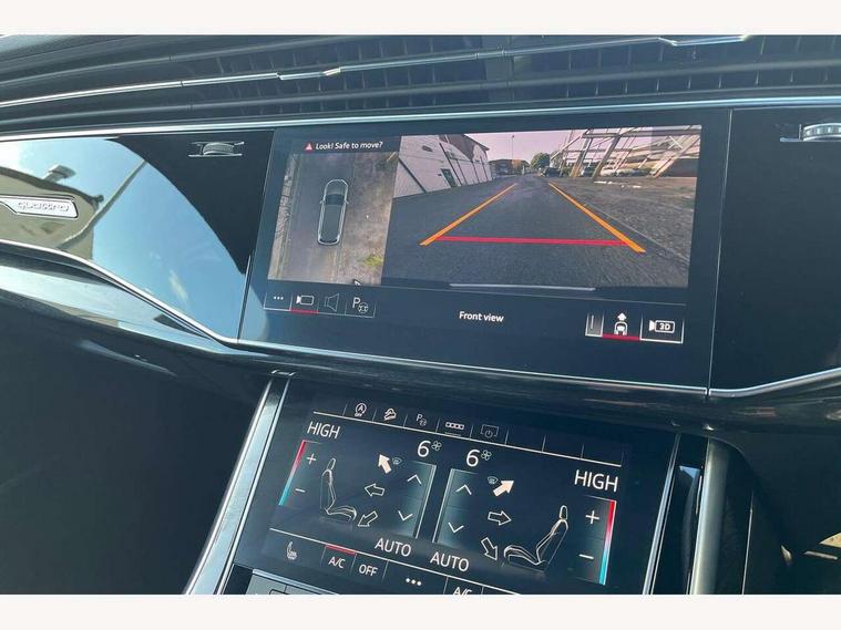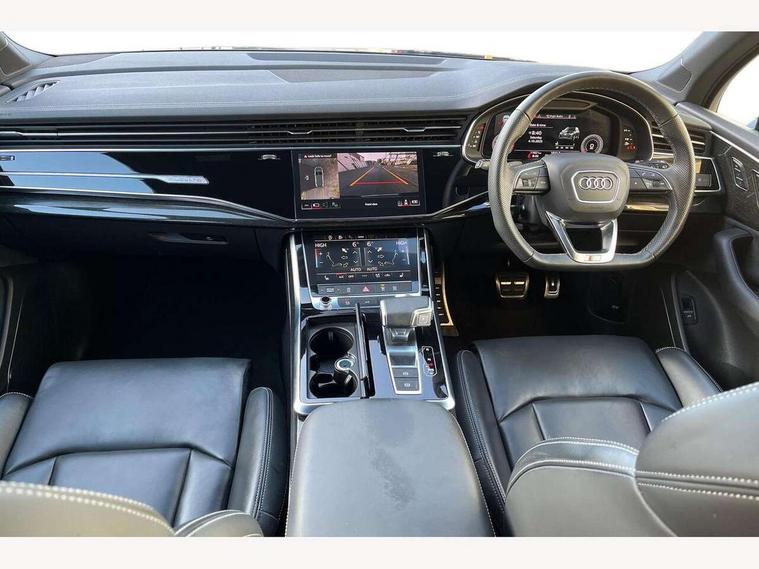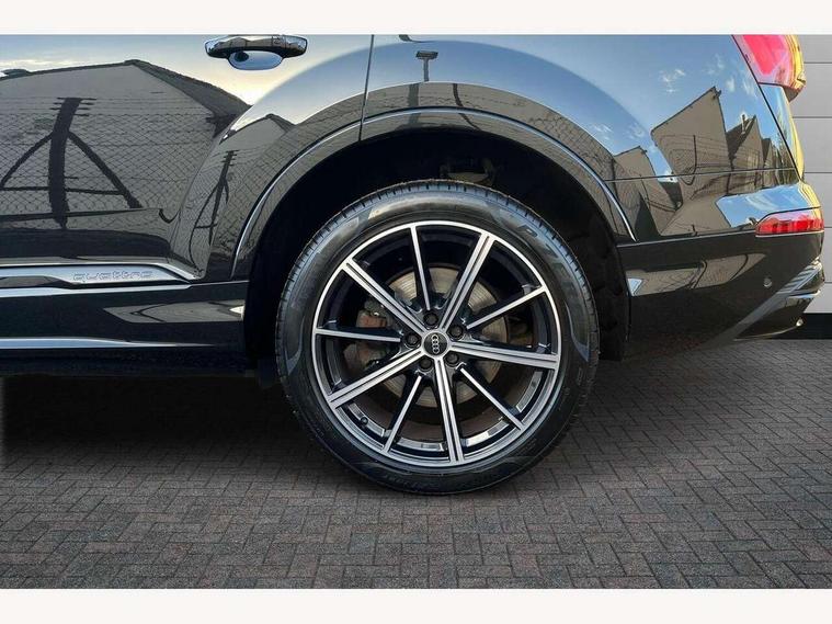 Audi connect safety and service (e-call), Audi connect with Amazon Alexa Integration, Audi drive select (Auto, Comfort, Dynamic, Efficiency, Individual, Off-road and All road), Audi phone box light with wireless charging, Audi virtual cockpit - 12.3" high-resolution LCD display with fully customisable instrument cluster, Bluetooth interface, Camera based traffic sign recognition, Electromechanical steering, MMI navigation plus with MMI touch screens includes 10.1" and 8.6" screens with haptic feedback, Natural voice recognition, Parking system plus with 360 degree display (front, rear and side sensors) - acoustic and visual park assist system, Power operated tailgate, Rear view camera, Smartphone interface includes wireless Apple carplay/Android Auto, Start/stop system, 48V Mild hybrid technology, 85 litre fuel tank, Adaptive air sports suspension, Quattro all wheel drive with self locking centre differential, Audi music interface - front 2 USB-C ports with charger and data functions, Audi sound system with 6 channel amplifier, 180 watt amplifying capacity and 10 loudspeakers including subwoofer, DAB digital radio module, 3rd brake light, Aluminium window trim, Audi Beam uses LEDs to project S emblem with red rhombus onto the ground when opening the side doors (front/rear), Auto dimming frameless rear view mirror, Black roof rails, Bumpers in contrast paint scandium grey finish includes door trim and wheel arch trim strips, inlays in door strip contain quattro embossing, Dark tinted Matrix LED headlights with dynamic front and rear indicators, Electrically adj heated/folding + automatically dimming exterior mirrors with memory + automatic kerb side function for passenger side exterior mirror, Heat insulating glass in windshield, Integrated LED indications in door mirrors, LED daytime running lights, LED rear tail lights, Privacy glass - dark tinted rear and rear side windows from B-pillar backwards, Rear side wing doors, Rear wiper, 2 seat bench in 3rd row, 2 zone automatic climate control, 3 seat bench in 2nd row, 7 seat layout with ISOFIX points for the front passenger seat and rear passenger seat, Black cloth headlining, Comfort front centre armrest, Electric adjustable front seat with 4 way lumbar support, driver memory functionality, Folding rear seats, Front head restraints, Front/rear floor mats, Heated front seats, Illuminated door sill trims with S logo, LED interior ambient lighting, Luggage compartment cover, Luggage compartment sill protection in stainless steel, Rear head restraints, Single front passenger seat, Stainless steel pedals, Sunvisors with illuminated vanity mirrors, Black styling pack plus - Q7, 3 point seatbelts on all rear seats, Audi pre sense front, Child locks on rear doors, Driver and front passenger, front side and curtain airbags, Electromechanical parking brake, Electronic Stabilisation Control (ESC) including ABS, ASR and EDL, Extended pedestrian protection measures, Hill hold assist, Seatbelt monitoring, Tyre pressure loss indicator, Warning triangle and first aid kit, Anti theft alarm, Anti-theft wheel bolts and wheel loosening detection, Keyless Go, Remote central locking, Polished oak trim with grey finish inlay, Tool kit, Tyre repair kit,