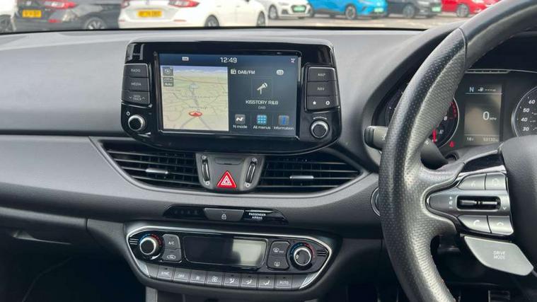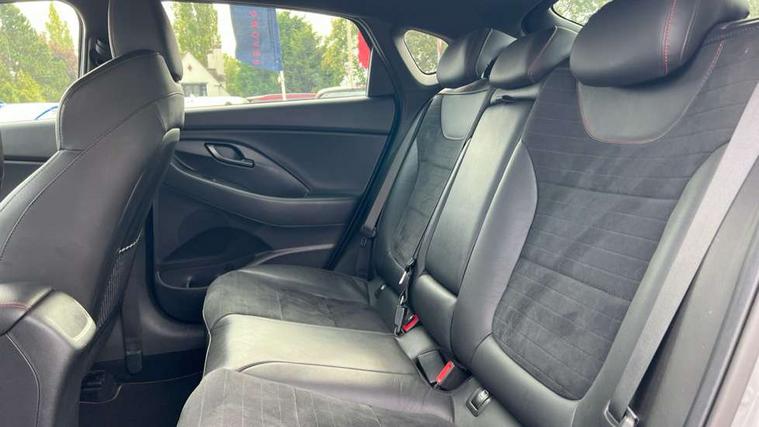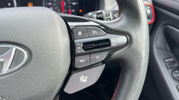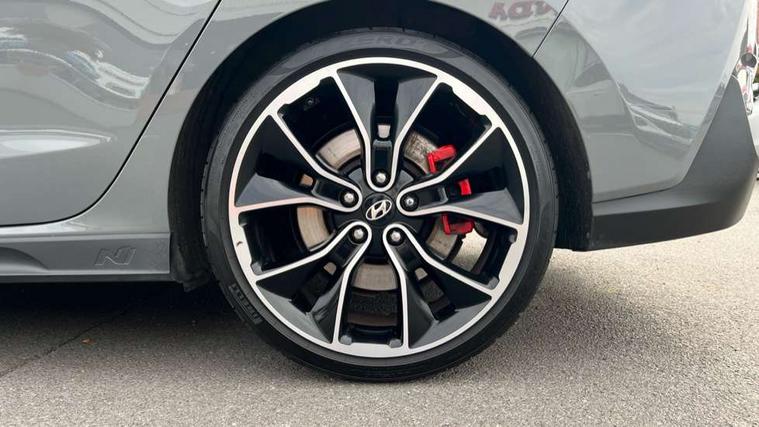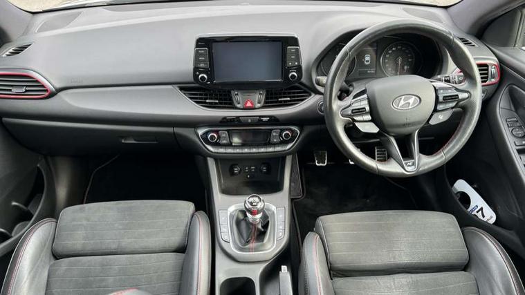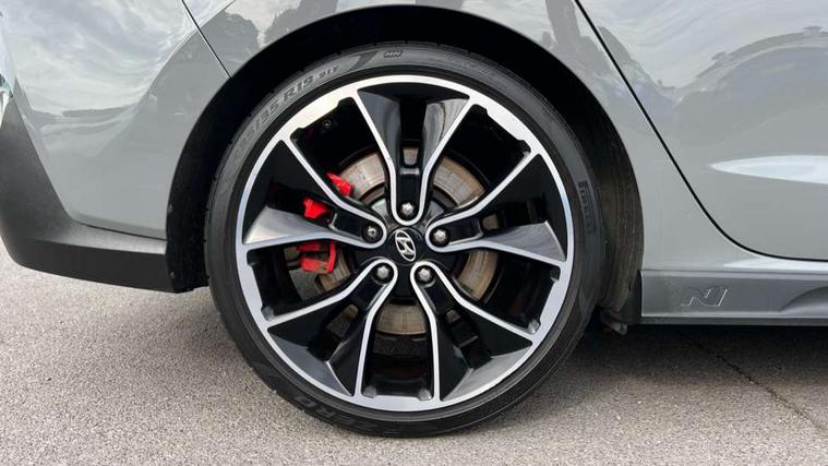 8" touch screen sat nav with TMC, Apple car play/Android Auto, Bluetooth connectivity with voice recognition, Colour driver's information system display, Cruise control + speed limiter, Digital clock, Drive mode buttons, Driver alert system, Driver's supervision instrument cluster with 4.2" LCD display, Emergency stop signalling system, Forward collision warning, Front and rear parking sensors, Lane departure warning system, Lane keep assist, N exclusive sport cluster, N mode button, Parking guidance system, Parking system with rear camera and guidance system, PAS, Performance information display, Rack motor driven power steering, Rev matching system, Roll over sensor, Shift timing indicator, Smartphone wireless charging plate, Supervision cluster with 4.2" TFT display, Trip computer, Windscreen washer level indicator, Active cornering enhancement, Electric active sound design, Electronic limited slip differential, Electronically controlled suspension, Intelligent Stop and Go, Launch control, Vehicle Stability Control (VSC), 6 speakers, Audio control, DAB Digital radio, RDS radio with MP3 player, Steering wheel mounted audio/phone controls, USB/aux input socket, 1 speed non intermittent rear windscreen wiper, Active variable exhaust system, Auto dimming rear view mirror, Automatic defog system, Automatic front rain sensing wipers, Automatic headlights, Automatic headlights with dusk sensor, Black door mirrors, Black side sills, Black window surrounds, Body colour door handles, Body coloured bumpers, Bumper accents, Door mirror LED indicator lights, Door mirror puddle lights, Electric adjustable heated door mirrors, Electric folding door mirrors, Electric front and rear windows + anti trap + one touch, Follow me home headlights, Front fog lights, Headlamp levelling, Heated rear windscreen with washer, LED brake lights, LED daytime running lights, LED Headlights, LED tail lights, N exclusive front and rear bumpers, N exclusive radiator grille, N exclusive rear diffuser, Rear privacy glass, Rear spoiler, Rear stiffness bar, Rear wash/wipe, Shark fin antenna, Smart beam, Smoked tail lights, Static Cornering lights, Tinted glass with shade band, Twin exhaust pipes, 12V accessory power point in centre console, 12v socket in front centre armrest storage compartment, 12V socket in luggage compartment, 60/40 split folding flat to floor rear seats, Active head restraints, Aluminium pedals, Artificial leather door centre trim, Automatic climate control with defog system for front windscreen, Black cloth headlining, Black interior door handles, Centre console storage, Driver seat memory function, Driver's electric adjustable lumbar support, Driver's seat electric height adjustment, Driver's seat manual extendable seat cushion, Driver/passenger sunvisors and illuminated vanity mirrors, Electric adjust driver's seat, Faux suede and leather seat trim, Front and rear door pockets, Front and rear interior lights with delay, Front centre armrest with storage compartment, Front cupholders, Front head restraints with vertical and horizontal adjustment, Front map reading lights, Front passenger seat electric height adjust, Front passenger's seat electric adjustments, Front passenger's seat electric lumbar support, Front passenger's seat manual extendable seat cushion, Glove compartment, Heated front seats, Height/reach adjustable steering column, Isofix rear child seat fastenings, Leather gear knob, Leather handbrake, Leather steering wheel, Luggage compartment lighting, N branded aluminium door sill trims, N exclusive sports seats, Rear air vents, Rear armrests with cupholder, Ski bag through loading, Sunglasses holder, Variable boot floor, Vertical adjustment rear head restraints, Winter pack - i30, 3x3 point rear seatbelts, ABS, Active front headrests, Autonomous emergency braking, Childproof rear door locks, Curtain airbags, Driver/Front Passenger airbags, EBD + Brake Assist, Electronic Stability Programme, Fasten seatbelt reminder, Front and rear seatbelt reminder, Front seatbelt pretensioners, Front side airbags, Height adjustable front seatbelts, Hill start assist control (HAC), Manual parking brake, Passenger airbag deactivate switch, Red brake calipers with N logo, Reinforced brakes, Torque vectoring brake, Traction control, Tyre pressure monitor, Alarm/immobiliser, Deadlocks, Drive away door locking, Folding key, Locking wheel nuts, Remote central locking, Smart key with keyless entry and engine start/stop button, Speed sensitive auto door locking, Thatcham category 1 alarm, 19" Alloy wheels, 19" Pirelli P zero performance tyres, Emergency spare wheel, Pirelli P-Zero tyres,