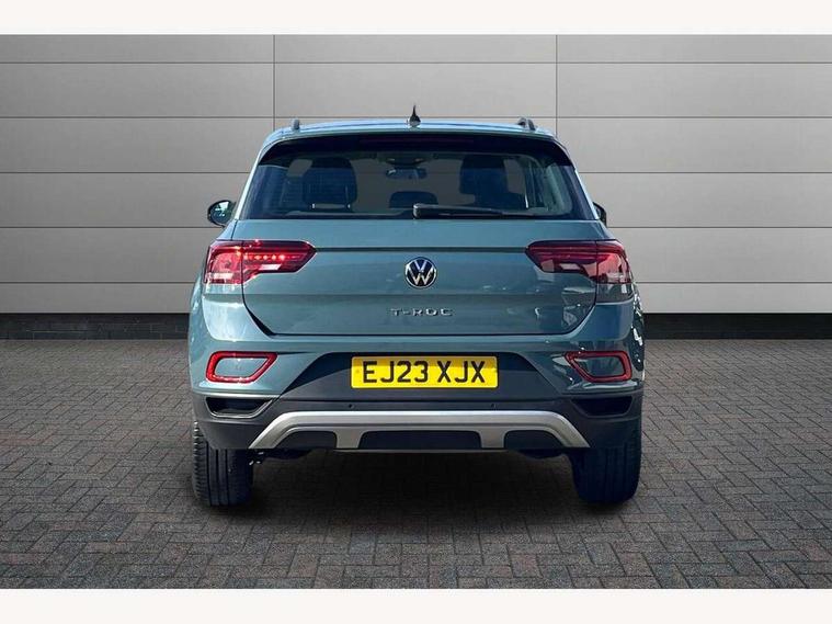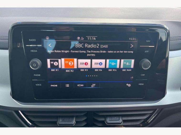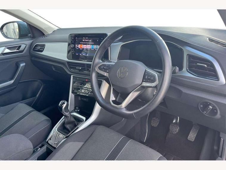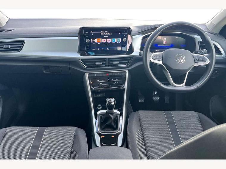 Bluetooth mobile phone interface, Driver alert system with fatigue detection, Driver tips and journey analysis, Emergency call service, Lane keeping system Lane Assist, Modified key software - reduce switch off time for key status change to Long no motion, Online services, Park assist including front and rear parking sensors, Power assisted speed sensitive steering, Service interval indicator, Tailgate/trunk lid release from outside, Think blue trainer driver tips and journey analysis, Warning sound and light for front seatbelts unfastened, Wireless app connect, Battery regeneration during braking, Front shock absorption, Rear shock absorption chassis with increased ride height, Start/stop function with battery regeneration, DAB Digital radio, Diversity antenna for FM reception, Music playback - MP3, WMA and AAC files, Premium USB cable in choice of either Apple or Android smartphone compatibility, SD card slot, Simultaneous pairing of 2 compatible mobile devices, Title and cover art display, We Connect and We Connect Plus functionality, 3rd brake light, Auto dimming interior rear view mirror, Automatic hazard lights activation under emergency braking, Automatic headlight control with LED separate daytime running lights with coming/leaving home function, Black roof rails, Body coloured bumpers and radiator grille with chrome trim and front fog lamps with chrome bezel, Body coloured exterior mirror housings and door handles, Extended roof spoiler, Exterior mirrors aspherical on driver side, convex on front passenger side, External USB type C socket and charging sockets, Front windscreen wiper with intermittent wipe and 4 position delay, Heated rear window, LED rear combination lamps, LED rear number plate lights, LED tail lamp rear comination lamps, Power windows with comfort operation and circuit breaker, Rain sensor, Rear exhaust tailpipe, Rear fog light on one side and reversing lights on both sides, Rear side wing doors, Rear wash/wipe with intermittent wipe setting, Remote electrically foldable door mirrors, puddle lights and reverse activated passenger's door mirror, 12V power socket in centre console, 3 rear head restraints, 3 seat bench in 2nd row, 4 load lashing points in luggage compartment, Air care climatronic air conditoning system with active combination filter and 2-zone temperature control, Ambient lighting with mirror logo projection, Cloth upholstery, Door and side trim panel in cloth, Drawer under drivers seat, Driver/front passenger seat height adjustment, Front centre armrest, Front comfort sports seats, Front cupholders x 2, Front reading light, Instrument lighting, white adjustable panel illumination, Interior light delay, Isofix child seat preparation, Leather gearshift handle, Load-through provision with cup holder when folded down ('Unsplit rear seat bench, split folding backrest, with centre armrest), Luggage compartment lighting, Lumbar support for driver's and front passengers seat, Non-folding front passenger seat backrest, Single front passenger seat, Storage compartment in left and right luggage area, Storage compartment in rear doors, Storage compartments in driver and front passenger doors, Sunvisors with illuminated vanity mirrors, Variable boot floor, height adjustable and removable, Driver assistance pack without proactive passenger protection - T-Roc, 3 point height adj front seatbelts + pretensioners, 3 point seatbelts in outer rear with ECE label, ABS, Child locks on rear doors, Driver and front passenger airbag with front passenger airbag deactivation, Driver and front passenger safety-optimised head restraints, Drivers seatbelt reminder, Electronic parking brake, Electronic Stability Control (ESC) inc EDL (Electronic Differential Lock) and ASR (Traction Control), Front and rear passengers curtain airbag system including front side airbags, Front assist with city emergency braking and pedestrian monitoring, Front disc brakes, Front seat side impact airbags, Hill start assist, Predictive pedestrian protection, Rear disc brakes, Single tone horn, Tyre pressure loss indicator, Volkswagen roadside assistance, Alarm with interior protection, Anti-theft alarm system with interior monitoring, backup horn, and towing protection, Remote central locking with SAFELOCK, radio remote control with 2 remote control folding keys, Pewter matt decorative inserts for intrument panel, centre console and door panels at the front, Trims for alloy wheels,