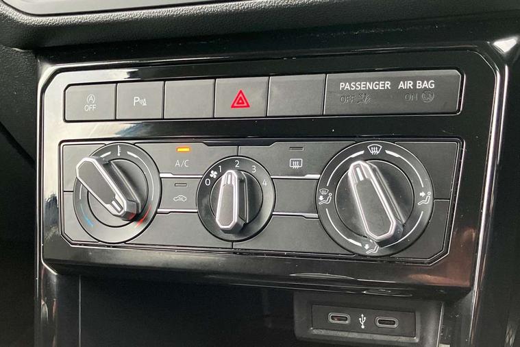 'Lights On' Reminder warning buzzer, Adaptive cruise control including front assist, forward collision warning, autonomous emergency braking, speed limiter, Blind spot monitoring, Bluetooth telephone and audio connection for compatible devices, Car information display, Driver alert system, eCall emergency call system, Lane assist, Low washer fluid warning light, Multifunction computer with visual gear change recommendation for fuel consumption, Operating permit alteration, Power assisted speed sensitive steering, Speedo, rev counter, electronic odometer, trip, service interval display, exterior temperature and fuel gauge, Stop/start system, Warning sound and light for doors and tailgate open, Warning sound and light for front seatbelts unfastened, We Connect Go Dongle, Wireless Car net app connect with Apple CarPlay, combined functionality of Apple CarPlay/Android Auto and MirrorLink, Battery regeneration during braking, Misfuel prevention device, 2x USB connection with USB charging sockets and in rear centre console, DAB Digital radio receiver, Diversity antenna for FM reception, Multi device interface (MDI) with USB connection, Music playback - MP3, WMA and AAC files, Premium USB cable for Apple or Android smartphone compatibility, Simultaneous pairing of 2 compatible mobile devices, Title and cover art display, Automatic hazard lights activation under emergency braking, Black door mirrors, Black roof rails, Body colour door handles, Body coloured bumpers, Dusk sensor + automatic driving lights, Electrically foldable, adjustable and heated door mirrors with reverse activated kerb view adjustment on passenger's side, Front and rear electric windows, Front fog lights with static cornering function, Galvanised body, Heated rear window, LED third brake light, Lower door sills and door pillars in black, Radiator grille with high gloss surface and chrome strip, Rear fog light on one side, reversing light on both sides, Rear lights incorporating LED technology, Rear side wing doors, Rear tinted glass 65% approx light absorbing from B pillar backwards, Rear window aerial, Rear windscreen washer and wiper with interval delay, Reflectors in all doors, Tailgate with integrated roof spoiler, Windscreen wipers/ intermittent wipe + 4 position delay, 12V Accessory socket in centre console, 3 rear head restraints and 3 rear three point seat belts with ECE label, 3 seat bench in 2nd row, 60/40 split folding rear seat backrest, Comfort front sport seats, Diag cloth upholstery, Drawer under drivers seat, Driver and front passenger sunvisor with vanity mirror, Driver's sunvisor with ticket holder, Dust and pollen filter, Front + rear carpet mats, Front and rear reading lights X 2, Front centre armrest with storage compartment, Front seat back storage pockets, Front seats with adjustable lumbar support, Glovebox, Heating and fresh air system with 4 stage blower, Height/reach adjust steering wheel, Instrument lighting white adjustable panel illumination, Interior light with delay, Isofix child seat preparation for 2 rear child seats, Luggage compartment cover, Luggage compartment lighting, Manual air conditioning, Moveable and foldable Rear bench seat, Single front passenger seat, Storage compartment in drivers and front passengers door, Three spoke multi-function leather trimmed steering wheel and gearknob, Variable boot floor, Anti-lock Braking System (ABS) with Hydraulic Brake Assist (HBA), Automatic post collision braking system, Driver and front passenger safety-optimised head restraints, Drivers and Front Passengers airbags with front passengers airbag deactivation switch, ESC with EDL, ASR, EDTC and trailer stabilisation function, Extended and proactive pedestrian protection, Front and rear curtain airbags, Front disc brakes and rear drum brakes, Front seat side impact airbags, Height adjustable 3 point automatic front seatbelts with pretensioners, Hill start assist, Pre crash preventive occupant protection, Rear door child safety locks, Rigid safety cell with front and rear crumple zones, Single torn horn, Tyre pressure loss indicator, Volkswagen roadside assistance, Alarm with interior protection and deactivation via infotainment system, Child security locks in rear doors, Electronic engine immobiliser, Remote tailgate unlocking using key fob, Decorative inserts transition high gloss black/platnium grey, 17" Manila black diamond turned surface alloy wheels + anti theft wheel bolts, Breakdown kit,