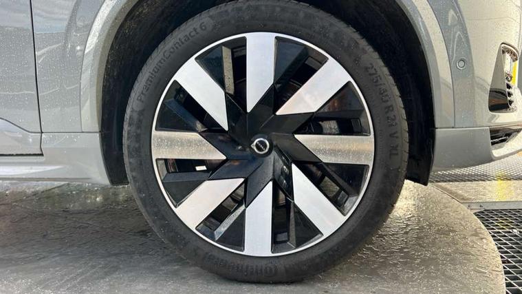 12.3" Progressive Driver Display, 360 degree surround view parking camera with side proximity sensors, 9" centre console portrait touch screen, Adjustable steering wheel force, Bluetooth hands free telephone connection, Drive mode settings, Driver alert control with lane keeping aid, Driver assistance (pilot assist and adaptive cruise control), Driver awareness - Blind spot information system with steer assist, cross traffic alert with autobrake and rear collision warning and mitigation, Emergency call service, Front and rear park assist, Google Automotive Services - Navigation with Voice recoginition and google assistant, Handsfree power tailgate opening and closing, Oncoming Lane Mitigation, Power operated tailgate, Service interval indicator, Speed limiter, Speed sensitive steering, Trip computer, Volvo on call, Wireless Mobile Phone Charger, 3.7 kW monophase on board charger, 6m 3 phase 16amp Type 2 / mode 3 charge cable, 7m 10amp charge cable with 3 pin plug, 8 speed automatic transmission with start/stop + manual change functions, Electric rear axle drive, Lithium-ion battery, On board charger - 6.4 kW 2 phase/3.7kW single phase, Recharging port located in nearside front wing, Touring chassis, DAB Radio (Digital Audio Broadcasting), Low speed exterior sound speaker, Premium Sound by Harman Kardon, dirac unison, dolby pro logic II surround sound, 13 speakers/600W output and fresh air subwoofer, Steering wheel remote infotainment controls, Active bending headlights with adaptive shadow technology, Adaptive brake lights with high level LED brake lights, Auto dimming interior + exterior mirrors, Auto folding and heated power door mirrors, Automatic headlight levelling system, Automatic LED Headlights + Active high beam incorporating daytime running lights, Body colour bumpers, Front and rear power windows, Headlight cleaning system, Heated front windscreen, High gloss black door mirrors and window surround, High gloss black front and rear bumper deco, High gloss black mesh front grille with surround, Home safe and approach lighting, Integrated roof rails in high gloss black, Power glass tilt and slide panoramic sunroof with sun curtain, Puddle lights, Rain sensor with automatic windscreen wiper activation, Rear side wing doors, Rear wash/wipe with intermittent wipe setting, Roof antenna, Roof spoiler, Visible VIN plate, 12V socket front tunnel console, rear passenger compartment and cargo area, 2 seat bench in 3rd row, 2nd Row centre armrest with and cupholders, 3 seat bench in 2nd row, 4 zone electronic climate control with Clean zone air quality system + pollen filter, A-pillar parking ticket holder, Advanced interior air cleaner PM2.5, Air conditioning for 3rd row of seats, Ambient door and instrument panel lighting, B Pillar ventilation, Bright metal luggage threshold, Centre console cupholders and storage, Floor mats, Front and rear door pocket and front cupholder illumination, Front and rear reading lights, Theatre lighting and centre armrest storage illumination, Front footwell and side step illumination, Front headrests, Front seat cushion extensions, Heated front seats, Heated rear seats, Heated steering wheel, Height/reach adjustable steering column, Illuminated front and rear tread plates, Illuminated luggage compartment, Illuminated tailgate, Illuminated vanity mirrors + ticket holder, Illumination lockable glovebox compartment, Integrated sun curtains in rear doors, Isofix outer rear child seat preparation in 2nd row, Load protection net, Luggage compartment divider with grocery bag holder, Outboard armrest with cupholder and storage for third row passengers, Power driver seat with multi directional lumbar support and memory for seat and exterior mirrors, Power folding 2nd row headrests, Power passenger seat with multi directional lumbar support and memory, Rear footwell and side step illumination, Rear headrests, Recharge aluminium tread plates, Semi automatic load cover, Single front passenger seat, Underfloor luggage compartment storage, 7 three point seatbelts, City safety with steering support includes pedestrian, cyclist and large animal detection and front collision warning with full auto brake, Drivers knee airbag, Dual stage driver/passenger airbags, First aid kit, Front seats SIPS airbags, Hill descent control - off drive mode, Hill start assist, IC (Inflatable Curtains) - Full Length, Passenger airbag cut-off switch, Power child locks on rear doors, Power parking brake with auto hold function, Road sign information display, Run off Road Mitigation, Run off Road Protection, Seatbelt reminder and pretensioners for all seats, SIPS (Side Impact Protection System), Slippery road and hazard light alert, Stability and Traction Control with Spin control, Engine Drag Control and Corner Traction Control, Tyre pressure monitoring system, Vehicle deceleration control with Anti-lock Brake System, Electronic Brake Distribution and Emergency Brake Assist, Warning triangle, WHIPS whiplash protection system - front, Anti-theft alarm including immobiliser/volume sensor + level sensor, Care key with user defined top speed, Key integrated remote control central locking + fuel flap with deadlocking system and auto open/close power windows, Keyless drive includes keyless entry and keyless start, Locking wheel nuts, Private locking for glovebox and tailgate, Tailored Instrument Panel and Door Tops with Contrast Stitching, Tyre sealant kit and compressor,