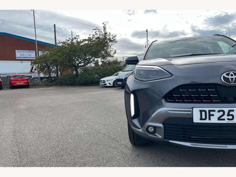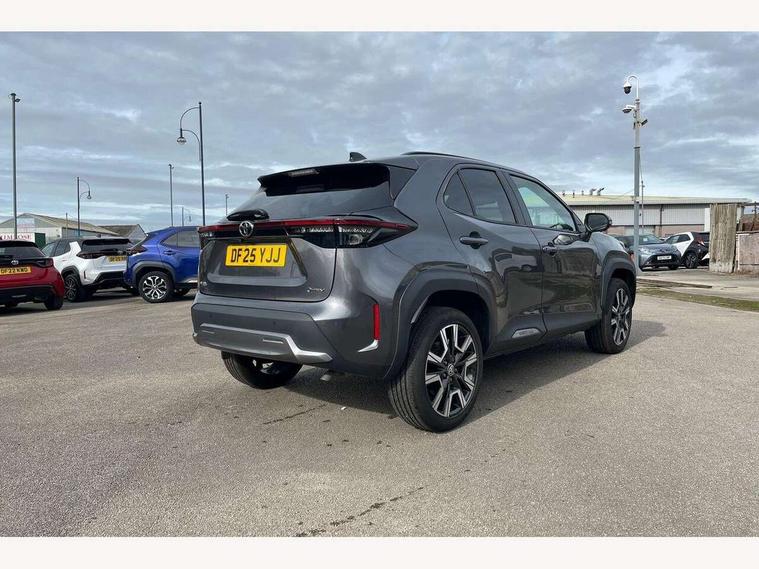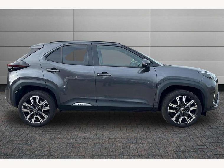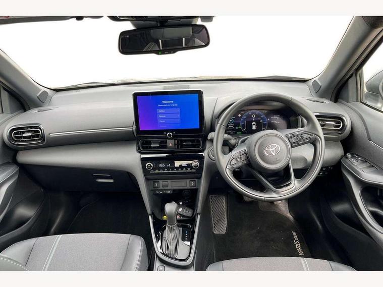 10.5" Multimedia display screen, 10.5" Toyota smart connect+ with navi multimedia system with wireless Smartphone integration incl Apple CarPlay, 360 degree panoramic view monitor, 7" Multi information display screen, Adaptive cruise control, multi info switches on steering wheel, Adjustable speed limiter, Advanced parking assist, Blind spot monitoring, Bluetooth connectivity, Color multi-information display, Digital speedometer, Digital tachometer, Drive mode selector, Driver attention alert system, Dynamic guide lines on reversing camera, eCall emergency system, Electric power steering, Emergency driving stop system, Full range intelligent adaptive cruise control, Hybrid system indicator, Intelligent front and rear parking sensors with clearance sonar and automatic braking, Intersection turn assist, Key reminder warning, Lane change assist, Lane trace assist, My T Connected services, Power tailgate, Pre-collision system enhanced with emergency steering assist, Rear cross traffic alert, Remote boot door release in cabin, Road sign assist - RSA, Safe exit assist, Tailgate, Telephone switch on steering wheel, Wireless Mobile Phone Charger, Steering assisted vehicle stability control, 6 speakers, DAB Digital radio, Front USB Type-C connector, Front USB-C device charger, Acoustic windscreen glass, Anti-jam protection on power windows, Auto dimming rear view mirror, Auto high beam [AHB] with on/off switch, Auto intermittent windscreen wipers, Automatic headlights, Automatic headlights cut-off, Automatically retractable door mirrors, Black door moulding, Black lower front grille, Black protection moulding on side doors, Black roof rails, Black wheel arch mouldings, Body colour door handles, Body colour front bumper, Body colour rear bumper, Electric adjustable heated door mirrors, Follow me home headlights, Front and rear electric windows with auto up/down function, Gloss black upper front grille, Headlight cut off reminder, Indicators integrated on door mirrors, Intermittent rear wiper, Kick activated power back door, LED 3rd brake light, LED daytime running lights guide, LED front fog lights, LED front light guide, LED Indicators, LED projector headlights, LED rear lights with sequential indicators, Manual headlight levelling, Meshed upper front grille, Noise reduction layer on windscreen, Pre wiring for towing hook, Privacy glass, Rain sensor, Rear roof spoiler, Rear side wing doors, Rear window defogger, Shark fin antenna, 12v power outlet - front, 12V power point in boot, 2x Rear coat hooks, 3 seat bench in 2nd row, 3 spoke leather steering wheel, 40/60 split deckboard, 40:20:40 split folding rear bench seat, Adjustable rear headrests, Adjustable speed limiter switch on steering wheel, Boot light, Central armrest, Driver and front passenger personal lights, Driver and front passenger Whiplash injury Lesseing seats, Driver and passenger seatback pockets, Dual zone automatic air conditioning, Fabric door trim, Front console box, Front cup holders, Front door pockets, Front head restraints, Front sport seats, Front/rear assist grips, Gear shift indicator, Grey roof lining, Heated driver and passenger seats, Heated steering wheel, Height adjustable driver's seat, Height adjustable front passenger seat, Hooks for luggage holding belts, ISOFIX child restraint system, Lane departure alert switch on steering control, Leather gearshift, LED centre room light, Light on driver and passenger sun visor, Manual telescopic and tilting steering wheel, Mirror on driver and passenger sun visor, Nanoe-X air purifier, Partial synthetic leather upholstery, Pollen air filter, Power adjustable lumbar support on driver seat, Rear cup holders, Rear door pockets, Rear head restraints, Remote air-conditioning system, Single compartment glovebox, Single front passenger seat, Soft tonneau cover, Storage box under boot floor, Voice recognition switch on steering wheel, White ambient lighting in centre console, White ambient lighting in footwell, White ambient lighting on front doors, Yaris cross floor mats, Tech pack - Yaris Cross, 3x3 point rear seat belts, ABS+EBD+Brake assist, Downhill Assist Control (DAC), Driver and passenger central airbags, Driver and passenger front airbags, Driver and passenger side airbags, Electronic parking brake, Emergency brake light system (EBS), Front seat belt reminder, Hill start assist control (HAC), Passenger airbag on/off switch, Pre-collision system with pedestrian and cyclist detection, Rear door child safety locks, Rear passenger side airbags, Rear seat belt reminder, Traction control, Tyre pressure warning system, Immobiliser, Intrusion alarm, Keyless smart entry with push button start, Power door locks, Power passenger window lock, Remote door lock, Gloss black side air vent surrounds, Tyre repair kit,