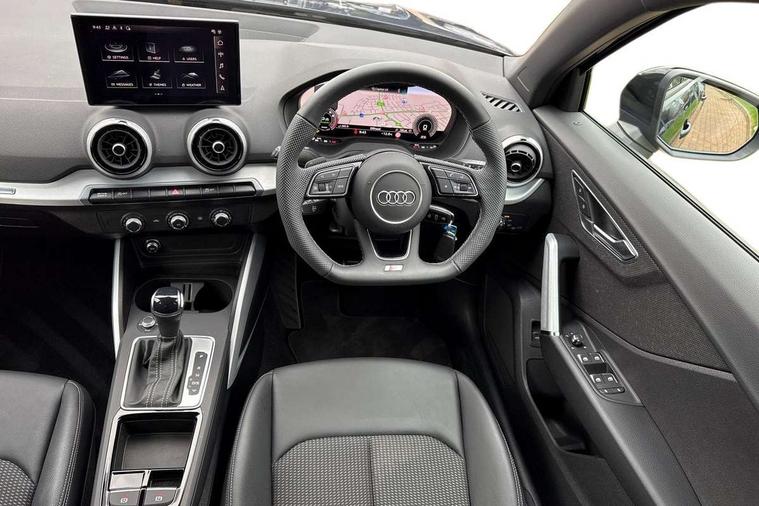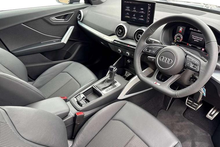 3D map display, Audi connect navigation and infotainment includes innovative services, Audi connect remote and control connects your vehicle to your smartphone, Audi drive select: S tronic - power steering assistance + engine + gearshift (modes: comfort, auto, dynamic, efficiency, individual), Audi smartphone interface - Apple carplay/Android Auto, USB connect, 2xSDXC card readers, voice control for navi, telephone, music and 3rd party apps, Audi virtual cockpit, Automatic start/stop system with recuperation, Bluetooth interface includes bluetooth audio streaming, Camera based traffic sign recognition, Cruise control, Distraction and Fatigue warning, E-call, Jukebox hard drive memory for music (10GB), Lane departure warning, MMI navigation plus with 8.8" touchscreen, Natural voice recognition, Power operated tailgate, Progressive steering, Rear parking sensors, Sport suspension, 6 passive loudspeakers, DAB Digital radio, USB type C port, Audi beam, Auto dimming rear view mirror, Black window trims, Bumper in full body colour paint finish, Electrically adjustable, folding, auto dimming and heated door mirrors with integrated LED side indicators, Front windscreen with grey tinted sunband, LED daytime running lights, LED headlights with dipped beam, high beam, position lights, indicators, LED rear lights, LED third brake light, Privacy glass - dark tinted rear and rear side windows from B-pillar backwards, Rear side wing doors, Rear wiper, Variable front intermittent wipers, Wheel arch trims in manhattan grey, 12v socket in front, 3 seat bench in 2nd row, 3 spoke flat bottomed multi-function leather sport steering wheel with gear shift paddles, 4-way electric lumbar support for front seats including manual seat height adjustment for both front seats, 60/40 split folding rear seat bench, Black carpets, Black cloth headlining, Front and rear head restraints, Front centre armrest, Front sport seats, Front/rear floor mats, Height/reach adjust steering wheel, Illuminated door sill trims with S logo, ISOFIX child seat mounting in front passenger and rear outer seats, Manual air conditioning, Single front passenger seat, Stainless steel pedals, Black styling pack - Q2, 3x3 point rear seatbelts, 6 airbags - Front, curtain and front side airbags, Electromechanical parking brake, Electronic stabilisation control including ABS, ASR and EDL, Front passenger airbag deactivation, Hill hold assist, Pre-sense front with pedestrian recognition, Seatbelt monitoring, Tyre pressure warning light with visual and acoustic warning, Warning triangle and first aid kit, Anti theft alarm, Anti theft wheel bolts, Electronically operated child locks, Remote central door locking, Aluminium interior element, Black dashboard, Gloss black centre console, Matt brushed aluminium trim inlays, Tool kit,