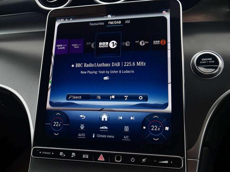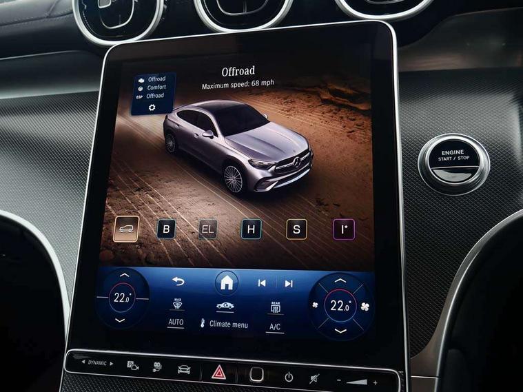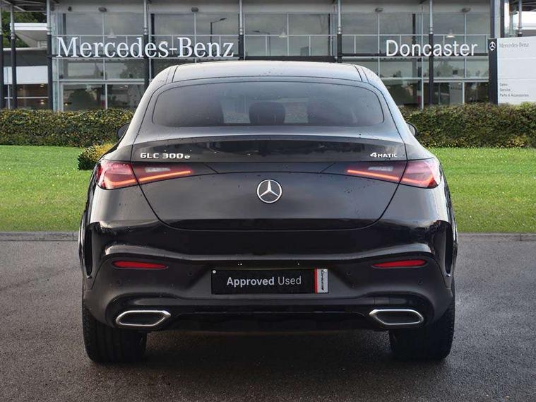 11.9" high resolution multimedia colour display, 12.3" Digital individually configurable instrument display, Acoustic presence indicator, Active lane keeping assist, Attention assist, Blind spot assist, Bluetooth interface for hands free telephone, Collision prevention assist plus, Cruise control with speedtronic variable speed limiter, Direct steer speed sensitive steering, DYNAMIC SELECT with a choice of driving modes (ECO, Comfort, Sport and Individual), Easy pack automatic powered tailgate, eCall emergency call system, ECO start/stop function, Fingerprint scanner, Fluorescent jacket for driver, Instrument display in miles with English lettering, MBUX navigation premium, MBUX voice control activated by keywords "Hey Mercedes", Mercedes me connect, Multi function trip computer, Outside temperature display, Remote and charging services plus, Remote boot release, Service indicator (ASSYST), Smartphone integration, Status display for rear seat belts in instrument cluster, Tailgate, Wireless charging system for mobile devices in the front, 1 x type 2 and 3 phase 4m straight wallbox cable, 49 litre fuel tank, 4MATIC permanent four wheel drive, 7.4 kW monophase on board charger, 9G TRONIC plus automatic transmission, Alternating current charging system (AC charging), Comfort suspension, DC Charging system, Petrol Particulate Filter (PPF), Self levelling suspension, DAB digital radio tuner, MBUX extended functions, Mercedes benz sound system, Pre installation for Mercedes Benz Link, Adaptive brake lights, Adaptive high beam assist, AMG bodystyling front apron, rear apron and side skirts, AMG Line exterior, Auto headlights, Body colour bumpers, Body colour door mirrors, Electrically adjustable door mirrors, EQ Hybrid badging on front wings, Front and rear electric windows, Headlight washers, Heat insulating dark tinted glass, Heated rear window, High level LED brake light, LED high performance headlamps with integrated LED daytime running lights, LED indicator lights, LED rear fog lights, LED tail lamp, Radiator grille with Mercedes Benz pattern and integreated Mercedes star and louvre in dark grey matt with chrome inlay and black frame, Rain sensor windscreen wipers, Range adjustable headlights, Rear side wing doors, Rear wiper, Two chrome plated tailpipe trim elements, Variable front intermittent wipers, Welcome and follow-me home light functionality, Wheel arch liners in the vehicle colour, 3 seat bench in 2nd row, 40:20:40 split folding rear seats, Ambient lighting, AMG floor mats, AMG line interior, Artico man-made leather/Microcut microfibre upholstery, Audio and onboard settings control on multifunction steering wheel, Automatic child seat recognition sensor, Black fabric roof lining, Double cup holder in centre console, Easy-pack removable load compartment cover, Front centre armrest with stowage compartment, Front head restraints, Galvanised steering wheel gearshift paddles, Heated front seats, Height/reach adjustable steering column, Illuminated glove compartment, Instrument panel and beltlines in ARTICO manmade leather in nappa look, Multifunction sports steering wheel in nappa leather, Rear centre headrest, Rear head restraints, Rear top tether child seat ISOFIX attachment, Single front passenger seat, Sports pedals with stainless steel surfaces and rubber studs, Sports seats, Sun visors, THERMATIC 2 zone automatic climate control, Anti theft protection package - GLC, Boot comfort package - GLC, Exterior chrome package - GLC, Interior chrome package - GLC, Interior lighting pack - GLC, Mirror pack - GLC, Night package - GLC Urban Edition, Parking package with reversing camera - GLC, Seat comfort package - GLC, Stowage space package - GLC 300e/300de, USB Package - GLC, 3 rear 3 point seatbelts, Active braking assist, Anti-lock braking system (ABS), ASR traction control, Automatic front passenger airbag deactivation, Black seat belts, Brake calipers with Mercedes-Benz lettering + perforated brake discs, Child proof door locks, Dual-stage airbags - driver and front passenger, driver knee bag and window bags for driver, front passenger and rear passengers, Electronic parking brake, Electronic stability programme (ESP) with curve dynamic assist and cross wind assist, Front and rear seatbelt reminder, Front passenger seat occupancy sensor, Front seatbelt pretensioners, Hill start assist, Tyre pressure monitoring system, Warning triangle and first aid kit, Automatic door locking, Guard 360 degree vehicle protection plus, Interior protection/immobiliser, Keyless Go starting function, Remote central locking, Silver grey diamond pattern trim with centre console in criss cross look, 20" AMG multi spoke light alloy wheels in painted black rim flange with high sheen finish, Summer tyres, TIREFIT with tyre inflation compressor,