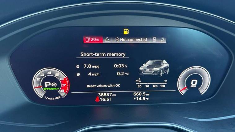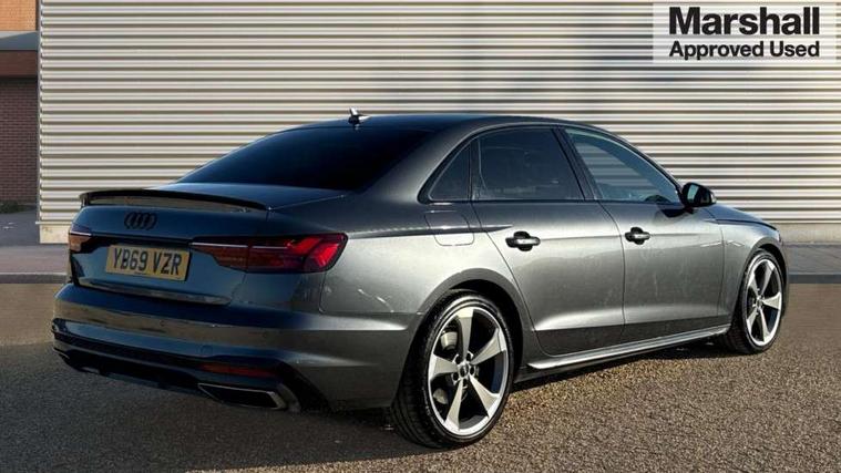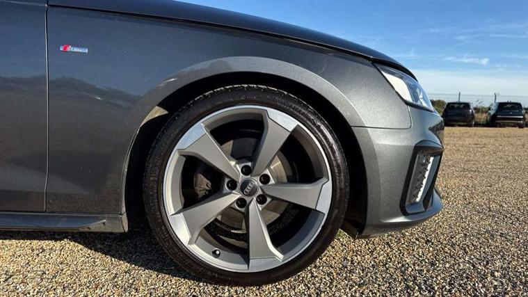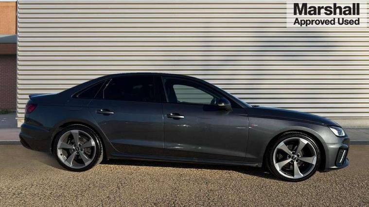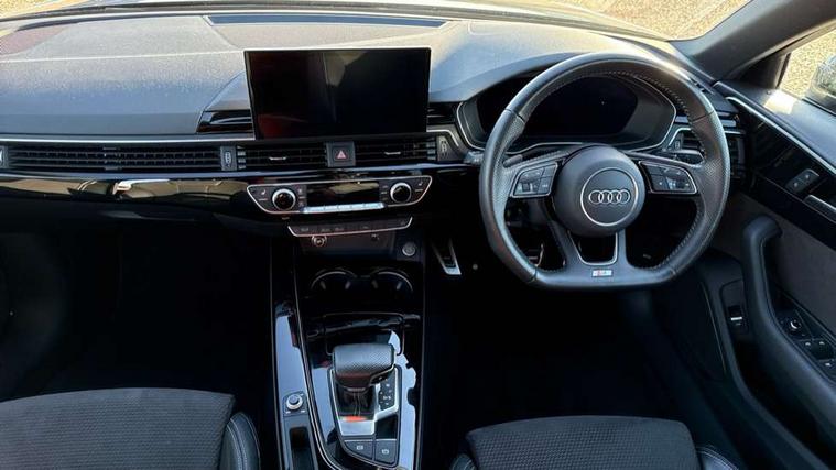 Audi connect safety and service (e-call), Audi drive select, Audi parking system plus with front and rear sensors, Audi smartphone interface, Audi virtual cockpit, Automatic start-stop system with coasting functionality and efficiency programme, Bluetooth interface, Electric boot lid release, Electromechanical power steering, MMI Navigation plus with MMI touch includes 10.1" high resolution colour MMI display, 3D map, Rear view camera, Voice control system, 54 litre fuel tank, Sports suspension lowered by 23mm, 2 USB charging ports, 8 passive loudspeakers, DAB digital radio reception, Auto dimming rear view mirror, Body colour door handles, Body colour front spoiler lip, Body colour side sill trim, Electrically folding auto dimming/adjustable/heated door mirrors with LED side indicators and kerb view function for passenger side, Grained matt black side air inlets with matt aluminium silver inlay, High beam assistant, LED headlights with LED rear lights + dynamic rear indicators + headlight adjustment and high beam, turning light + LED daytime running lights, Matt aluminium silver tailpipe trim, New design rear diffuser, Privacy glass, Rain and light sensors, S Line badges on the front wings, S line front and rear bumpers with side skirts, S Line rear diffuser in matt titanium black with trim strip in matt aluminium silver, Windscreen with acoustic glazing, 3 spoke flat bottomed high multi-function leather sport steering wheel with gearshift paddles, 4 way electric lumbar support for driver and front passenger, 40/20/40 split folding 3 rear seat bench in 3 parts with rear centre armrest, Black cloth headlining, Black perforated leather gearknob, Contrast stitching on seats, steering wheel and gear lever gaiter, Deluxe 3 zone electronic climate control, Door sill trims with aluminium inlay, Front and rear head restraints, Front centre armrest, Heated front seats, Illuminated door sill trims with S logo, ISOFIX child seat mounting and top tether, Manual seat adjustment, Stainless steel pedals and foot rest, LED Interior light pack - A4/S4, Titanium black styling pack - A4 Saloon, 3 rear seatbelts, 6 airbags - Driver, front passenger, curtain and side windows, Electronic Stabilisation Control (ESC) including ABS, ASR and EDL, Hill hold assist, Multi collision brake assist, Pop-up bonnet for pedestrian protection, Pre sense city, Seatbelt monitoring, Warning triangle and first aid kit, Anti theft alarm, Anti theft wheel bolts, Keyless Go, Piano black finish inlay, 19" 5 arm rotor design alloy wheels titanium matt look, Tool kit, Tyre repair kit,