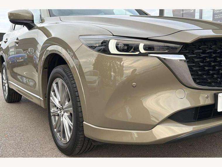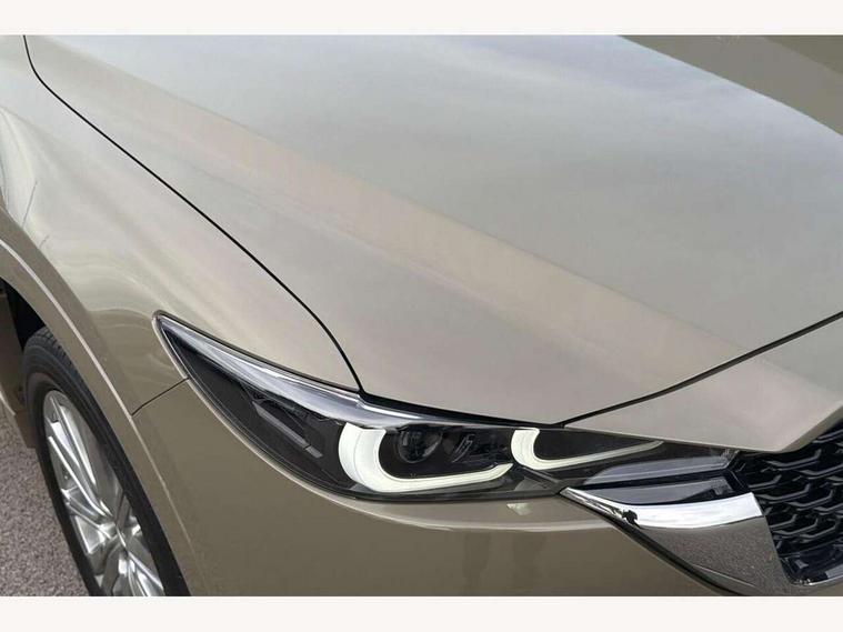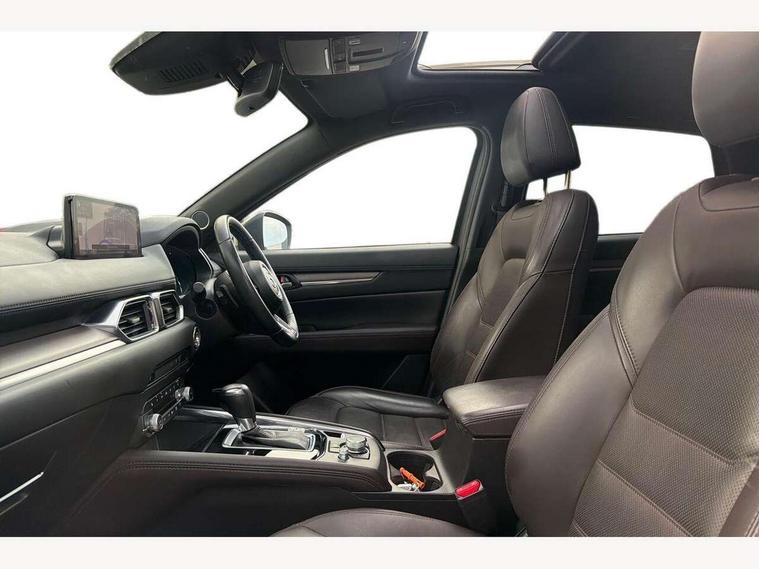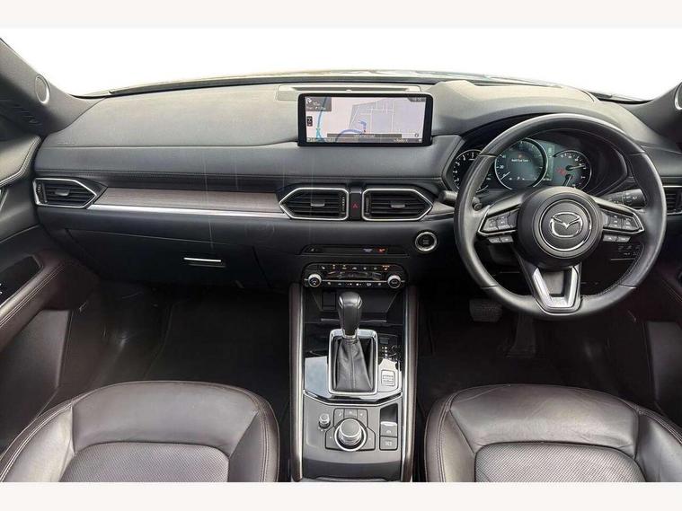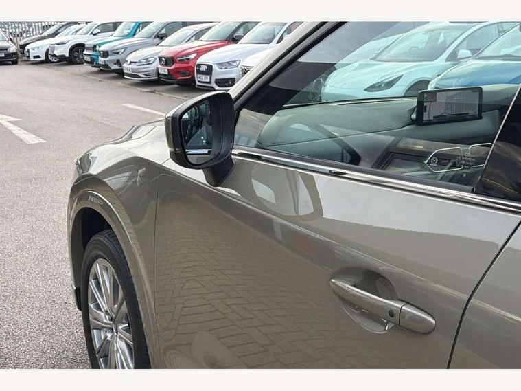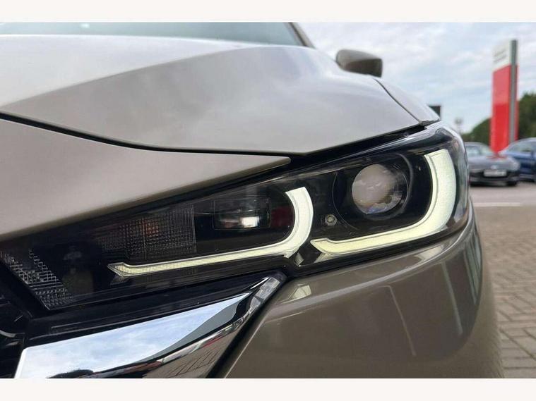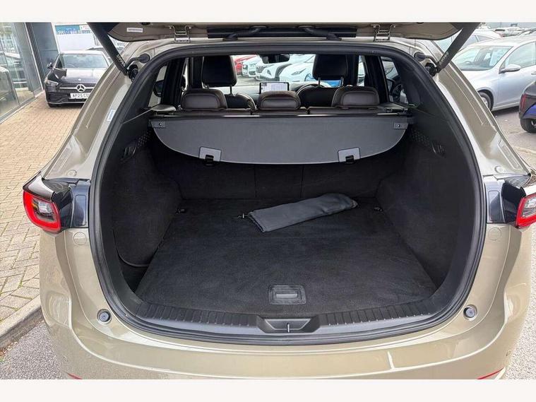 10.25" display with Mazda Connect infotainment, 360 degree surround camera, 7" colour TFT display, Advanced blind spot monitoring, Bluetooth connectivity with voice control, Collision prevention assist, Connected services, Cruising Traffic Support, Drive mode selector, Driver attention alert system, Electric power steering, Emergency stop signalling system, Engine start/stop button, Forward collision warning, Front and rear parking sensors, Integrated navigation system, Intelligent speed assist, Lane departure warning system, Lane keep assist, Power liftgate, Qi wireless phone charging, Radar cruise control with Stop and Go, Rear cross traffic alert, Service indicator, Traffic sign recognition (TSR), Trip computer, Windscreen projected colour active driving display (HUD) with memory, Wireless apple car play/android Auto, Cylinder Deactivation, i-stop, AM/FM radio, Bluetooth audio streaming, Bose premium sound system with 10 speakers, DAB Digital radio, Multimedia Commander including separate volume dial, Steering wheel mounted audio controls, Adaptive LED Headlights, Automatic headlights, Body colour door mirrors, Body colour roof spoiler, Body coloured front and rear lower bumper mouldings, Body coloured tire arch and side mouldings, Coming/leaving home lighting function, Door mirror integrated indicators, Dual large chrome tailpipes, Dusk sensitive headlamps, Electric front/rear windows with one touch auto up/down, Frameless auto dimming interior rear view mirror, Front grille in gloss black finish, Front grille in gloss black with black accent + chrome signature wing, Gloss black B and C pillars garnish, Gloss black front grille accent, Intermittent rear wash/wipe, LED auto levelling, LED daytime running lights, LED front fog lights, LED third brake light, Power folding and heated door mirrors, Power tilt/slide sunroof, Privacy glass (rear side windows only), Rain sensing front wipers, Real wood inlay dashboard panel, Rear side wing doors, Scuff plates, Shark fin antenna, Signature LED rear combination lights, Variable intermittent front wash/wipe, Vinyl with real wood inlay door trim panel, Windscreen wiper de-icer, 12v electrical power outlet, 3 seat bench in 2nd row, 3 stage heated front seats, 40:20:40 Karakuri fold-flat seat system, 6 way electric adjustable passenger seat, 8 way electric driver seat with lumbar support + memory, Black roof lining, Cargo room flat floor board with waterproof undertray, Driver seat power slide, recline and height adjustment, Driver, Front passenger and two rear grab handles with coat hooks, Driver/passenger front seatback pockets, Driver/passenger sunvisors + illuminated vanity mirrors (drivers with ticket holder), Dual zone climate control, Folding centre armrest with 2 cup holders, Front and rear door pockets, Front centre storage with two cupholders, Front passenger seat power slide, recline and height adjustment, Front seat ventilation, Heated outer rear seats, Heated steering wheel, Humidity sensor, Illuminated glovebox, Interior dome light with integral spotlight, ISOFIX child seat anchorage points attached on outer rear seats, Karakuri tonneau cover, Leather gear knob, Leather steering wheel with unique stitching and chrome centre bezel, Luggage compartment LED lighting, Luggage compartment power outlet, Nappa leather upholstery, Paddle shifts, Rear air vents, Rear headrests, Rear seat recline, Roof mounted sunglasses holder, Single front passenger seat, Three height adjustable head restraints, Tilt/height adjustable steering wheel, USB Connectivity (2x front Type-C, 2x rear Type-B), White interior LED illumination lighting, 3 point front seatbelts with pre-tensioners, 3 rear 3 point seatbelts, ABS, Advanced Smart City Brake Support - SCBS, Child locks on rear doors, Driver and front passenger side airbags, DSTC-Dynamic Stability and Traction Control, Dual front airbags, Electronic brake force distribution, Electronic parking brake with auto hold, ESP, Front and rear curtain airbags, Front passenger airbag deactivation, G-Vectoring control, Hill hold assist, Rear smart city brake support, Seatbelt reminder front and rear, Single stage passenger airbags, Smart brake support with forward obstruction warning, Tyre pressure monitoring system, Automatic door locking when moving off, Deadlock, Immobiliser, Power door locks, Remote central locking, Smart keyless entry, Thatcham Cat.1 alarm, Upper dashboard and door cards wood trim, 19" exclusive design bright alloy wheels, Tyre repair kit,