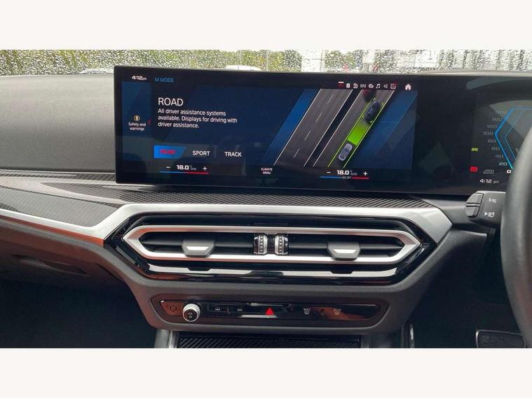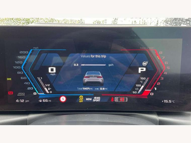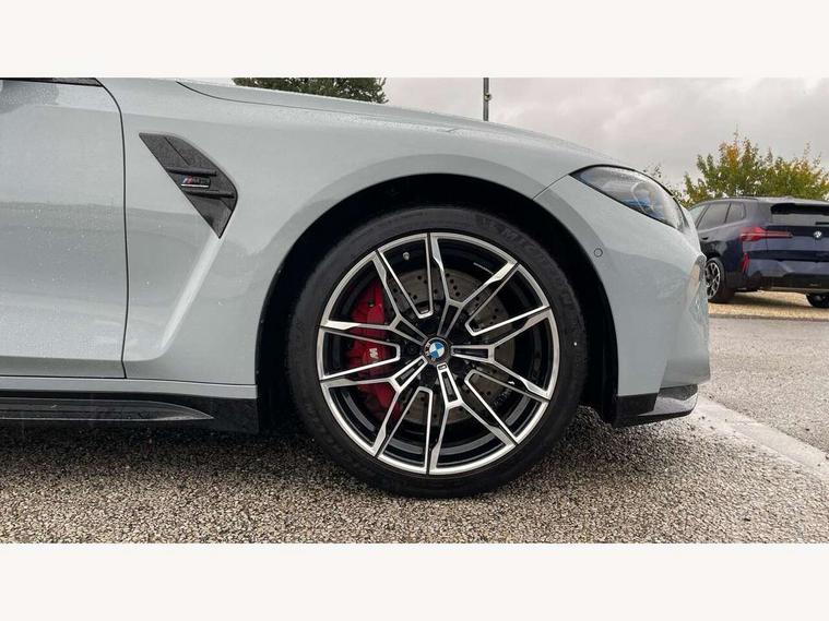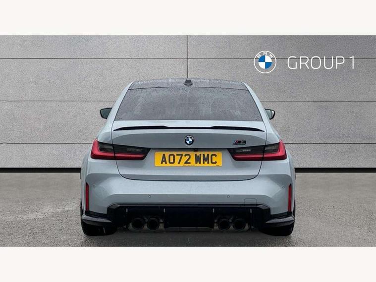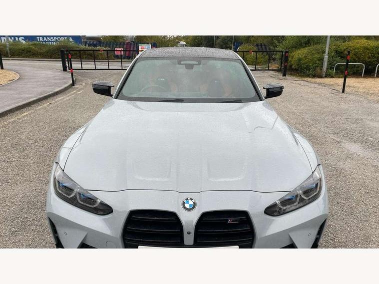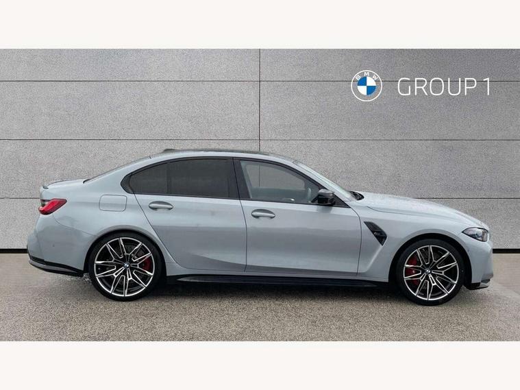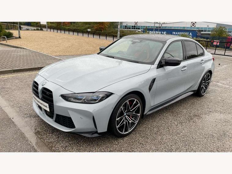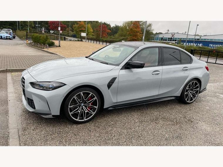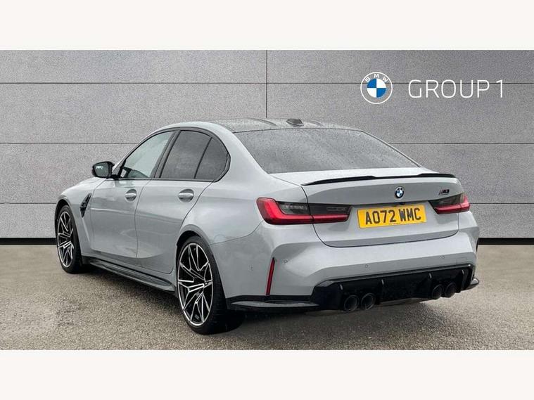 Active guard plus, Automatic start/stop system, Bluetooth functionality with Apple CarPlay/Android Auto, BMW iDrive controller on centre console, BMW legal emergency call, BMW Live Cockpit Professional sat nav system with 12.3" instrument display and high resolution control display, BMW Online services, BMW Teleservices, Brake pad wear indicator warning light, Condition based service, Connected drive services, Door/boot open warning light, Driving experience switch, Head up Display, Illuminated control elements, Instrument cluster with extended contents, Lights on warning, M drive buttons, Oil sensor for level and grade, warning by check control system, Oil temperature gauge, On board computer, On board diagnostics, Optimum shift indicator, Outside temperature display, Pull away assistant, Run flat indicator, Service interval indicator, Shifting point display, Speed limiter, Variable sport steering, Wi-Fi hotspot, Widescreen display, Adaptive M Sport suspension, Double joint spring strut front axle, M Drive Professional including track mode, laptimer, traction control & Drift analyser, M Sport differential, M steptronic sport transmission with drivelogic, Safety battery terminal clamp, 8 programmable favourite buttons, Auxiliary point for auxiliary devices, BMW professional radio/CD/MP3, DAB Digital radio, Harman/Kardon loudspeaker system, 3rd brake light, Acoustic glazing, Auto dimming driver's door mirror, Auto dimming rear view mirror, Automatic headlights + automatic windscreen wipers, Black chrome exhaust tailpipes, Black model designation badges, BMW emblem on engine compartment lid and tailgate, BMW high gloss shadow line with extended contents, BMW Individual shadowline lights, Body colour bumpers, Body colour door handles, Carbon fibre reinforced plastic (CFRP) roof with high gloss black roof aerial bulge and roof mouldings, Day time running light, Door mirror integrated indicators, Door sill finishers with aluminium inserts, Dynamic brake lights, Electric adjustable heated door mirrors, Electric folding door mirrors, Electric front and rear windows with one touch/convenient open/close function, Follow me home headlights, Front and rear apron plastic in body colour, Front and rear bumper system, Headlight beam throw control, Heat protection, sun protection glazing, Heated rear window with automatic switch off, Heated washer jets, High beam assistant, High gloss black frameless kidney grille with M badge, High gloss black lower bumper edges, side sills and diffuser edge binding, LED number plate light, LED tail lights with 3D L-shaped LED light design, M designation, M Sport entry door sill strips, Mirror glass aspheric on driver's side, convex on passenger side, Rear boot, Rear fog lights, Rear reflectors, Rear right M3 competition inscription, Rear side wing doors, Reversing light, Shark fin roof aerial, Strakes in front side panel, black matt/black high-gloss, with model badge, Visible VIN plate, Welcome lighting, 2 front cupholder in centre console with clamping elements and matt black inlay, 2 x 12 V Power sockets (luggage compartment and front centre console), 2 x USB Type C ports for charging and data transmission in front centre console, 2 x USB Type C ports for charging in rear centre console, 3 folding rear headrests, 3 seat bench in 2nd row, Ambient inside door handle light, Ambient lighting for instrument panel, Ambient lighting for storage compartment, Ambient lighting front and rear, Ambient lighting in door panels, Anthracite headlining, Battery in luggage compartment, Carbon fibre centre console incl. cover for cupholders and storage compartment, Carbon fibre decorative steering wheel finishers, Carbon fibre shift paddles, Carbon fibre strip in instrument panel on front passenger side, Centre console armrest with storage compartment, Compartment in front of cupholder, Driver/passenger sunvisors with illuminated vanity mirrors + covers, Dynamic ambient interior lighting, Electric front seats + driver memory, English handbook, Floor mats in velour, Folding rear centre armrest with 2 cupholders, Footwell lighting, Front and rear ambient footwell lighting, Front and rear door exit lights, Front door storage bins with bottle holder, Front interior light, Front isofix attachment + airbag deactivation, Front seat backrest width adjustment, Front seats lumbar support, Front/rear door armrests, Gearshift lever with embossed M badge, Heated front seats, Height adjustable front headrests, Interior mirror lighting, Isofix on 2nd row outer seats, Lockable/illuminated glovebox, Luggage compartment lighting, Manual 40:20:40 split folding rear seat with two tilt positions for backrest, Multifunction steering wheel, Rake/reach adjustable steering wheel, Single front passenger seat, Storage compartment in rear doors, Three zone automatic air conditioning, Through loading system, Toolkit located in luggage compartment, Wireless charging tray, Additional storage compartment pack - M3, Connected package professional - M3, High gloss shadowline exterior trim pack - M3, 3 point seatbelts on all seats, ABS/EBD, Automatic Stability Control (ASC), Brake energy regeneration, Brake fade compensation, Compound structure brake discs, Cornering brake control (CBC), Crash sensor, Driver/Front Passenger airbags, Dry braking, Dynamic brake control, Dynamic Stability Control with M Dynamic mode, Dynamic Traction Control - DTC, Electromechanical parking brake, Electronic differential lock control (EDLC), Front and rear head airbags, Front seat side impact airbags, Front seatbelt pretensioners + load limiters, Hill start assist, M Sport seat belts, Rear child proof door locks, Seatbelt warning, Side impact protection, Two tone horn, Tyre pressure sensor, Warning triangle and first aid kit, Centre lock switch, Closing system with central locking, Digital key, Electronic immobiliser, Thatcham cat 1 remote alarm, Vehicle Key with 4 buttons including the integrated key, Galvanic finish to control surroun