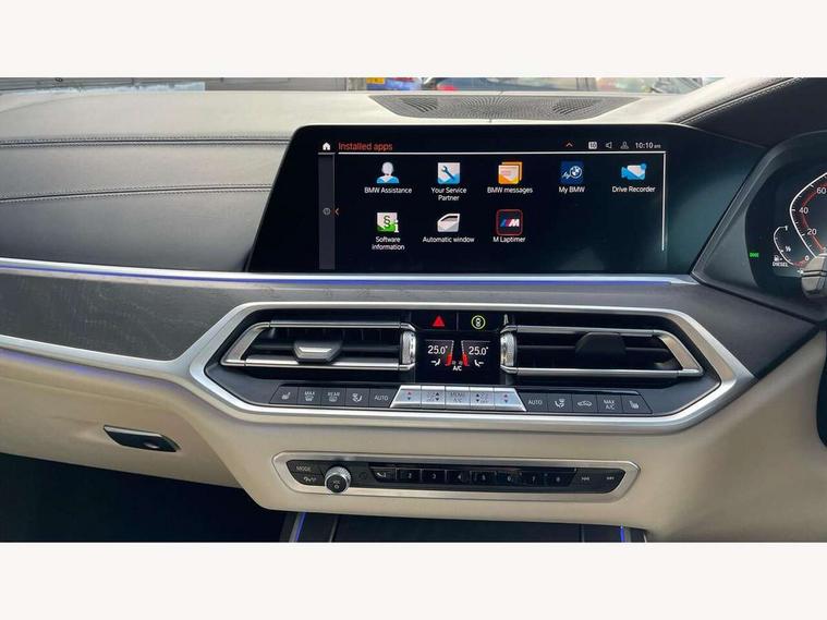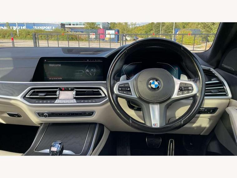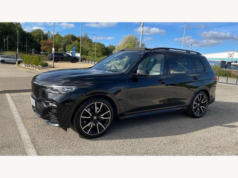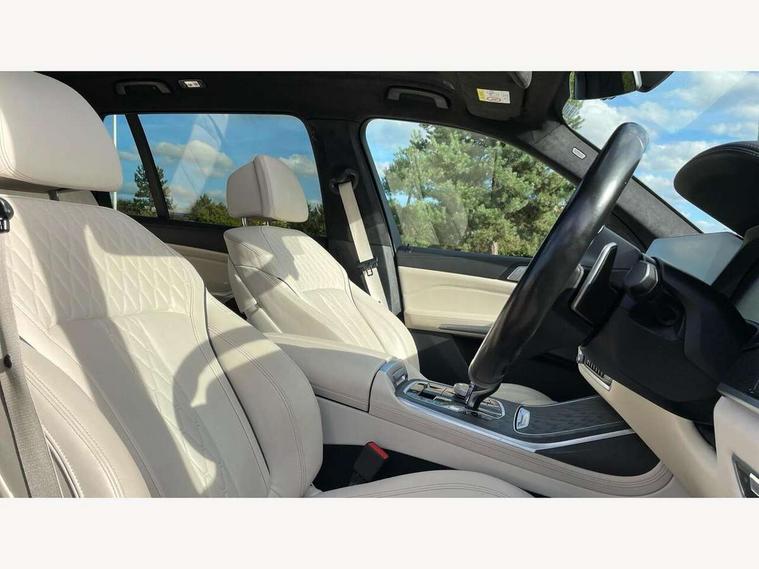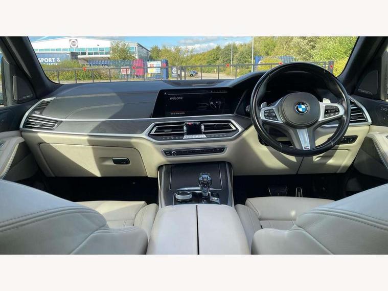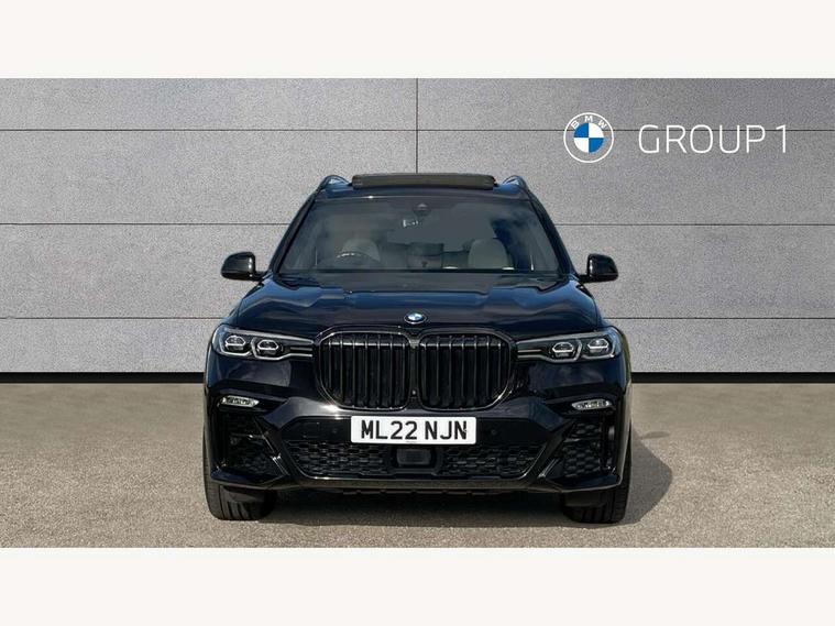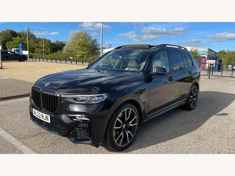 20GB hard disc drive (HDD) memory, Active guard plus, Attentiveness assist, Automatic tailgate operation, BMW digital live cockpit professional - 12.3" digital instrument panel and 12.3" CID + Intelligent personal assistant, BMW Drive recorder, BMW Head up display, BMW legal emergency call, BMW Online services, BMW Teleservices, Brake force display, Brake pad wear indicator warning light, Connected drive services, Enhanced bluetooth with wireless charging and Wi-Fi hot spot, iDrive controller with shortcut buttons, Oil sensor for level and grade, On board computer inc. average speed, fuel consumption, liquid crystal Info display, journey computer, outside temperature display, personal profile, Parking assistant plus with reversing assistant, surround view system, review camera and active park distance control, Speed limiting function, Stop/start button, 48V Mild hybrid technology, 8 speed automatic with steptronic transmission including launch control and gearshift paddles on the steering wheel, Adaptive 2-axle air suspension, Common rail technology, Diesel particulate filter, Double wishbone front axle, Drive performance control with ECO PRO comfort + sport and adaptive mode, Variable vane geometry, 1 x USB A 1.5A in cupholder, 1 x USB C 3A in centre armrest & 1 x double USB C 3A in rear end of console for 2nd seat row, DAB tuner, Favourite buttons, Gesture control for infotainment system, Acoustic glazing, Active Air Stream kidney grille with high-gloss chrome, Door sill finishers with M designation, Dynamic brake lights with LED technology, Exhaust tailpipes - single, left and right with M Sport-geometry Chrome finishers, Follow me home headlight function, Frameless interior mirror, Front and rear electric windows, Heated windscreen washer jets, High beam assist, LED daytime running lights, LED fog lights, LED rear lights, LED third brake light in rear spoiler, M designation on left and right front side panels, Rain sensor with automatic headlight activation and windscreen wiper control, Rear side wing doors, Welcome light carpet, X7 on left tailgate, xDrive and engine designation on right tailgate, 12V - Power sockets with 2x centre console and 1x luggage compartment, 2 seat bench in 3rd row, 3 seat bench in 2nd row, 3rd row seats, Ambient interior lighting with 6 pre-designed selectable lights including dynamic function, Centre console includes storage compartment, Compartment in front of cupholder, Electrical steering column with adjustable height and length with activation and control on the steering column, Foldable rear centre armrest with 2 cupholders and storage compartment, Front and rear cupholders x 2, Front and rear door pockets, Front and rear door sill inlays with illuminated BMW M designation, Front and rear seat heating, Front and rear side armrests integrated into door trim, Front footwell lights, Front reading lights, Grab handles, Headrests for all seats, Light inside glove compartment, Lockable glove compartment, Luggage compartment floor panel with integral storage tray, M leather steering wheel, M specific key, M specific steering wheel, Make-up mirror lights, Microfilter and active carbon filter, Multifunction controls for leather steering wheel, Multifunctional hooks, Rear centre interior light, Seat back with flap pocket, Single front passenger seat, Soft close function for doors, Sunvisors with illuminated vanity mirrors, Toolkit located in luggage compartment, Velour floormats, Connected Package Professional - X7, Expanded exterior mirror pack - X7, Luggage compartment pack - X7, M aerodynamics pack - X7, Active protection, Airbags - driver, front passenger, front and side head airbags for first and second row seats knee airbag, Anti-lock braking system (ABS), Automatic Stability Control (ASC), Brake energy regeneration, Child locks on rear doors, Child seat ISOFIX attachment rear outer seats in 2nd row and both seats in 3rd row includes top tether, Comfort cushion, Crash sensor and Safety battery terminal clamp, DSC - Dynamic Stability Control, Dynamic Traction Control - DTC, Electromechanical parking brake with automatic drive away release and auto hold function, Front and rear brake discs with interior ventilation, M Sport braking system, Mechanical child proof lock on rear doors, Passive protection for pedestrians, Seat occupancy detection for driver and passenger side, Side impact protection, Split folding 2nd row seating with 40:20:40 configuration, Three point rear seat belts, Two tone horn, Tyre pressure monitoring system, Warning triangle and first aid kit, Closing system with central locking, Comfort access system, Driver and front passenger door centre lock switch, Locking wheel bolts, Thatcham 1 alarm system with remote control and engine immobiliser, Vehicle key with M specific designation, BMW Individual leather finished instrument panel, Galvanic embellisher for controls, Sensatec instrument panel,