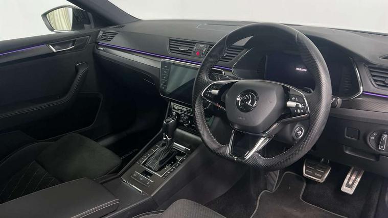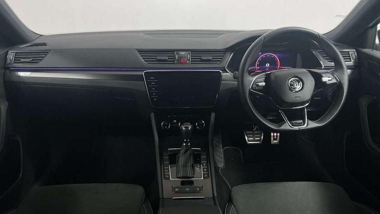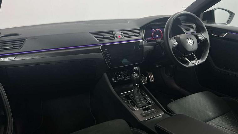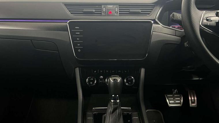 Bluetooth system, CareConnect and Emergency Call, Columbus HDD satellite 3D map navigation with 9.2" colour touch screen, web radio, integrated Wi-Fi, Driver fatigue sensor, Front assist with pedestrian protection, Progressive dynamic steering, Stop/start engine system and energy recovery, Virtual cockpit, Voice control system, Wireless smartlink apple carplay, SmartLink+ android auto, XDS+, 2 USB ports, Bolero radio with 8" touchscreen display, DAB Digital radio, 3rd brake light, Aero front windscreen wipers with intermittent function, Auto dimming rear view mirror, Black rear badge, Body colour door handles, Cornering front fog lights, Electrically adjustable heated and folding door mirrors with memory function, Front and rear electric windows, Full matrix LED headlights with AFS LED DRL integrated with headlight washer LED rear lights(High function), dynamic indicators and lighting animation, Gloss black exterior door mirrors with sports styling including front grill, side strip and window surrounds, Gloss black grille surround with gloss black rib elements, Gloss black roof rails, Gloss black strip between rear lights, Light assistant (coming/leaving home/tunnel light), Privacy glass, Rain sensor, Rear exhaust diffuser styling elements, Rear side wing doors, Rear windscreen wiper, Sportline badging, 12v power point in centre console, 3 seat bench in 2nd row, Black roof headlining, Black textile floor mats, Carbon optic interior elements, Electric auxiliary air heater, Front and rear footwell illumination, Front armrest with storage box, Height adjustable front and rear head restraints, Ice scraper, Illuminated and cooled glovebox, Interior lights with control switches, Isofix child seat fittings on outer rear seats, LED front and rear reading lights, Microsuede/leather upholstery with silver diamond stitching sports seats, One umbrella compartments in driver door with one umbrella in drivers door, Overhead glasses storage compartment, Rear centre armrest with cupholders, Single front passenger seat, Split folding rear seats, Storage compartment with cover in luggage compartment side panels, Ticket holder on A Pillar, LED package plus - Superb, 3 rear seatbelts, 7 airbags - Front, front side, curtain, driver's knee airbag with front passenger deactivation switch, Driver and passenger seatbelts with warning light, Electronic parking brake, ESC including ABS, EBV, MSR, ASR, EDS, HBA, DSR, RBS, CBC, multi-collision brake (MKB) and Auto hold, Hill start assist, Power operated child lock in rear doors, Tyre pressure monitor, Alarm with interior monitoring tilt sensor and back up horn, Electronic engine immobiliser, Keyless entry and start/stop, Remote central locking with SAFE system, Third remote key,