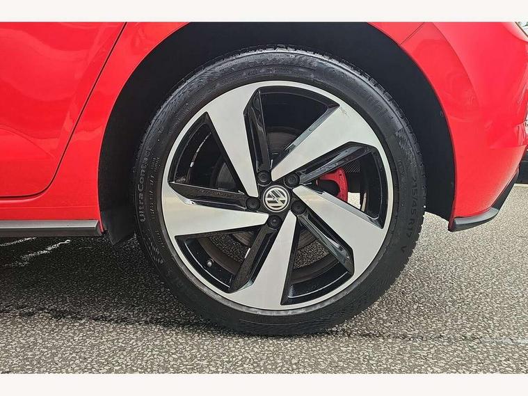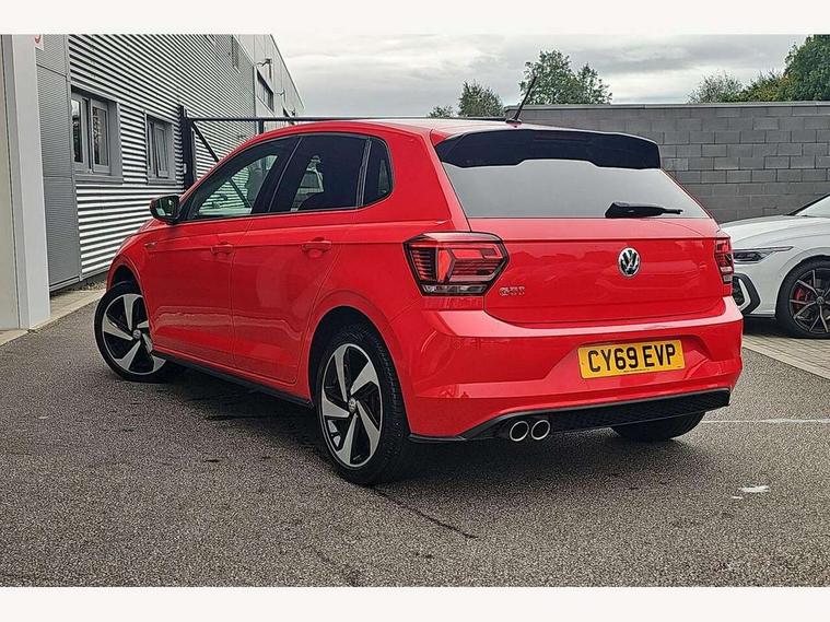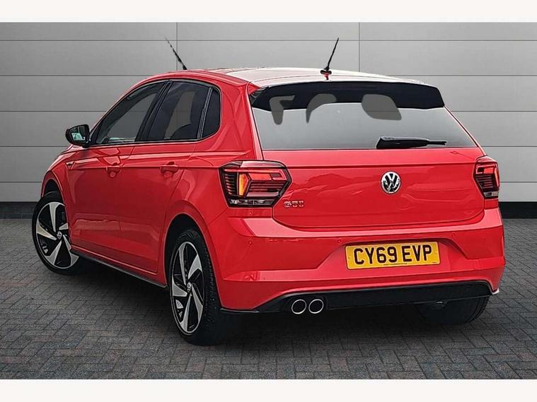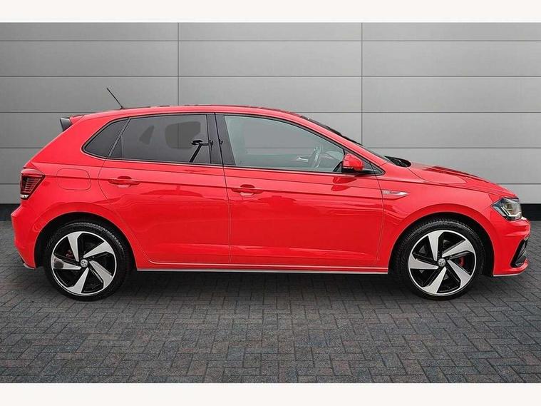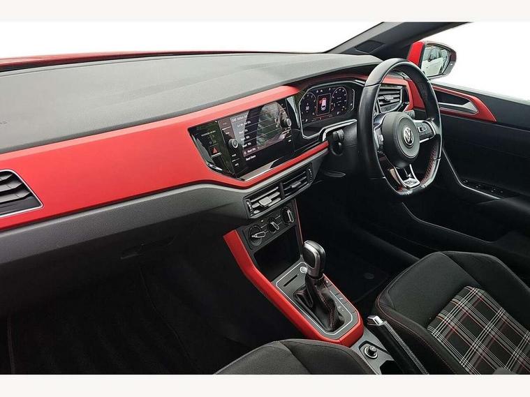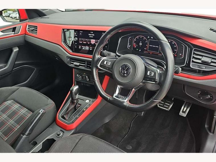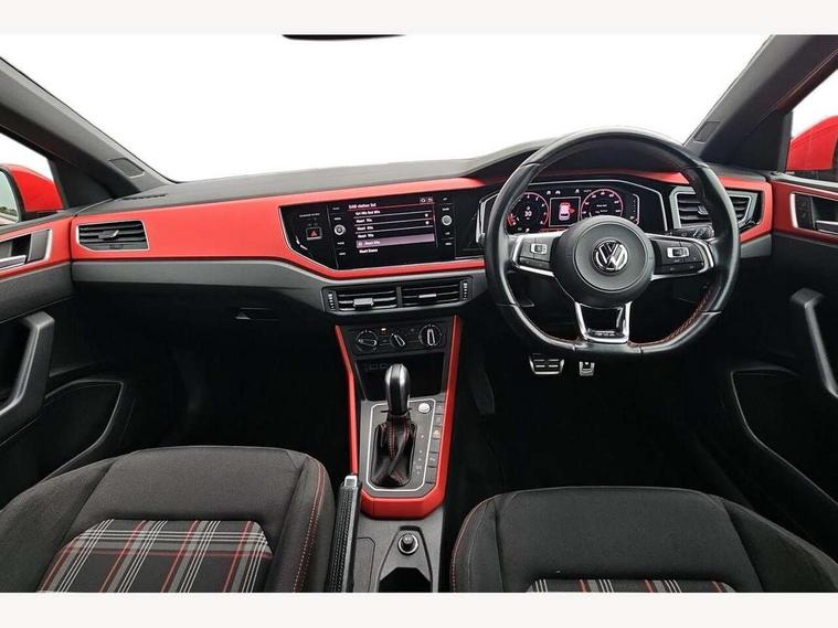 ACC - Adaptive cruise control with front assist, forward collision warning, distance monitoring, city emergency brake and speed limiter, App-Connect, Digital clock, Driver alert system, Driving Mode Selection with four preset modes - Eco, normal, sport or individual modes, Lights on warning, Multifunction computer plus, Power assisted speed sensitive steering, Speedo and rev counter, electronic odometer, trip, service interval display and fuel gauge, Start/stop system, Volkswagen connect, Warning buzzer and light for front seatbelts unfastened, Battery regeneration during braking, Galvanished body, Lowered sports suspension, XDS electronic differential lock, Body colour door handles, Body coloured side sills, Dusk sensor + automatic driving lights, Electric front windows, Electrically foldable, adjustable and heated door mirrors with reverse activated kerb view adjustment on passenger's side, Extended sill strips flared in black, Front fog lights including static cornering, Front windscreen washers and wipers with 4 speed intermittent delay, Gloss black rear spoiler (roof), Heat insulating tinted glass, Heated rear window with auto timer, High level 3rd brake light, Honeycomb radiator grille with red stripe, LED darkened rear light clusters, LED daytime running lights, LED dipped and main beam headlights with automatic range adjustment, LED rear number plate lights, Rear electric windows, Rear tinted glass from B-pillar backwards approx 65% tinted, Rear windscreen washer and wiper with interval delay, reverse activated, Stainless steel door sill protections with GTI logo, Twin chrome exhaust tailpipes, Unique GTI badging, 2 bag hooks in luggage compartment, 2 front cupholders and 12 V socket with cover, 3 rear head restraints, 60/40 split folding rear seat, AlumInium look pedals, Ambient lighting in front foorwell, front/rear door and dashboard light strips, Black roof lining and sun visors, Centre console storage with open storage compartment, Chrome-plated electric mirror adjustment switch surround, Chrome-plated electric window button surround, Driver and front passenger sunvisors with illuminated vanity mirrors, Dust/pollen filter, Folding rear seat backrest, Front and rear carpet mats with red stitching, Front centre armrest with storage compartment, Front head restraints, Front seat backrest storage pockets, Gear change selection via paddle shift on steering wheel, Gear lever gaiter in black trim surround, Glovebox, Handbrake grip button in chrome effect, Height/reach adjustable steering column, Instrument lighting, adjustable panel illumination, Interior light with delay, Isofix Preparation 2 Rear child seats, Jack and tool kit, Leather gear knob and handbrake grip, LED interior lighting - 2 reading lights front and rear with interior delay and dimming function, Luggage compartment cover, removable, Luggage compartment lighting, Luggage compartment with variable load floor, Storage compartment in front doors, Storage compartment in rear doors, Storage compartment under front seats, Three spoke leather trimmed multifunction steering wheel with GTI logo and red contrast stitching, GTI styling pack - Polo, Light and sight pack - Polo, 3 point height adj front seatbelts + pretensioners, 3x3 point rear seatbelts, ABS, Automatic post collision braking, Driver/front passenger airbag, Drivers and front passengers safety optimised head restraints, ESP with EDL + ASR, Front and rear passenger curtain airbags, Front passenger airbag deactivation, Front seat side impact airbags, Front/rear disc brakes, Hill hold control, Hydraulic Brake Assist (HBA), Red brake calipers, Single tone horn, Tyre pressure monitoring system, Alarm with interior protection and deactivation via infotainment system, Electronic engine immobiliser, Remote central locking with 2 remote folding keys, Remote keyless entry using key fob including Start/Stop button on centre console, Chrome instrument surround detailing, Chrome plated air vent surround, Gloss black instrument surrounds, Steel space saver spare wheel,