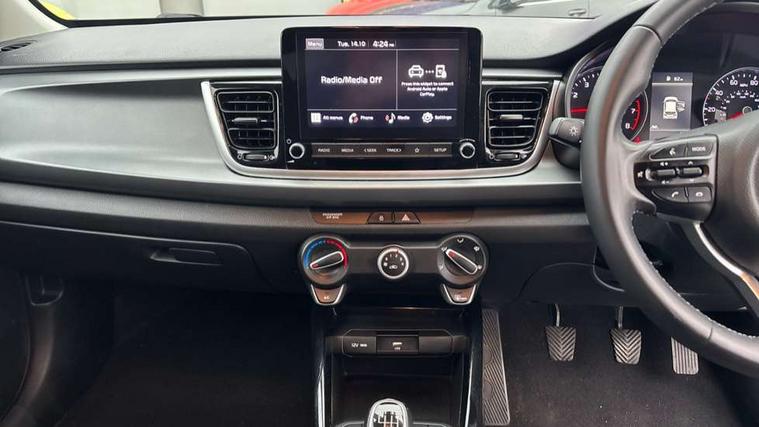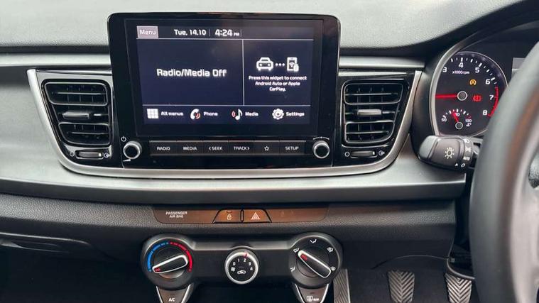 8" touch screen, Apple car play/Android Auto, Cruise control + speed limiter, Digital clock, Electric power steering, Emergency call service, Emergency stop signalling system, Gear selection indicator, Manual speed limit assist (MLSA), Outside temperature display, Rear parking sensor, Reversing camera system with dynamic guidelines (Integrated into centre fascia screen), Tachometer, Tailgate, Trip computer, Voice control system, Windscreen washer level indicator, Intelligent Stop and Go, 6 speakers, Bluetooth connectivity including audio streaming, DAB Digital radio, Front USB port for media connection, Rear USB port, Steering wheel mounted audio controls, 3rd brake light, Aeroblade-type front wipers, Automatic lighting control, Bi-function projection headlights, Black grille with chrome surround, Body colour bumpers, Body colour door handles, Body coloured door mirrors, Cornering light, Electric adjustable/heated/folding door mirrors, Front electric windows with driver's auto up/down function, Headlamp levelling, Heated rear window, LED daytime running lights, LED indicators in door mirrors, Projection front fog lights, Rain sensor, Rear electric windows, Rear fog lamp, Rear side wing doors, Rear wash/wipe, Speed variable front wipers, Tinted glass, Welcome home function, 3 passenger assist grips, 3 seat bench in 2nd row, 60/40 split/folding 2nd row of seats, Air conditioning, All round height adjustable headrests, Centre Console with Storage Box and Sliding Armrest, Dash illumination dimmer switch, Driver's seat height adjuster, Driver/passenger sunvisors and illuminated vanity mirrors, Front and rear door map pockets with bottle holder, Front passenger seatback pockets, Front USB charger port and 12V socket, ISOFIX top tethers and lower anchor points, Leather trimmed gearshift, Leather trimmed steering wheel, Load area light, Luggage area parcel shelf, Luggage hooks, Overhead console with sunglasses holder, Premium cloth upholstery, Silver interior door handles, Single front passenger seat, Tilt/telescopic adjustable steering wheel, Advanced driving assistance pack - Rio, 3-point front seatbelts, 3x3 point rear seatbelts, ABS with Electronic Brakeforce Distribution (EBD) and Brake Assist System (BAS), Automatic unlocking of doors in case of impact, Cornering brake control (CBC) and Straight line stability (SLS), Electronic stability control (ESC) and vehicle stability management (VSM), Front seatbelt pretensioners + load limiters, Height adjustable front seatbelt anchors, Hill start assist control (HAC), Passenger airbag deactivate switch, Rear child proof door locks, Seatbelt warning, Traction control, Twin curtain airbags, Twin front airbags, Twin front side airbags, Tyre pressure monitoring system, Anti theft alarm, Deadlocking system, Engine immobiliser, Locking wheel nuts, Remote central door and tailgate locking with fold-away key, Speed sensitive auto door locking, Visible vehicle identification number, Silver fascia trim, 15" Alloy wheels, Tyre mobility system,