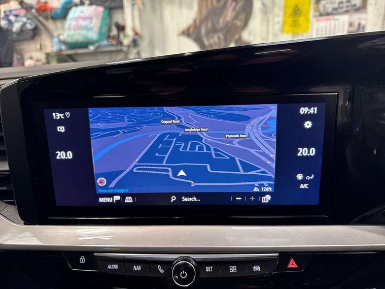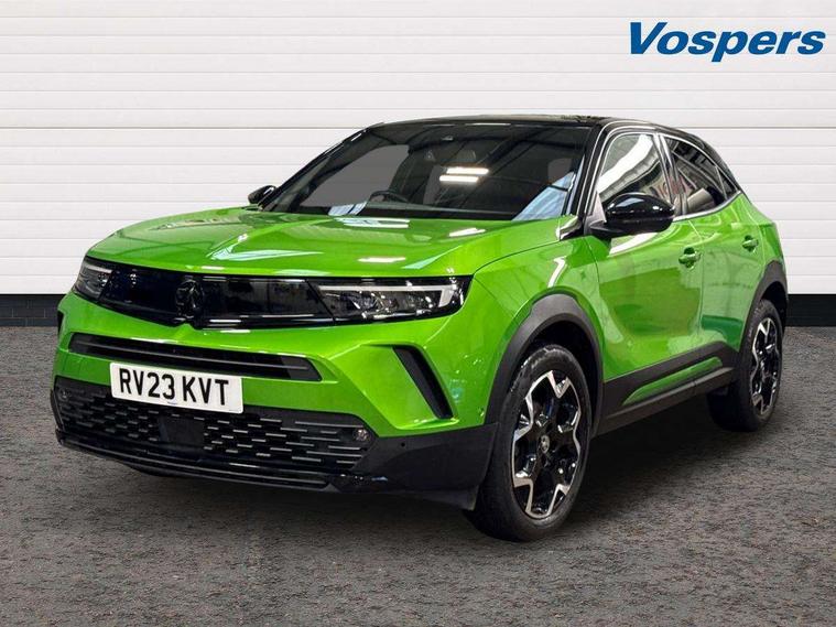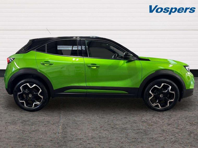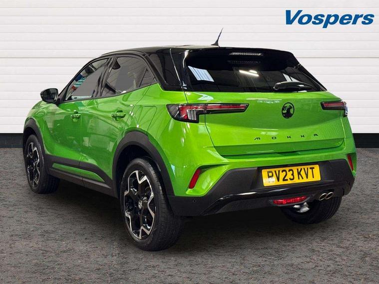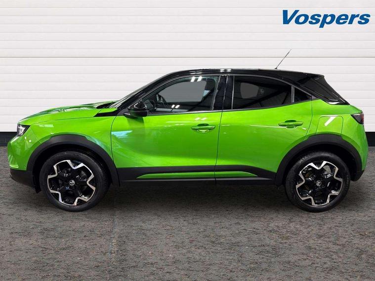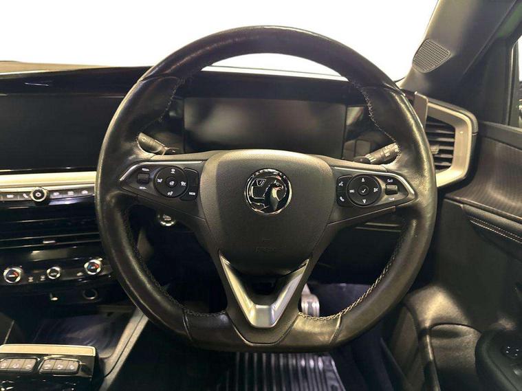 12" digital instrument cluster, Adaptive cruise control with speed limiter, Advanced Park Assist, Digital instrumentation with digital speedometer, rev counter, fuel and water temperature gauge, Driver drowsiness alert system, Driver information display with multi function trip computer, audio info, digital clock and outside air temperature with ice warning function, Engine start/stop button, EV information display, Extended traffic sign recognition, Front and rear parking distance sensors, Front camera and radar system, Lane keep assist system (LAS) with Lane departure warning system (LDWS), Lane positioning assist, Lights on audible warning, Panoramic rear view camera, Power assisted speed sensitive steering, RDS with traffic programme, Side blind spot alert and flank guard, Smartphone integration compatible with Apple CarPlay and Android Auto, Sports switch with engine sound enhancement, Start/stop system, Vauxhall connect with e-Call, Wireless charging for smartphone, 8 speed automatic transmission, 6 speakers, AM/FM stereo radio with 36 station presets, DAB Digital radio, Flexible Roof Mounted Radio Aerial, Front USB connection, Mobile phone portal - bluetooth connect, vehicle microphone, handsfree calls, SMS read out and reply, phone book access, Multimedia Navi Pro with 10" colour touchscreen, Steering wheel mounted controls, Two rear USB sockets, Adaptive brake lights, Automatic headlamp levelling, Automatic lighting control with tunnel detection, Automatically dimming anti dazzle rear view mirror, Black door mirror housings, Black front and rear bumper inserts, Black Griffin logo and vizor frame, Black upper window moulding, Body colour door handles, Body colour front and rear bumpers, Dark tinted rear side windows + tailgate window, Electric adjustable/heated/folding door mirrors + puddle lights, Electrically operated front and rear windows with safety auto reverse and one touch up/down facility, Hazard warning lights, Heated rear window+rear wash/wipe, High beam assist with anti glare, Integrated black tailgate spoiler, IntelliLux Matrix LED headlights with adaptive forward lighting, LED 3rd brake light, LED daytime running lights, LED front fog lamps, LED side repeat indicators, LED tail lights, Rear foglight, Rear side wing doors, Reversing light, Solar heat absorbing windscreen and windows, Two speed rain-sensitive windscreen wipers with variable intermittent wipe, Windscreen and side window demist vents, 12V Accessory socket, 3 seat bench in 2nd row, 3 spoke flat bottomed leather steering wheel with satin chrome bezel, 4 speed fan with illuminated controls, 6 way manual adjustable driver fore/aft, up/down with reclining seatback, 6 way manual adjustable front passenger fore/aft, up/down with reclining seatback, 60/40 split folding rear seat, Air recirculation system, Alcantara/leather upholstery, Alloy sports pedals, Black headliner, Cabin particulate filter - removes dust, airborne particles and pollen, Centre console with two cup holders at front and one in rear, Chrome effect interior door handles, Door pockets with two litre capacity, Driver and passenger sun visors with vanity mirror, Driver seat lumbar support and massage function, Electronic climate control (ECC), Four adjustable facia vents, Four load restraint lashing eyes, Front centre armrest with storage, Front head restraints, Front map reading lights, Front seat back storage pockets, Fully carpeted load area, Heated front seats, Heated steering wheel, Interior courtesy light, Interior tailgate handle, Luggage compartment cover, Luggage compartment lighting, Movable boot floor, Reach + rake adjustable steering column, Single front passenger seat, Steering wheel mounted paddle shift, Three height adjustable rear seat head restraints, Twin gas assisted tailgate struts, Black Pack with badge - Mokka, 2x Isofix child seat fitting on outer rear seats, 3x3 point rear seat belts, Anti-lock braking system (ABS), Child proof locks on rear doors, Cornering brake control, Deactivation switch for front passenger front and side impact airbags, Drag torque control, Driver and front passenger airbags, front seat side impact airbags, full size curtain airbags, Electronic brake force distribution, Electronic Stability Programme (ESP), Emergency brake assist, Enhanced automatic emergency braking with pedestrian detection, Forward collision alert at all speed, Hill start assist, Inertia reel lap and diagonal seatbelts for all seats, Seatbelt unfastened audible warning and warning light, Straight line stability control, Traction control, Tyre pressure monitoring system, Electronically protected audio equipment, Engine deadlock immobiliser, Freewheeling door locks, Key left in ignition audible warning, Keyless entry and start, Locking wheel nuts, Remote control central locking, Remote control ultrasonic security alarm system, Visible vehicle identification number, Atlantis black trim inserts of front doors, Black facia with silver trim insert, Instrument panel bar in polar silver, 18" bi colour alloy wheels,