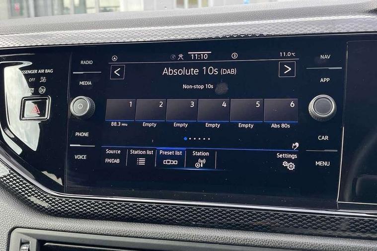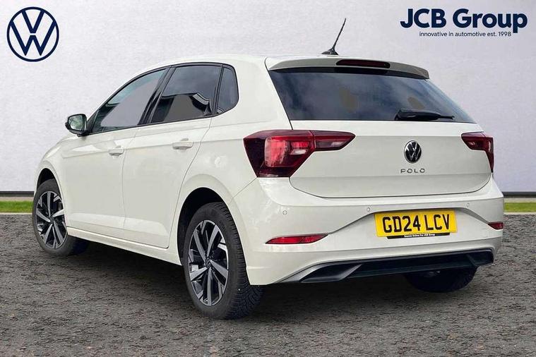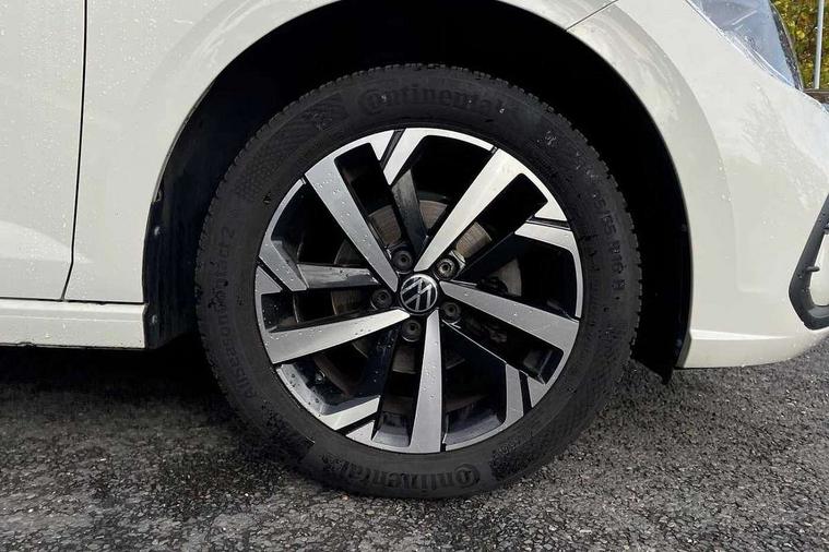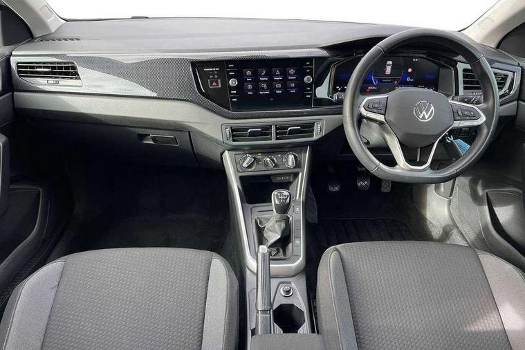 Adaptive cruise control without follow-to-stop and speed limiter, Advanced driver attention and drowsiness monitor, Bluetooth mobile phone interface, Dynamic road sign display, Emergency call service, Mobile phone preparation with inductive charging function, Multifunction front facing camera for distance control, Park distance control, Power assisted speed sensitive steering, Preparation for navigation system with media and internet package, Preparation for We connect and We connect plus, Rear view camera, Speedo and rev counter, electronic odometer, trip, service interval display and exterior temperature gauge, Standard rear axle, Travel Assist - Lane keeping system and traffic jam assist, Travel assist including emergency assist, Trip computer, Warning signal and warning light for front and rear seatbelts not fastened, Washer fluid level indicator, Wireless app connect, Front wheel drive, Rear shock absorpion, Start-stop system with battery regeneration (recuperation - energy recovery during braking), DAB Digital radio, Diversity antenna for FM reception, Front and rear 6 speakers, Automatic dimming interior rear view mirror, Automatic headlight control with LED separate daytime running lights with coming/leaving home function, Body colour bumpers with chrome inserts, Body colour door handles, Body colour door mirrors, Electric front windows, Engine badge deletion, Headlight range adjustment, Heat insulating and laminated safety glass windshield, Heat insulating darkened glass in side and rear windows, LED Headlights, LED rear combination lamps, Power folding adjustable/heated exterior mirrors and front passenger exterior mirror lowering function, Rain sensor, Rear electric windows, Rear fog light, Rear side wing doors, Rear tinted glass from B-pillar backwards approx 65% tinted, Rear windscreen washer and wiper with interval delay, Removable/lockable towbar, Third brake light, 12V power socket in centre console, 2 front and 2 rear reading lights with switch off delay and dimmer, 2 USB-C ports in the front, 2 USB-C charging sockets on the center console in the rear, 3 rear head restraints, 60/40 split folding rear seat and rear seat bench not split, Ceramique roof lining, Chrome plated radiator grille inserts, air vent surrounds and light switch surrounds, Door and side trim panel, Driver and front passenger seat height adjustment, Driver/passenger sunvisors with illuminated vanity mirrors, Front centre armrest, Front seat backrest storage pockets, Front standard seats, Handbrake lever handle in leather, Hartley/Thomas cloth upholstery, Headliner in recycled material, Isofix child seat preparation easy-fit (for two outer rear seats, and front passenger seat) compatible with I-size, Leather trimmed gear knob, Luggage compartment cover, Luggage compartment lighting, Removable luggage compartment floor, Single front passenger seat, Standard climatic zones, Standard pedal cluster, Three spoke leather wrapped multifunction steering wheel, Light and vision pack - Polo, 3 point height adj front seatbelts + pretensioners, 3 point seat belt for centre rear seat, 3 point seatbelts, outer rear with ECE lable, ABS, Driver and front passenger airbag with front passenger airbag deactivation, Drivers and front passengers safety optimised head restraints, ESC (Electronic stability control) + EDL (Electronic Differntial lock) and ASR (Traction control), Extended and predictive pedestrian/ cyclist protection, Front assist with autonomous emergency braking (for Adaptive Cruise Control ACC up to 130 mph), Front curtain and side airbags with center airbag, Front disc brakes, Hill hold control, Manual child lock in rear doors, Rear drum brakes, Single tone horn, Tyre pressure loss indicator, Alarm with interior protection, Anti-theft alarm system with interior monitoring, backup horn, and towing protection, Anti-theft wheel bolts, Electronic engine immobiliser, Lava stone black gloss/matt decorative inserts in dash and front door panels, 16" Torsby alloy wheels, Low rolling resistance tyres,
