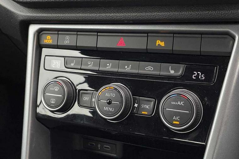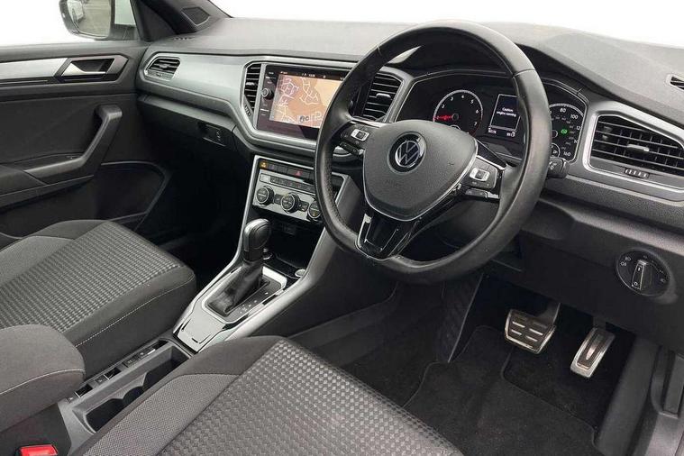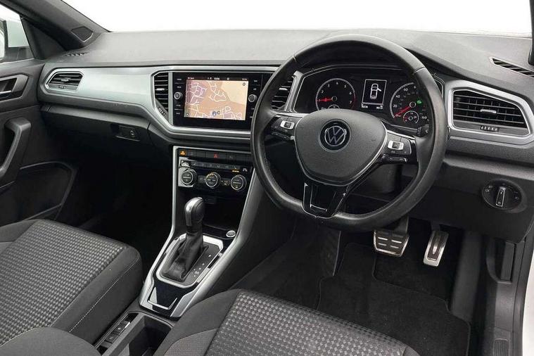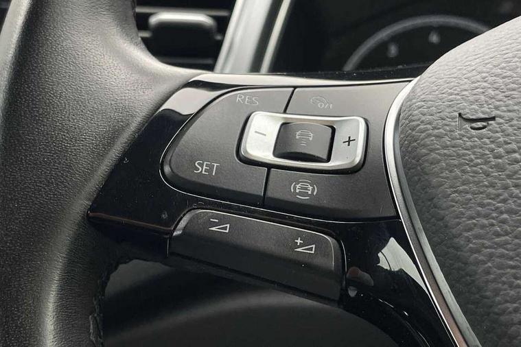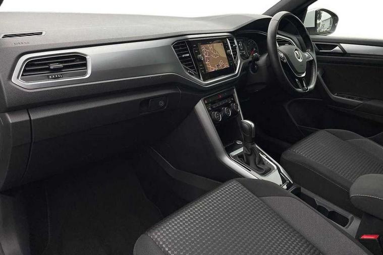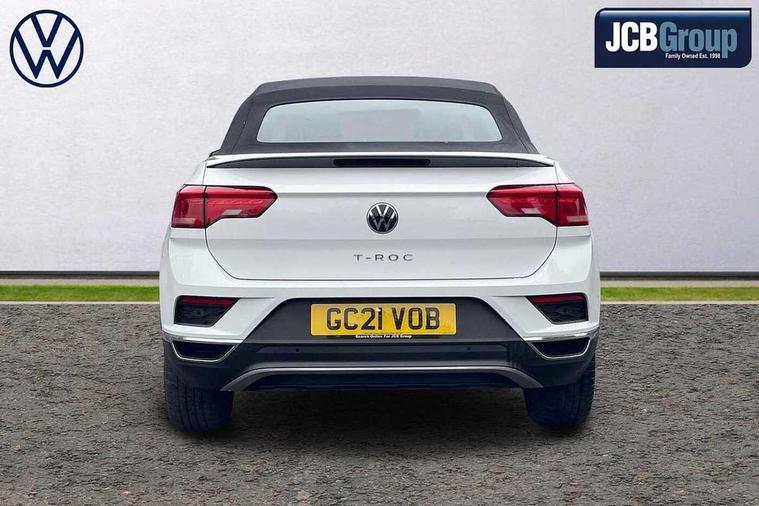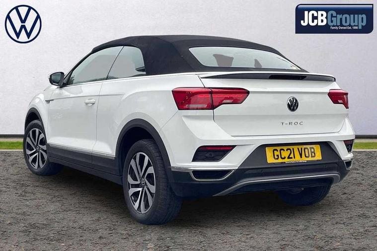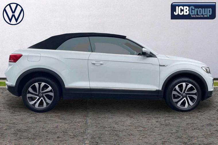 8" colour touch screen, Adaptive cruise control, Bluetooth telephone and audio connection for compatible devices, Brake pad wear indicator, Car information display, Car-Net Security and Service, Driver alert system with fatigue detection, Driver tips and journey analysis, Dynamic road sign display, Emergency call service, Lane assist with warning text instrument cluster, Mobile phone interface, Modified key software - reduce switch off time for key status change to Long no motion, Multifunction computer with visual gear change recommendation for fuel consumption, Navigation system discover media including streaming and internet, Online services, Power assisted speed sensitive steering, Speedo and rev counter, electronic odometer, trip, service interval display, digital clock and fuel gauge, Start/stop system with brake energy recovery, Tailgate/trunk lid release from outside, Warning sound and light for front seatbelts unfastened, Wired and wireless app connect, Bluetooth - Simultaneous pairing of 2 compatible mobile devices, DAB Digital radio, Diversity antenna for FM reception, Music playback - MP3, WMA and AAC files, SMS functionality - read, compose and send SMS messages using touch-screen display, Title and cover art display, USB-C Interface and USB charging socket, WeConnect plus, 3D badge"Active" (side emblem on fender), Auto dimming interior rear view mirror, Automatic coming/leaving home lighting function and daytime running lights, Automatic hazard lights activation under emergency braking, Body colour exterior mirror housings, Body colour rear roof spoiler, Body coloured bumpers and radiator grille with chrome trim and front fog lamps with chrome bezel, Body coloured exterior mirror housings and door handles, Chrome effect left and right trapezoid exhaust tailpipe fascia surround, Chrome trim on upper and lower radiator grille, Door sill protectors with special trim design with lettering 'Active', Dusk sensor, Electrically power adjustable, heated, folding, auto dimming, front passenger exterior door mirror lowering function, Front and rear electric windows, Front fog lights with static cornering function, Heat insulating glass windscreen, High level 3rd brake light, LED rear number plate lights, LED tail lamp rear comination lamps, Power operated canvas convertible top, Rain sensor, Rear exhaust tailpipe, Rear fog lamp, Volkswagen roundel, Windscreen wiper with intermittent wipe light, 12V socket in centre console storage area, 2 front reading lights, 3 spoke leather wrapped multifunction steering wheel, 50/50 rear seat bench split folding rear seat backrests, Activated charcoal canister for intensified evaporation system, Chrome plated surround to light, mirror and window switch, Climate control - 2 zone electronic air conditioning with automatic air recirculation and allergy filter, Entry aid easy entry (Front folding seats), Front + rear carpet mats, Front centre armrest, Front comfort seats with manual height adjustment, Front cupholders x 2, Front seat back storage pockets, Glove Compartment with light, Height/reach adjust steering wheel, Illuminated vanity mirrors in sun visors with air bag label on sun visor and b-pillar, Instrument lighting, white adjustable panel illumination, Interior light delay, Interior light in footwell, Isofix easy fit child seat preparation for 2 outer rear seats, Luggage compartment lighting, Rear head restraints, Stainless steel pedals, Standard pedal cluster, Storage compartments in driver and front passenger doors, Trapeze cloth upholstery, White ambient lighting, Winter pack - T-Roc, 2 x 3-point rear seatbelts, ABS, Autonomous emergency braking, Driver and front passenger safety-optimised head restraints, Drivers and front passengers airbags with passengers deactivation switch, Drivers seatbelt reminder, Electronic parking brake with auto hold, Electronic stability control (ESC) includes ASR, EDL, EDTC and trailer stabilisation function, Front assist with city emergency braking and pedestrian monitoring, Pedestrian monitoring, Predictive pedestrian protection, Rigid safety cell with front and rear crumple zones, Side airbag/thorax airbag system, for front passengers, Single tone horn, Three point height adjust front seatbelts + pretensioners, Tyre pressure loss indicator, Tyre pressure monitor, Ventilated front and rear disc brakes, Volkswagen roadside assistance, Alarm with interior protection and deactivation via infotainment system, Electronic engine immobiliser, Remote central locking with SAFELOCK, radio remote control with 2 remote control folding keys, Remote keyless entry using key fob including Start/Stop button on centre console, Decor panel center dashboard/ MIB cover in black glossy, centre console trim in matt silver, Matt silver decorative inserts in for active special trims, Titanium black door inserts, 17" Galway alloy wheels with super low rolling resistance tyres and anti theft wheel bolts,