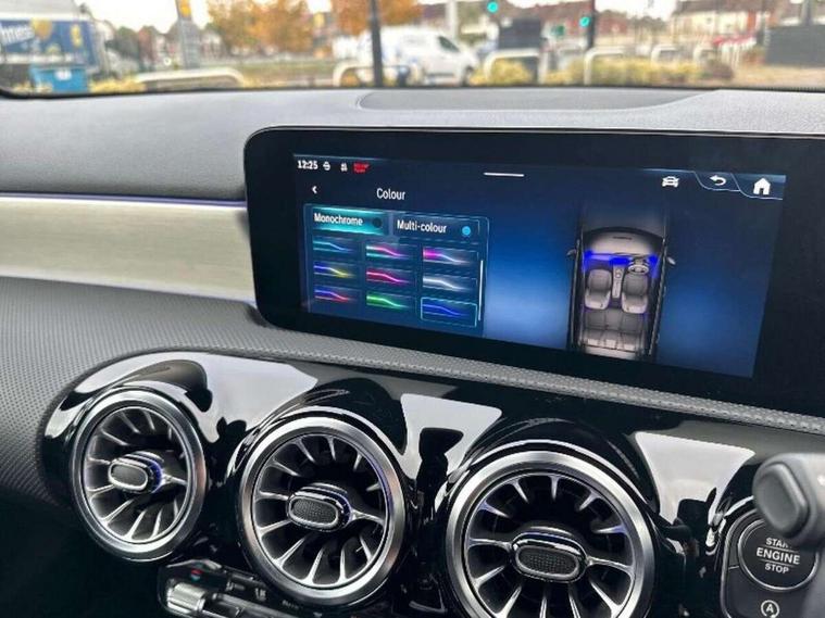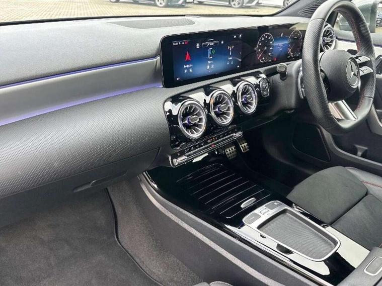 10.25 inch touchscreen central media display, 10.25" Digital instrument cluster display screen, Attention assist, Brake pad wear indicator warning light, Car wash mode, Direct steering, Direction indicators with lane change function, Dual bluetooth interfaces, DYNAMIC SELECT with a choice of driving modes (ECO, Comfort, Sport and Individual), ECO start/stop function, Engine start/stop button, Fluid level warning indicator for fuel, oil, coolant and washer fluid, Hard-disk navigation, Head up Display, Hey Mercedes Voice activation, Lamp failure indicator, MBUX augmented reality for navigation, MBUX Interior assistant, Mercedes me connect including emergency call system, accident recovery, breakdown and maintenance management, Mercedes me remote services, Outside temperature gauge, Owners manual in English, Pre-installation of private car share, Preinstallation for Mercedes Benz link, Remote boot closing, Service indicator (ASSYST), Smartphone integration with Apple CarPlay and Android auto, Speed limit assist, Speed sensitive power steering, Trip computer in multifunction display with current consumption indicator, Wireless charging, Lowered comfort suspension, DAB Digital radio, MBUX multimedia system, Mercedes Benz advanced sound system (225 W) with 10 speakers, 1 central speaker, speakers on doors, a tweeter on door, one sub woofer + boost amplifier, 4 Electric Front and Rear windows, Adaptive brake lights, AMG body styling - AMG front apron with front splitter and AMG rear apron and visible exhaust tailpipe trim elements, Body colour bumpers, Body colour door handles with chrome inserts, Body colour side skirt, Body coloured door mirrors, Chrome beltline strips, Diamond radiator grille with pins in fine star pattern, Electric adjustable and heated door mirrors with integrated LED side indicators, Exhaust system with 2 visible tailpipe trim elements and rear apron, Headlamp assist automatic headlamp activation, Heat insulating dark tinted rear and rear side windows, Heated glass rear windscreen + timer control, LED daytime running lights, LED tail lamp, Multibeam LED headlamps with adaptive highbeam assist and cornering function, Panoramic sliding sunroof, Privacy glass, Radio aerial, Rain sensing windscreen wipers with two sensitivity settings, Rear boot, Rear fog lights, Rear side wing doors, Third brake light featuring LED technology, Window line trim strip in chrome, 3 seat bench in 2nd row, 3 Spoke flat bottom leather multi function steering wheel with perforated leather in grip area, 40:20:40 split folding rear seats, Automatic child seat recognition sensor, Black air vents with surround in silver chrome, Black roof lining, Brushed stainless steel sports pedals with rubber studs, Electrically adjustable front memory seats including lumbar support and backrest inclination, Floor mats with AMG lettering, Front centre armrest with stowage, Front seat backs luggage nets, Galvanished gear shift paddles on steering wheel, Heated front seats, Height/reach adjustable steering column, Illuminated Mercedes Benz lettering front door sills with changeable cover, Interior lighting - 64 colour Ambient lighting, Interior mirror with reading lamps in black and frameless, Rear armrest with 2 cupholders, Seat occupancy sensor for front passenger seat, Single front passenger seat, Sports seats with adjustable head restraints, Stowage compartment in centre console with retractable cover, Sunvisors with illuminated vanity mirrors, Twin front cupholders, Two zone thermotronic luxury automatic climate control, Keyless go comfort pack - A Class, Light and sight pack - A Class, Mirror package - A Class, Parking pack with 360 degree camera - A Class, Seat comfort pack - A Class, USB pack plus - A Class, 3 rear 3 point seatbelts, ABS with Brake Assist, Active bonnet, Adaptive brake assist with hold function and hill start assist, Black seatbelts, Bonnet with power domes, Childproof locks manually operated for rear doors and electrically operated for rear power windows, Crash responsive emergency lighting, Driver and passenger head and side airbags, Drivers knee airbag, Dual stage driver/passenger airbags, Electronic parking brake, ESP curve dynamic assist, ESP with ASR, Front and rear seatbelt reminder, ISOFIX and top tether child seat fixing points in two outer rear seats, Tyre pressure monitoring system, Warning triangle and first aid kit, Window airbags, Alarm system/interior protection/immobiliser, Guard 360 degree vehicle protection, Remote central locking and crash sensor with emergency opening function, Light longitudinal grain aluminium trim, 19" AMG multi-spoke light alloy wheels, aerodynamically optimised, painted in titanium grey with high sheen finish, Summer tyres, Tirefit sealant kit,