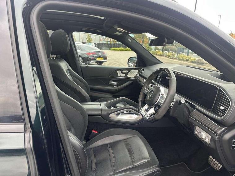 12.3 High resolution wide screen cockpit display with choice of three display styles Classic, Progressive or Sport and unique ambient lighting setting, AMG DYNAMIC SELECT with a choice of driving modes (Slippery, Comfort, Sport, Sport+ and Individual), Attention assist, Brake wear warning display, Cruise control with variable speed limiter, Direct steer speed sensitive steering, Easy-pack tailgate - Powered opening/closing automatically, ECO start/stop function, Geofencing, Hard-disk navigation, Head up Display, Hey Mercedes Voice activation, High resolution 12.3" multimedia colour display, Instrument cluster with AMG menu including RACETIMER and AMG start-up display, Mercedes me connect including emergency call system, accident recovery, breakdown and maintenance management, Outside temperature display, Pre-installation for private car sharing, Remote boot release, Service indicator (ASSYST), Smartphone integration, Status display for rear seat belts in instrument cluster, Traffic Sign Assist, Traffic sign recognition including wrong way warning function and display of posted speed limits in the instrument cluster, Trip computer in multifunction display showing current fuel consumption, 85 litre fuel tank, Active roll stabilisation, AMG ride control+ sports suspension based on Air body control air suspension with Adaptive damping system, AMG Speedshift TCT 9 speed transmission, Mild Hybrid starter alternator, Petrol Particulate Filter (PPF), Additional USB connection, Burmester surround sound system, DAB Digital radio, Dual bluetooth interface, 2 USB ports (type C), MBUX multimedia system, Adaptive brake lights, Adaptive high beam assist, Aerial for GPS, Aluminium look, illuminated running boards with rubber studs, AMG bodystyling front and rear aprons and side skirts in polished aluminium, AMG front apron with A wing strip and silver chrome front splitter plus sporty, striking air intakes with silver chrome 2 side louvres and black flics, AMG performance exhaust system, AMG specific radiator grille with vertical bars in high gloss chrome and AMG logo, BITURBO 4MATIC lettering on front wings, Body coloured bumpers, Dynamically shaped AMG rear apron with diffuser look insert and trim strip in silver chrome, Electric windows with one touch opening/closing and obstruction sensors, Exterior mirrors heated and electronically adjustable, Front green tinted glass, Illuminated front door sill panels with "AMG" lettering, LED rear lights, Multi beam LED headlights, Panoramic sunroof, Privacy glass - heat insulating dark tinted glass, Radio aerial integrated into rear window, Rain sensing windscreen wipers, Rear wiper, Roof rail system, Visible twin pipe exhaust system integrated into bumper, Waistline in polished aluminium, 3 spoke AMG multifunction steering wheel with touch control buttons, trimmed in black nappa leather with DINAMICA grip area, flattened bottom section, 4 way adjustable front head restraints and 2 way rear head restraints, 40:20:40 split folding rear seats, AMG brushed stainless steel sports pedals with rubber studs, AMG Exclusive Nappa leather upholstery, AMG floor mats in black velour with AMG lettering, AMG front sports seats, Automatic child seat recognition sensor, Central stowage compartment with 12 V socket in centre console, Chrome door pins, Climatised front seats, Comfort front headrests, Courtesy lights in rear grab handles with reading light functionality, Dinamica microfibre roof liner in black, Electric height/reach adjustable steering column, Front centre armrest with stowage compartment and illuminated grab handles, Gearshift paddles on steering wheel, Glove compartment - lockable, air conditioned and illuminated, Heated front seats, Interior lighting - 64 colour Ambient lighting, Multicontour front seats, Nappa leather door beltlines, Nappa leather upper dash trim, Seat occupancy sensor for front passenger seat, Second row three seats, Sports steering wheel, Sunvisors with illuminated vanity mirrors, Thermotronic automatic 4 zone climate control, Touchpad, AMG Drivers package - GLE 63, AMG night pack - GLE 53/63, Anti theft Protection package - GLE, Driving assistance plus pack - GLE 63, Interior chrome package - GLE, Keyless go comfort package - GLE, Memory package - GLE, Mirror package - GLE, Parking package with 360 camera - GLE, Active bonnet, Adaptive brake system with HOLD function and brake drying in the wet, Airbags - driver and front passenger, with extended adaptivity for front passenger airbag, Airbags - sidebag for driver and front passenger with combined thorax/pelvis bag, Airbags - windowbags, AMG high performance composite braking system, Anti-lock braking system (ABS), Childproof locks manually operated for rear doors and electrically operated for rear power windows, Drivers knee airbag, Electronic parking brake, Electronic Stability Programme (ESP), ISOFIX child seat attachment points two outer rear seats, Pre-Safe anticipatory safety system, Red brake callipers with AMG lettering, Red seat belts, Three point rear seat belts, Tyre pressure monitoring system and loss warning system, Warning triangle and first aid kit, Alarm system/interior protection/immobiliser, Central locking with interior switch, automatic locking and crash sensor with emergency opening function, Chrome surround electric key, Keyless entry, Dashboard and door, AMG carbon fibre, Trim - Centre console, AMG carbon fibre trim, 22" AMG cross spoke light forged alloy wheels painted in black, Summer tyres with noise reducing absorber, TIREFIT with tyre inflation compressor,