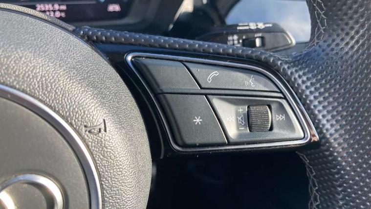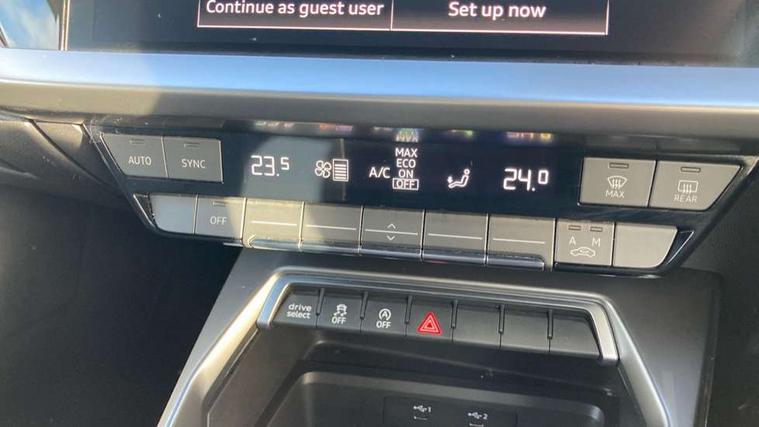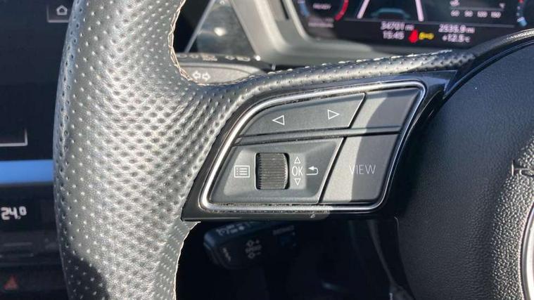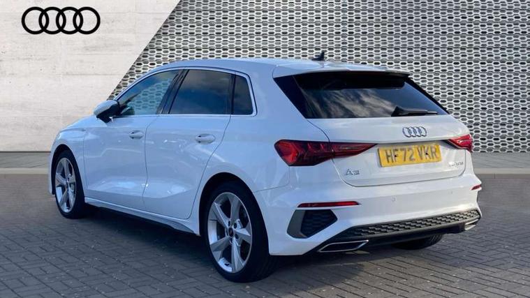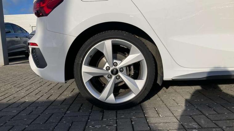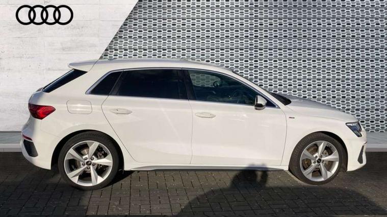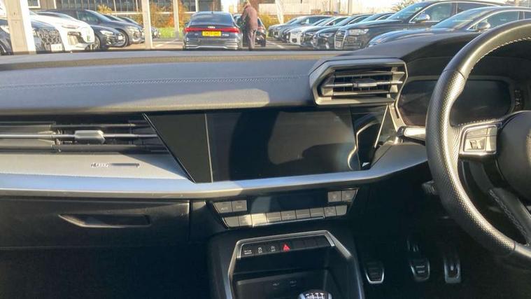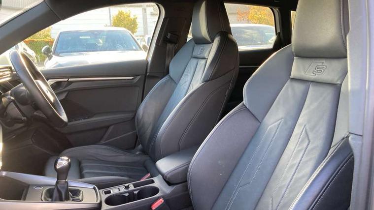 Audi drive select (Auto, Comfort, Dynamic, Efficiency and Individual), Audi smartphone interface, Audi Virtual Cockpit - 10.25" digital and colour instrument cluster, Automatic start/stop system with recuperation, Bluetooth interface, Collision avoidance assistant, Cruise control, e-Call (emergency call), Electromechanical power speed sensitive steering, Lane departure warning system, MMI Navigation Plus with high resolution 10.1" colour touch screen display, Rear parking sensors, Service indicator, Trip computer, Voice control system with natural language interaction, 2xUSB-C connection with data and charging functions, 6 passive loudspeakers, DAB Digital radio, 3rd brake light, Acoustic glass windscreen, Aluminium window trim, Auto dimming frameless rear view mirror, Electrically adjustable/heated/folding/auto dimming door mirrors with integrated LED indications + kerb view function for passenger side, Front electric windows, Illuminated aluminium inserts front door sills with S logo, LED daytime running lights, LED headlights with LED rear lights and dynamic rear indicators, Light and rain sensors, Privacy glass - dark tinted rear window, rear door and side windows, Rear electric windows, Rear side air outlets in grained matt black, Rear side wing doors, Rear wiper, S line bumpers, S roof spoiler, 12V socket and storage compartment in front centre console, 3 seat bench in 2nd row, 40/20/40 split folding rear seat bench with cupholder, Black cloth headlining, Dual zone electronic climate control, Front and rear centre armrest in leather, Front and rear headrests, Front/rear floor mats, Height and reach adjustable steering wheel, Illuminated vanity mirror, Interior lighting - glove compartment light and right hand side, Luggage compartment floor covering, Manual boot compartment lid, Manually adjustable front seats, Seat side bolsters, Single front passenger seat, Stainless steel pedals and front footrest in black, Twin leather upholstery with front sports seats S embossed logo, Aluminium interior elements pack - A3 Sportback, S line styling pack - A3 Sportback, 3x3 point rear seat belts, Audi pre sense front, Driver and front passenger airbag with passenger airbag deactivation, Electronic Stabilisation Control (ESC) including ABS, ASR and EDL, First aid kit with warning triangle and 2 safety vests, Front side airbags with head airbags and interaction airbag, Pre-sense front with pedestrian and cyclist detection, Seatbelt monitoring, Tyre pressure loss indicator, Anti theft alarm, Anti-theft wheel bolts, Immobiliser, Manual child locks, Remote control central locking, Accent surfaces in the dashboard and centre console in platinum grey silk effect paint finish, Dark spectrum aluminium inlays,