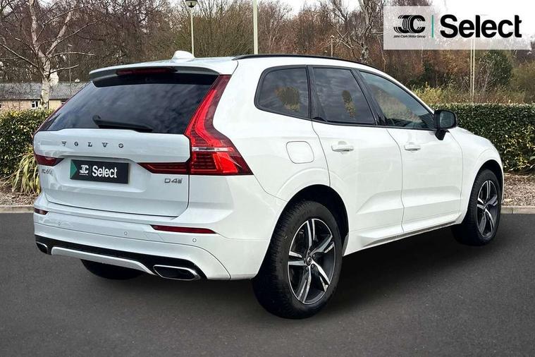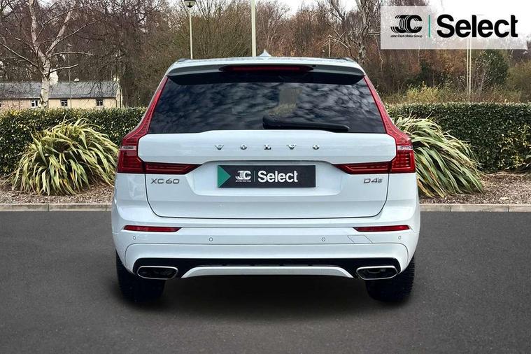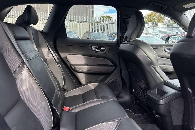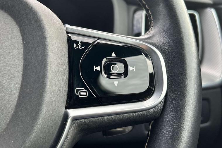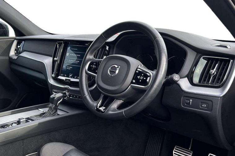 12.3" Active TFT crystal driver's instrument display, 9" Touch screen, Adjustable steering wheel force, Bluetooth hands free telephone kit, Drive mode selector, Front collision warning with full auto brake, Intelligent driver information system (IDIS), Lane keep assist with driver alert control, Oncoming Lane Mitigation, Power tailgate, Remote fuel flap release, Road Edge Detection, Service interval indicator, Speed limiter, Speed sensitive steering, Trip computer, Voice control system, Volvo on call, Diesel particulate filter, DAB Digital radio, Adaptive brake lights with high level LED brake lights, Auto dimming interior + exterior mirrors, Body colour bumpers, Dark tinted glass for rear windows + rear screen + side luggage area window, Dual integrated exhaust pipes with high gloss black surround, Electric folding door mirrors, Electric front+rear windows, Electrically adjustable and heated door mirrors, Headlamp levelling, High gloss black door mirrors, High gloss black roof rails, High gloss black window frame surround, Home safe and approach lighting, Illuminated side steps, LED front fog lights, LED Headlights + Active high beam incorporating daytime running lights, R Design tread plates, Rain sensor with automatic windscreen wiper activation, Rear wiper, Roof antenna, Roof spoiler, Tinted windscreen, Visible VIN plate, 12V power point in luggage area, 3 spoke leather steering wheel with chrome trim, 60/40 split folding rear seat, A-pillar parking ticket holder, B Pillar ventilation, Black headlining, Bright metal luggage threshold, Centre armrest storage illumination, Centre console cupholders and storage, Contour sports seats with leather/textile upholstey, Extended front seat cushions, Front and rear door pocket and front cupholder illumination, Front footwell illumination, Front reading lights, Glovebox illumination, Head restraints for all seats, Heated front seats, Height/reach adjustable steering column, High gloss black steering wheel remote infotainment controls, Illuminated driver/passenger vanity mirrors, Illuminated luggage compartment, Load cover, Load protection net, Lockable glovebox, Multicolour theatre lights, Nappa Leather Key Integrated Remote, Pollen filter, Rear armrest / integral cup holders / storage tray, Rear footwell illumination, Rear seat concealed storage, Sport leather gear knob, Sport pedals, Sports floor mats, Sports leather steering wheel with gearshift paddles, Tailgate illumination and ambient door lighting, Theatre dimming interior lights, Underfloor stowage compartment, Vanity mirror with ticket holder, WHIPS - Whiplash Protection System, 5 three point seatbelts, ABS/EBD, City safety with steering support with Pedestrian + cyclist + large animal detection + front collision warning with full auto brake, Curtain airbags, Drivers knee airbag, DSTC-Dynamic Stability and Traction Control, Dual stage driver/passenger airbags, EBA, Electronic parking brake with auto hold, Fasten seatbelt reminder, First aid kit, Hill descent control, Hill start assist, Hydraulic Brake Assist (HBA), Passenger airbag deactivate switch, Road sign information display, Run off Road Protection, Seatbelt pre-tensioners, SIPS airbags, Tyre pressure monitor, Warning triangle, Anti-theft alarm including immobiliser/volume sensor + level sensor, Key integrated remote control central locking + fuel flap with deadlocking system and auto open/close power windows, Locking wheel nuts, Private locking for tailgate, Metal mesh inlays,