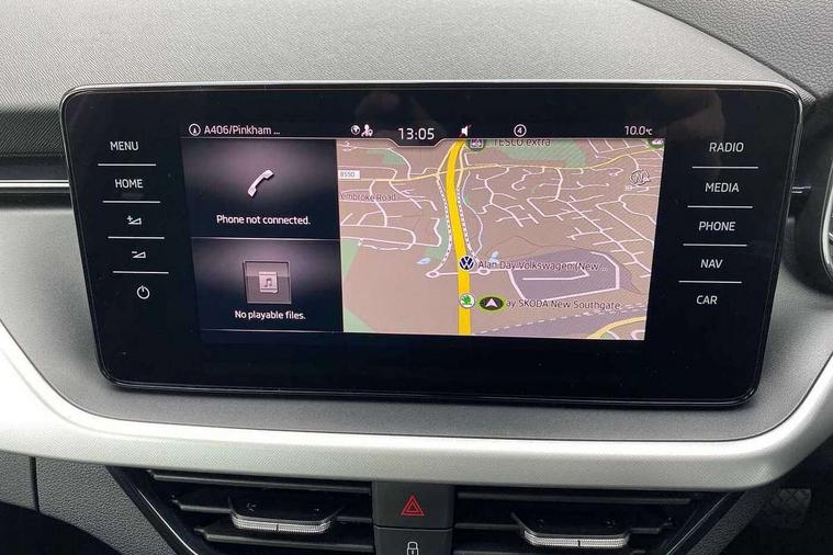 Amundsen satellite navigation with 9.2" glass colour touchscreen display, web radio, voice control and traffic sign recognition, Bluetooth system, E-call, Front assist system, Gesture control, PAS, Service indicator, Speed limiter, Wireless SmartLink for apple car play, android auto and mirrorlink, 8 Speakers, Auxiliary input socket, DAB Digital radio, Body colour bumpers, Body colour door mirrors and handles, Chrome grille surround, Dimming rear view mirror with black surround, Electrically adjustable and heated door mirrors, Front and rear electric windows, Headlight range control, Heated rear window, LED rear lights - low functionality, LED third brake light, Light sensors, Privacy glass, Rain sensor, Rear fog lights, Rear side wing doors, Rear wiper, 12V Accessory socket in centre console, 3 seat bench in 2nd row, Chrome inner door handles, Cloth upholstery, Front head restraints, Glove compartment with illumination, Height adjustable driver and front passenger seats - manual, Ice scraper, Isofix child seat fittings on outer rear seats, ISOFIX on front passenger seat, Manual lumbar support for front seats, Rake/reach adjustable steering wheel, Reading lights, Single front passenger seat, Sun visors with illumination on front passenger, Textile floor mats, Third rear headrest, Top tether for front passenger seat, Umbrella in driver's door, 3x3 point rear seatbelts, Airbags - driver and front passenger, ESP, Front passenger airbag deactivation switch, Front side airbags with curtain airbags, Hill hold control, Manual parking brake, Manual rear child locks, One tone horn, Rear disc brakes, Seatbelt reminder for driver an co-driver, Traction control, Tyre pressure monitor, Anti-theft alarm system with interior monitoring, backup horn, towing protection and remote central locking with SAFE system, Anti-theft wheel bolts, Electronic engine immobilizer, Silver haptic decorative insert on the dashboard with hot stamping in glossy black,